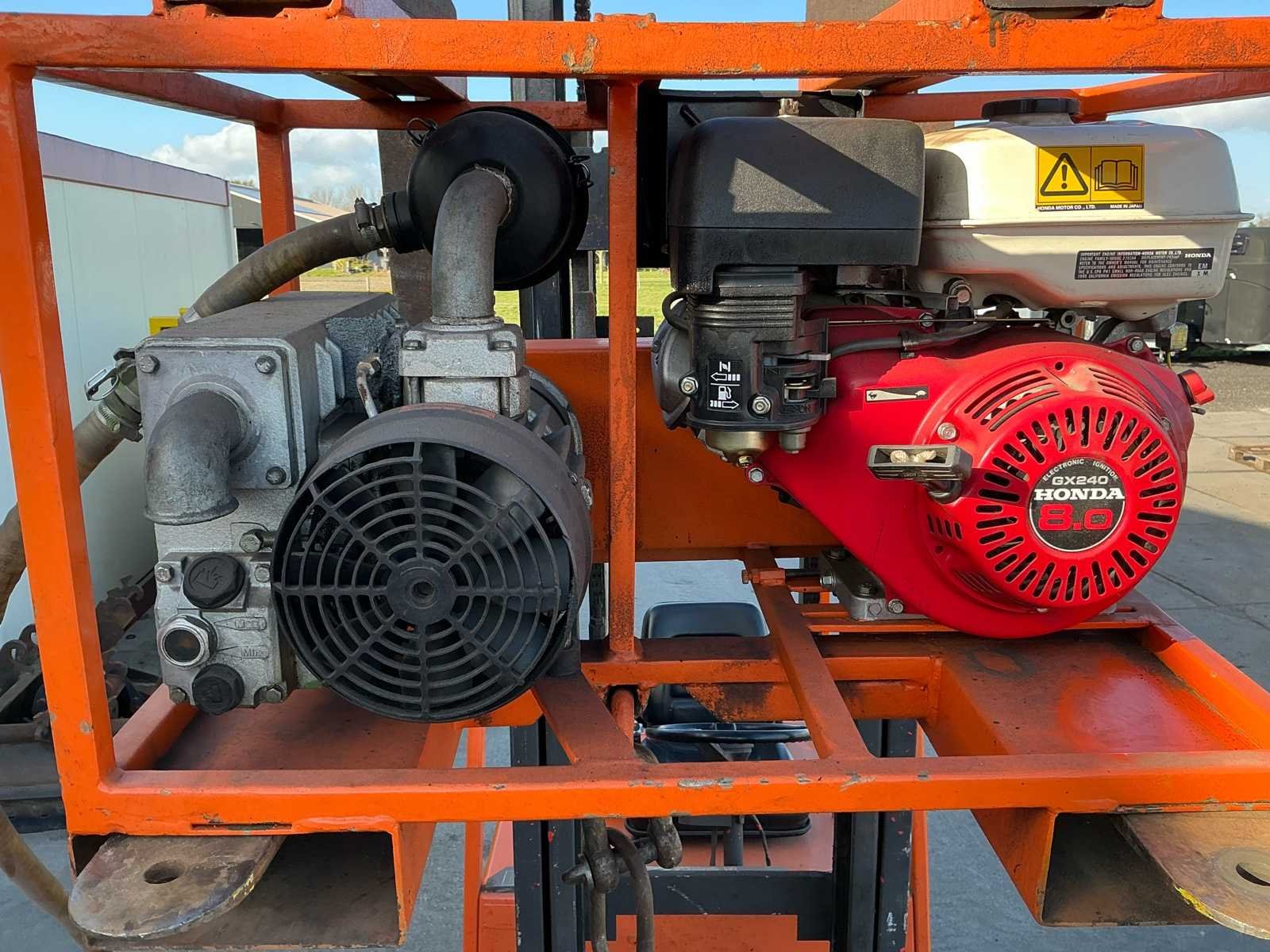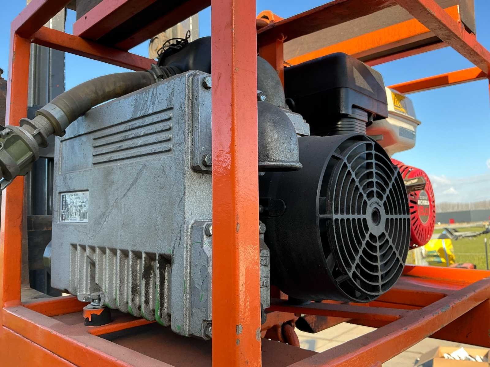 W.O.S. 40B vacuumunit. Capaciteit van 40m3 vacuum Voorzien van: Honda GX240 benzinemotor Stelconplaten nap a 75 x 75 cm Hijsoog Lepelbord uitsparing Nee Merk: W.O.S. Type: 40B Serienummer: 1358
