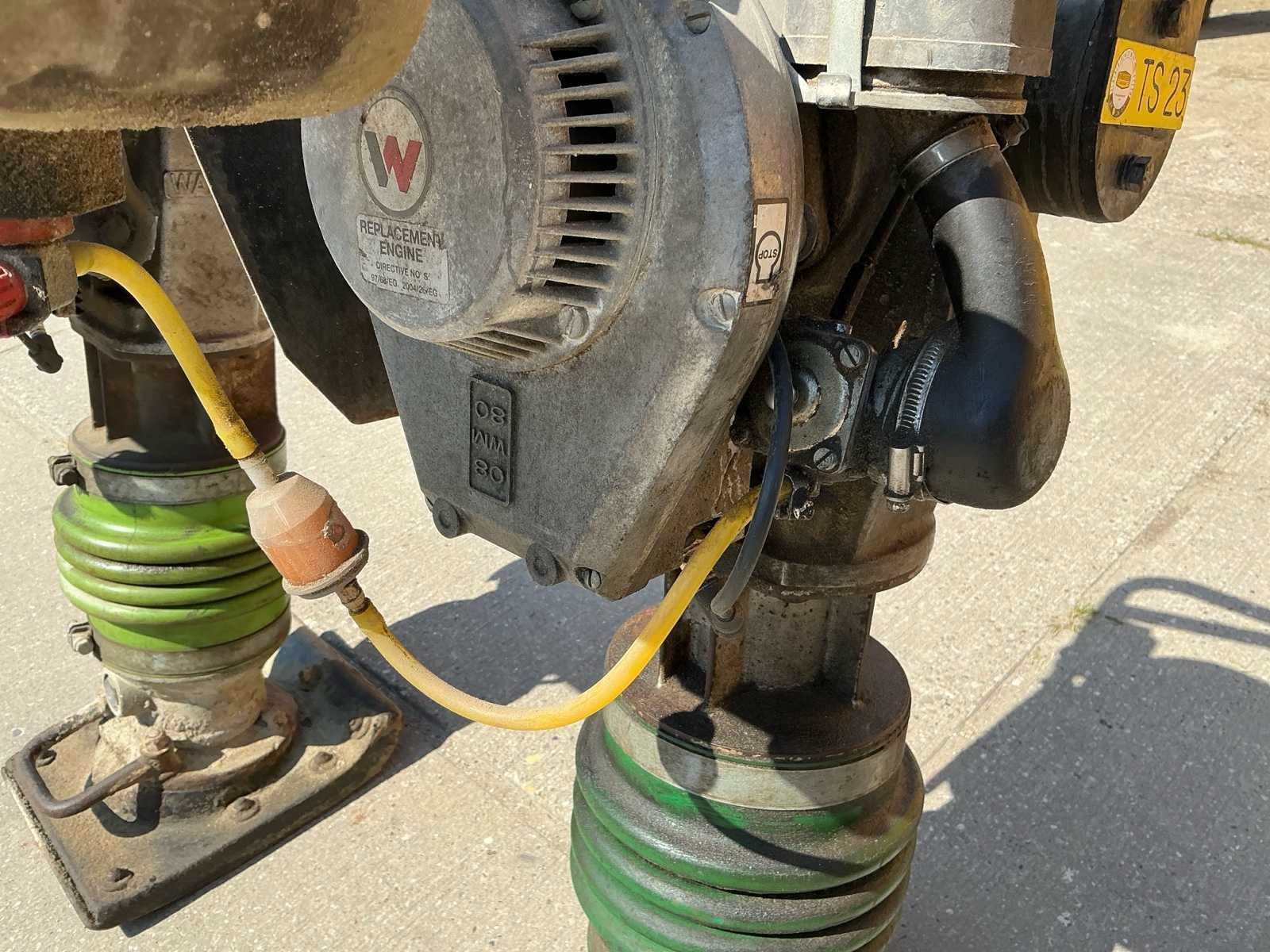 Nee Merk: Wacker Type: BS60Y Afmeting voet l: 260mm Afmeting voet b: 260mm Totale afmeting L: 700mm Totale afmeting Breedte: 300mm Totale afmeting Hoogte: 1000mm