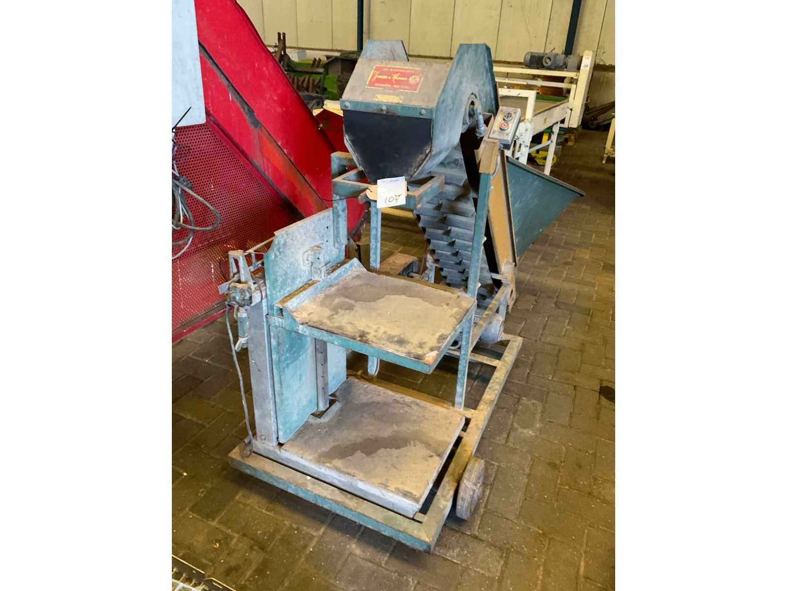 Werkbreedte: 25cm, Weegvermogen: 150kg. Nee Merk: Jansen & Heuning Aansluiting: 400V Totale afmeting L: 2100mm Totale afmeting Breedte: 900mm Totale afmeting Hoogte: 1430mm