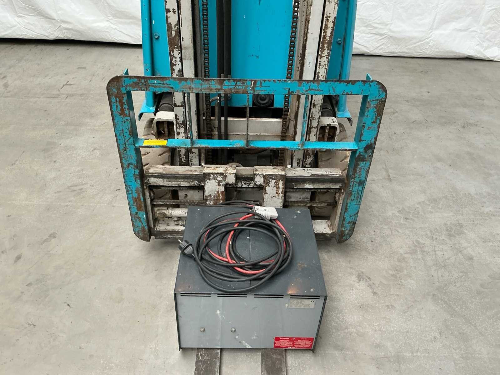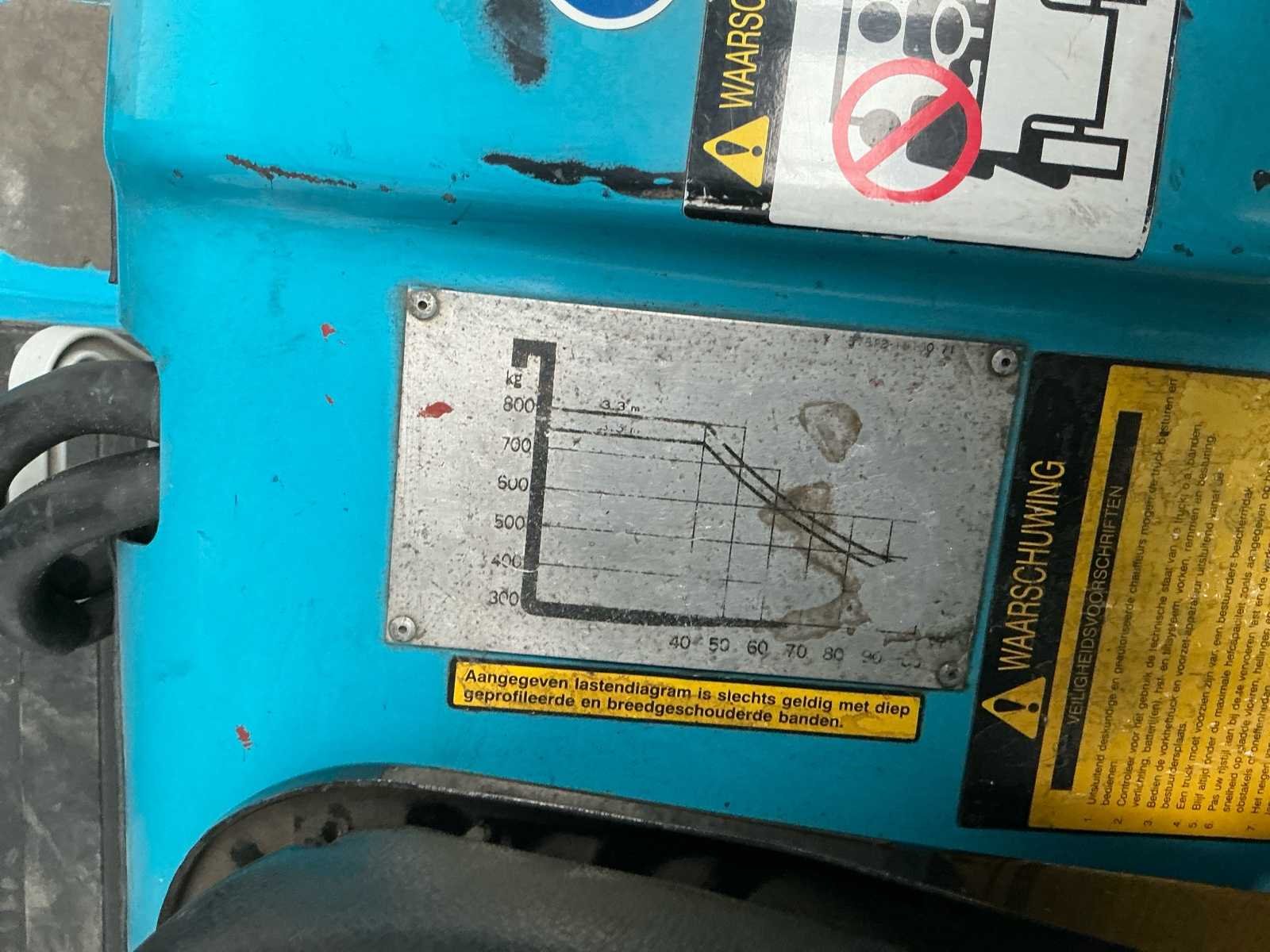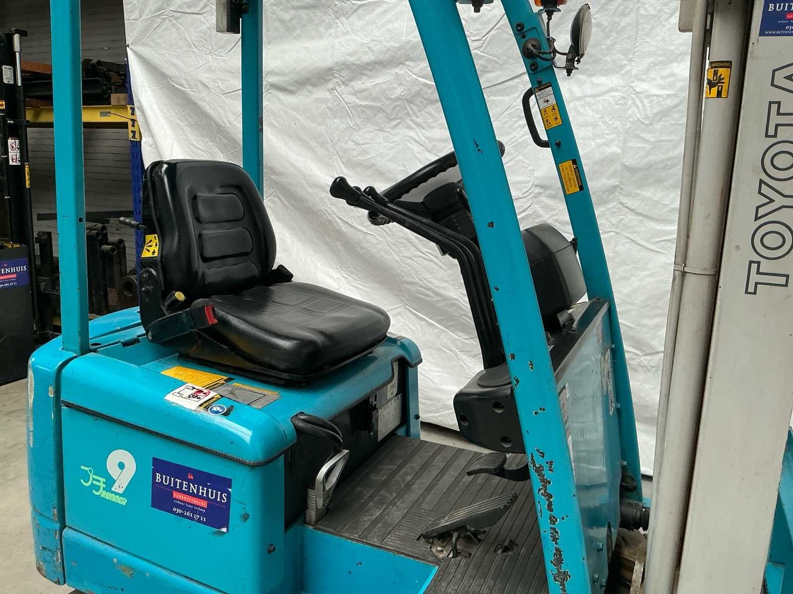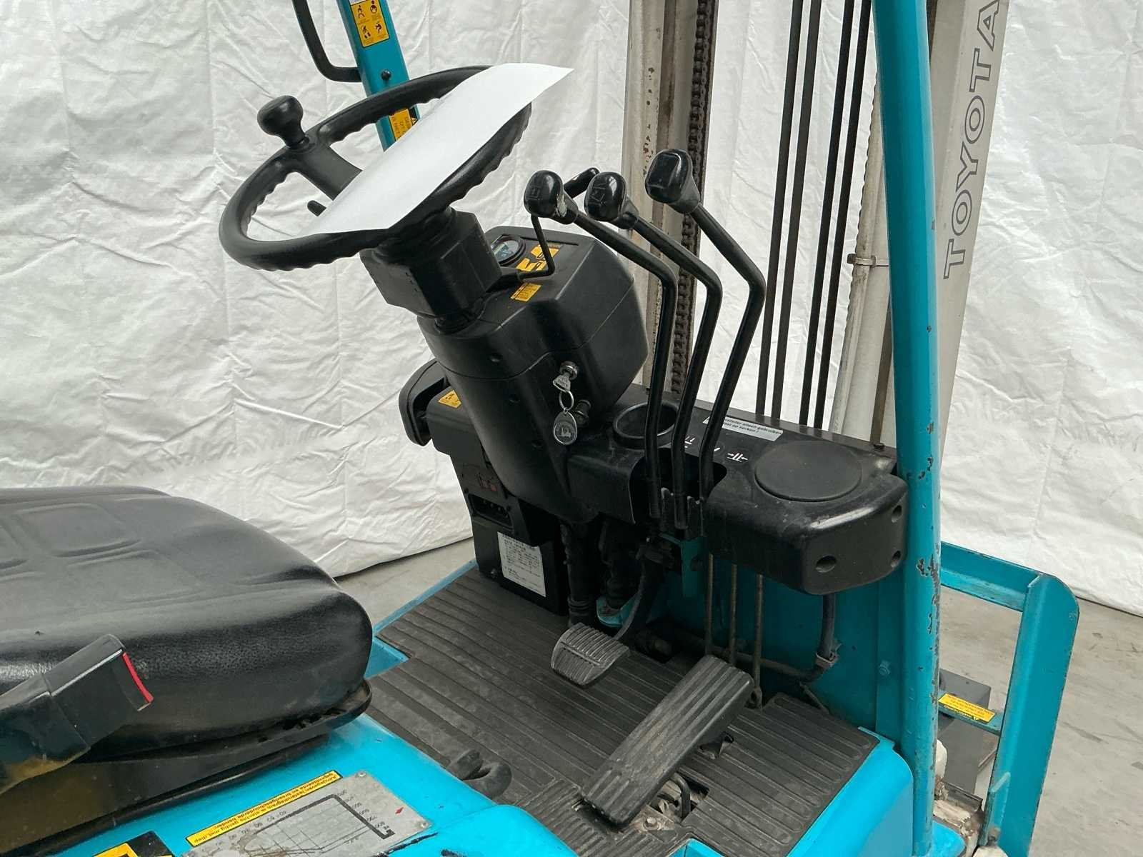 INC batterijlader, vork versteller. No Merk: Toyota Type: 3FBL9 Bouwjaar: 1999 Serienummer: 10336 Brandstof: Elecktrisch Mast: Simplex Soort band: Rubberen banden Aantal wielen: 4 Accu lader: true Side-shift: true Eigen gewicht: 1830kg Hefvermogen: 800kg Max. hefhoogte: 3000mm Vol rubber banden: true
