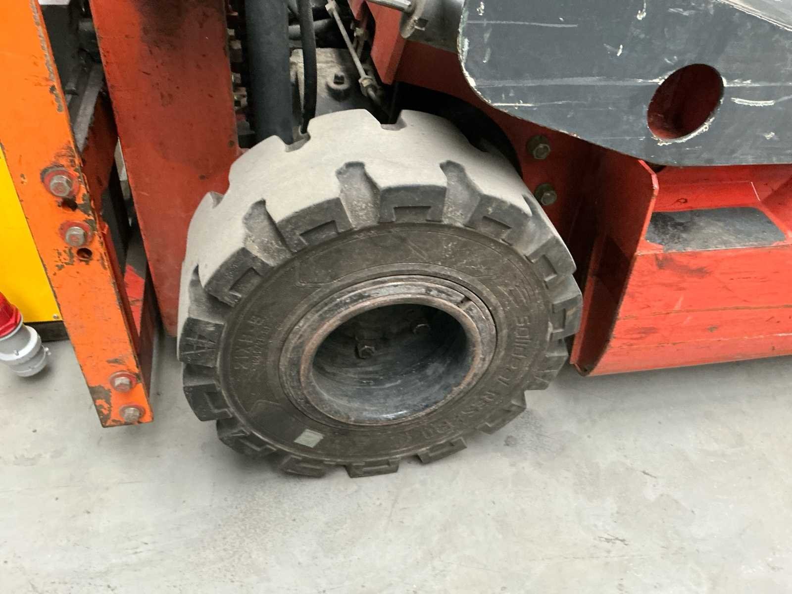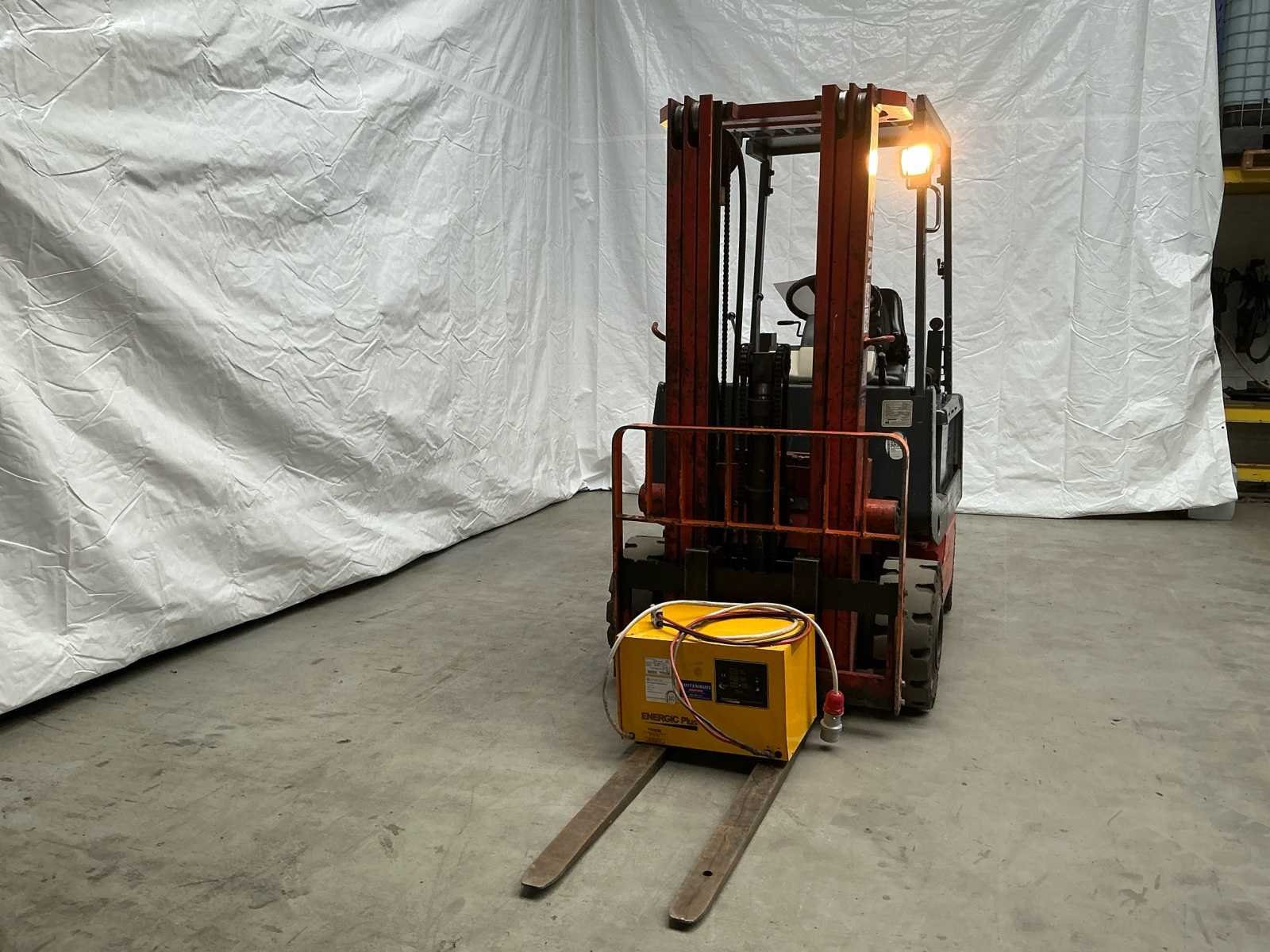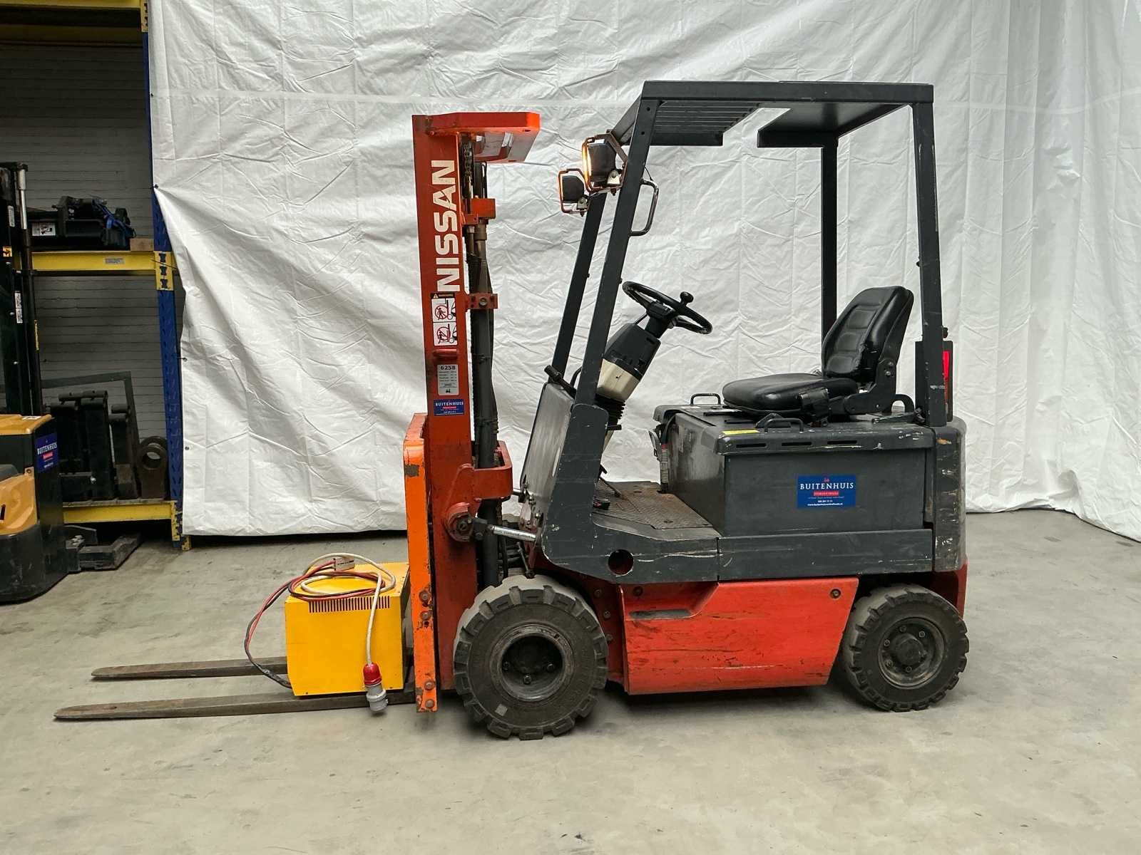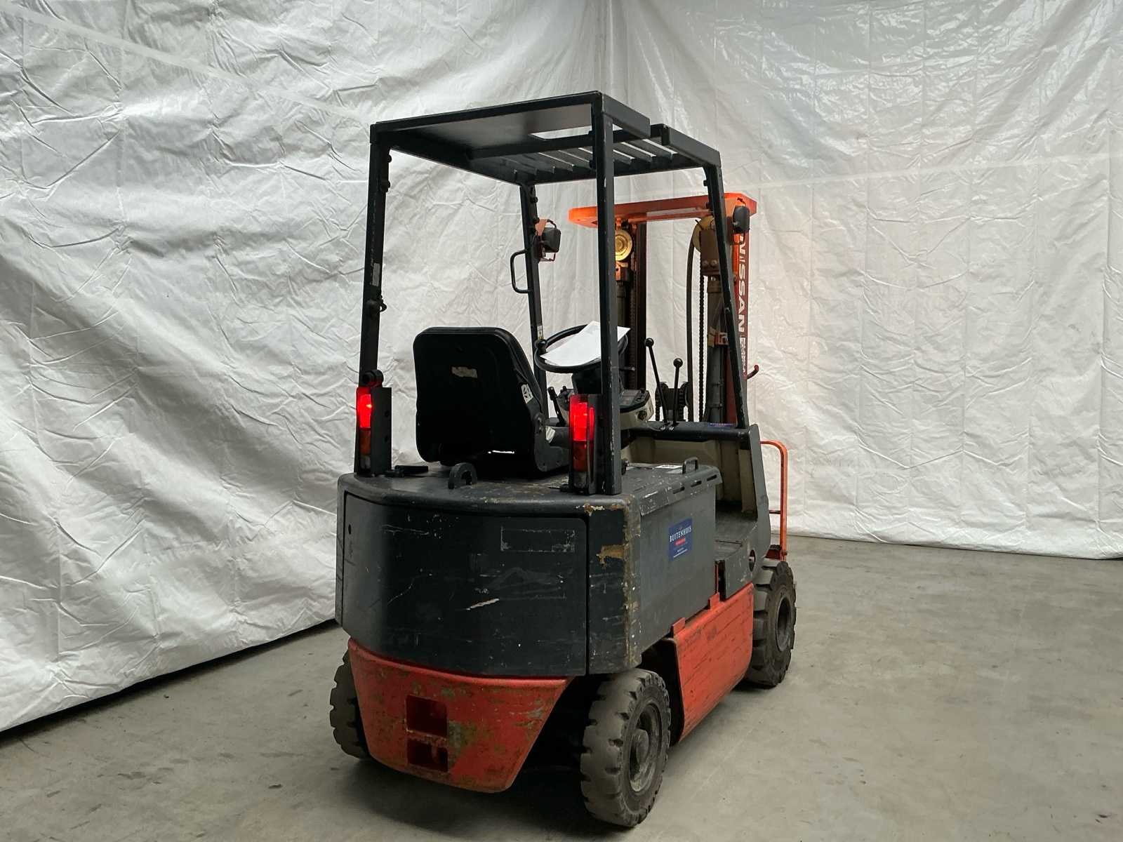 Nee Merk: Nissan Type: H01L15 Bouwjaar: 1992 Serienummer: H01 003264 Brandstof: Elecktrisch Mast: Triplex Soort band: Rubber Aantal wielen: 4 Accu lader: true Free-lift: true Triple mast: true Eigen gewicht: 3995kg Hefvermogen: 1500kg Max. hefhoogte: 2100mm Vol rubber banden: true