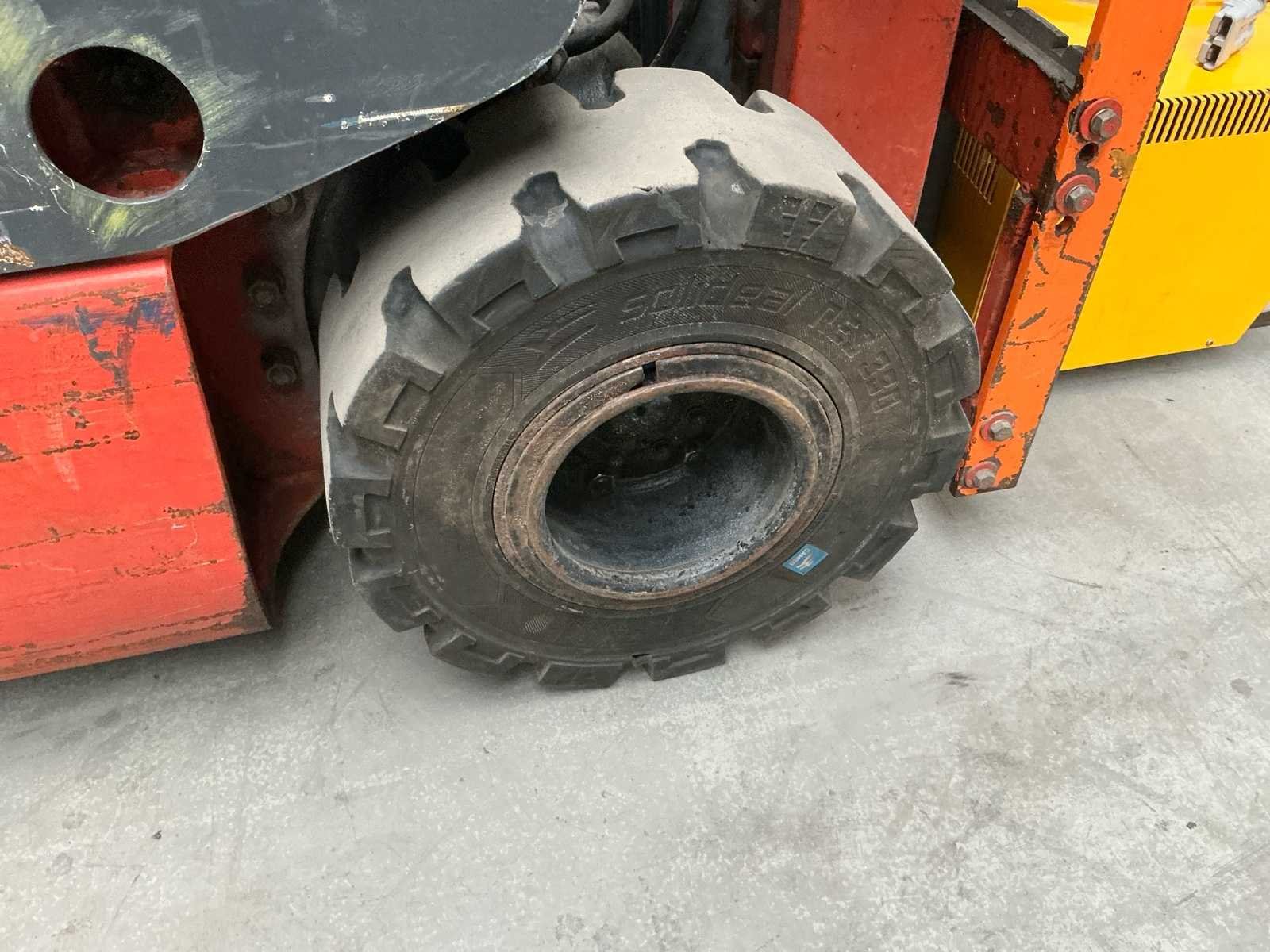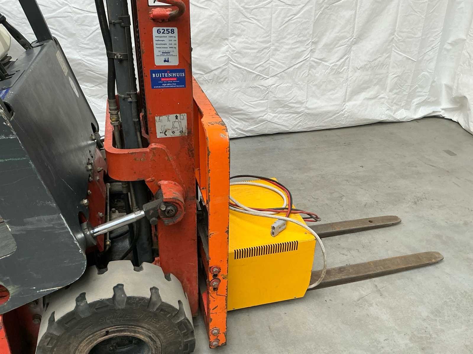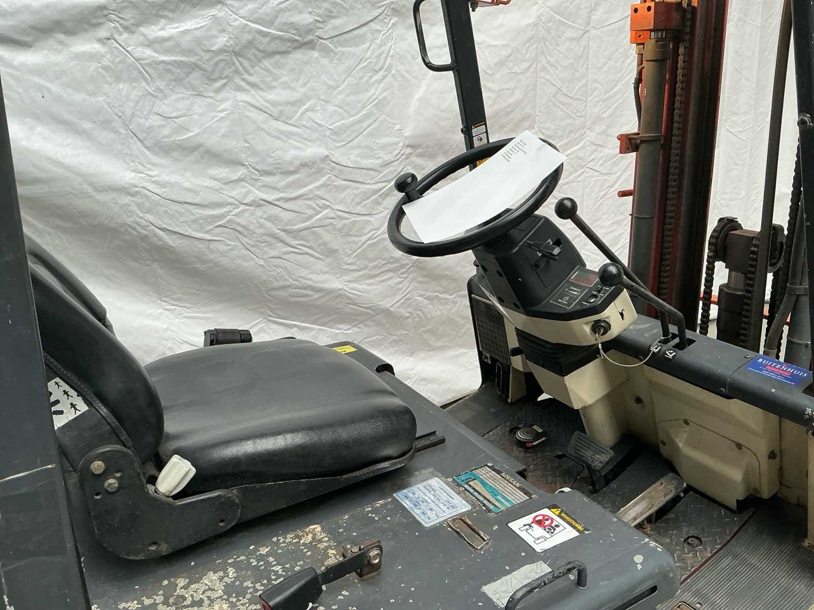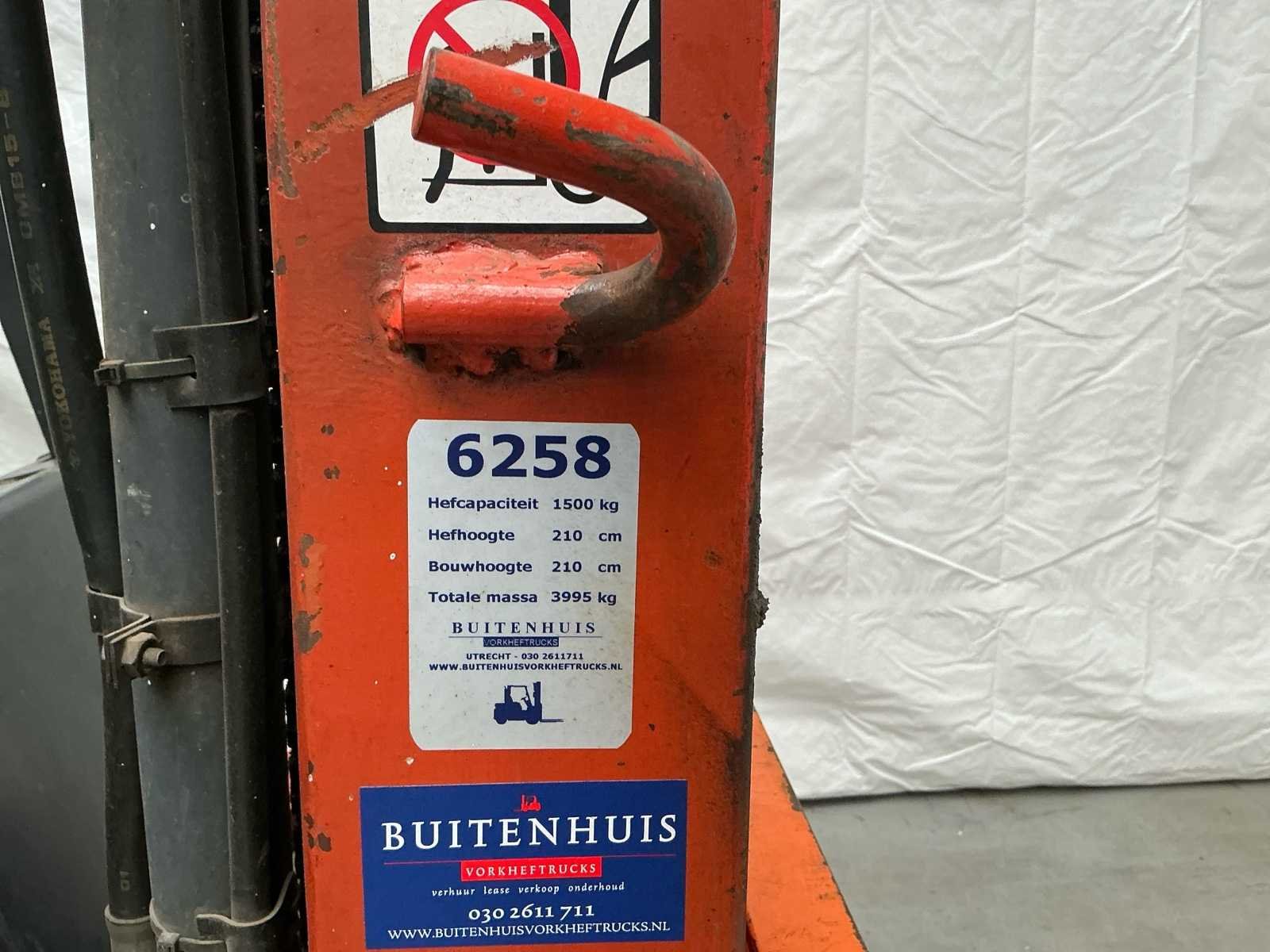 Nee Merk: Nissan Type: H01L15 Bouwjaar: 1992 Serienummer: H01 003264 Brandstof: Elecktrisch Mast: Triplex Soort band: Rubber Aantal wielen: 4 Accu lader: true Free-lift: true Triple mast: true Eigen gewicht: 3995kg Hefvermogen: 1500kg Max. hefhoogte: 2100mm Vol rubber banden: true