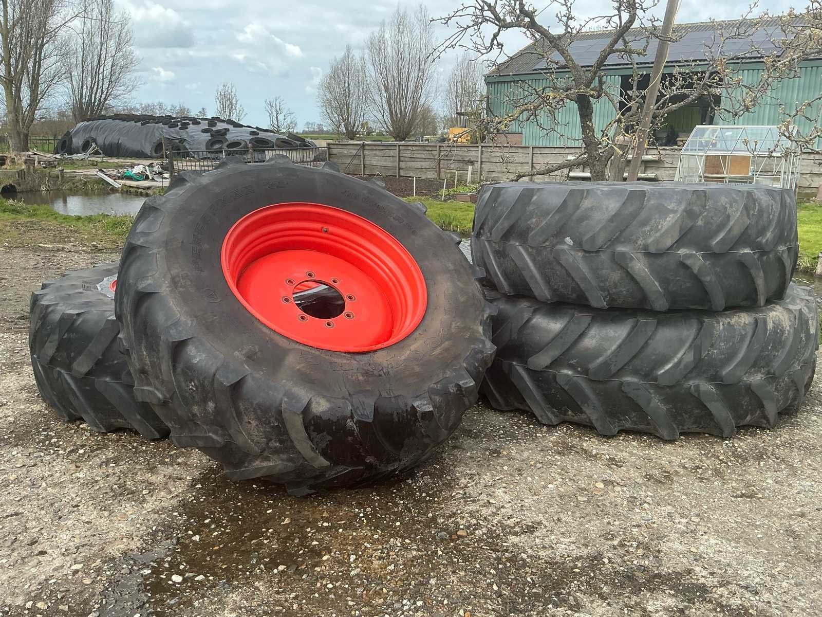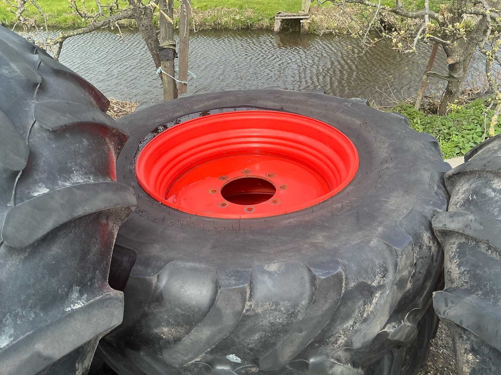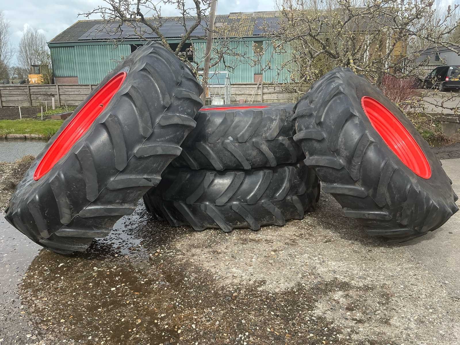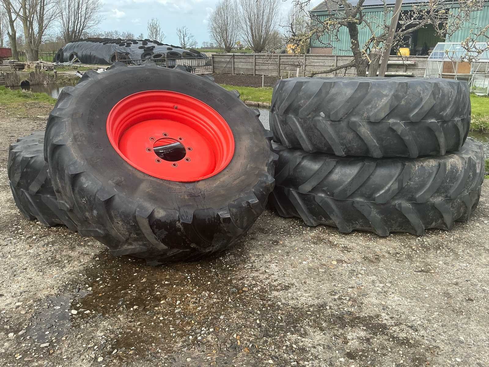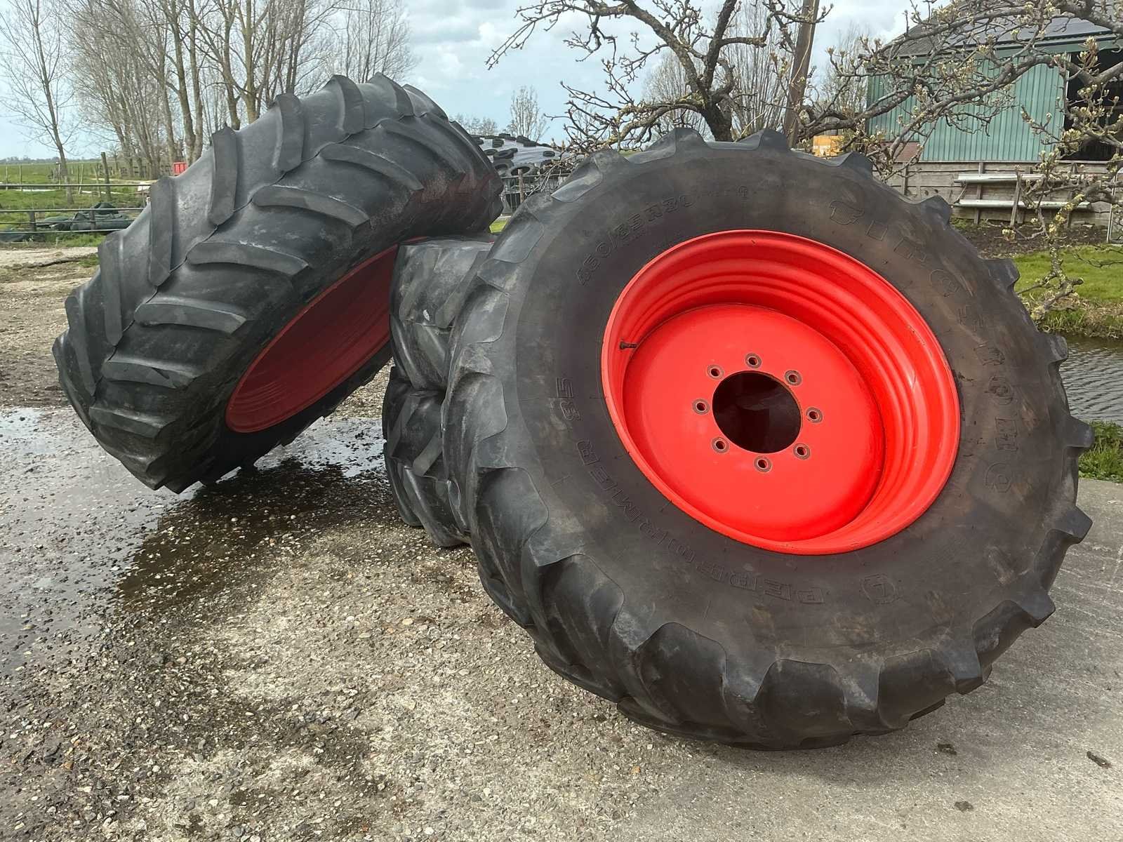2x: 520/85R42, offset 22.5 cm naar buitenkant en 29 cm naar binnenkant. Hoogte: 185cm. Spoorbreedte: 238cm. 2x: 460/85R30, offset 17cm naar buitenkant en 28 cm naar de binnenkant. Hoogte: 148 cm. Spoorbreedte: 230cm. Steekmaat: 27.5 cm beide. Nee Merk: Firestone Type: Performer 85 Bouwjaar: 2020