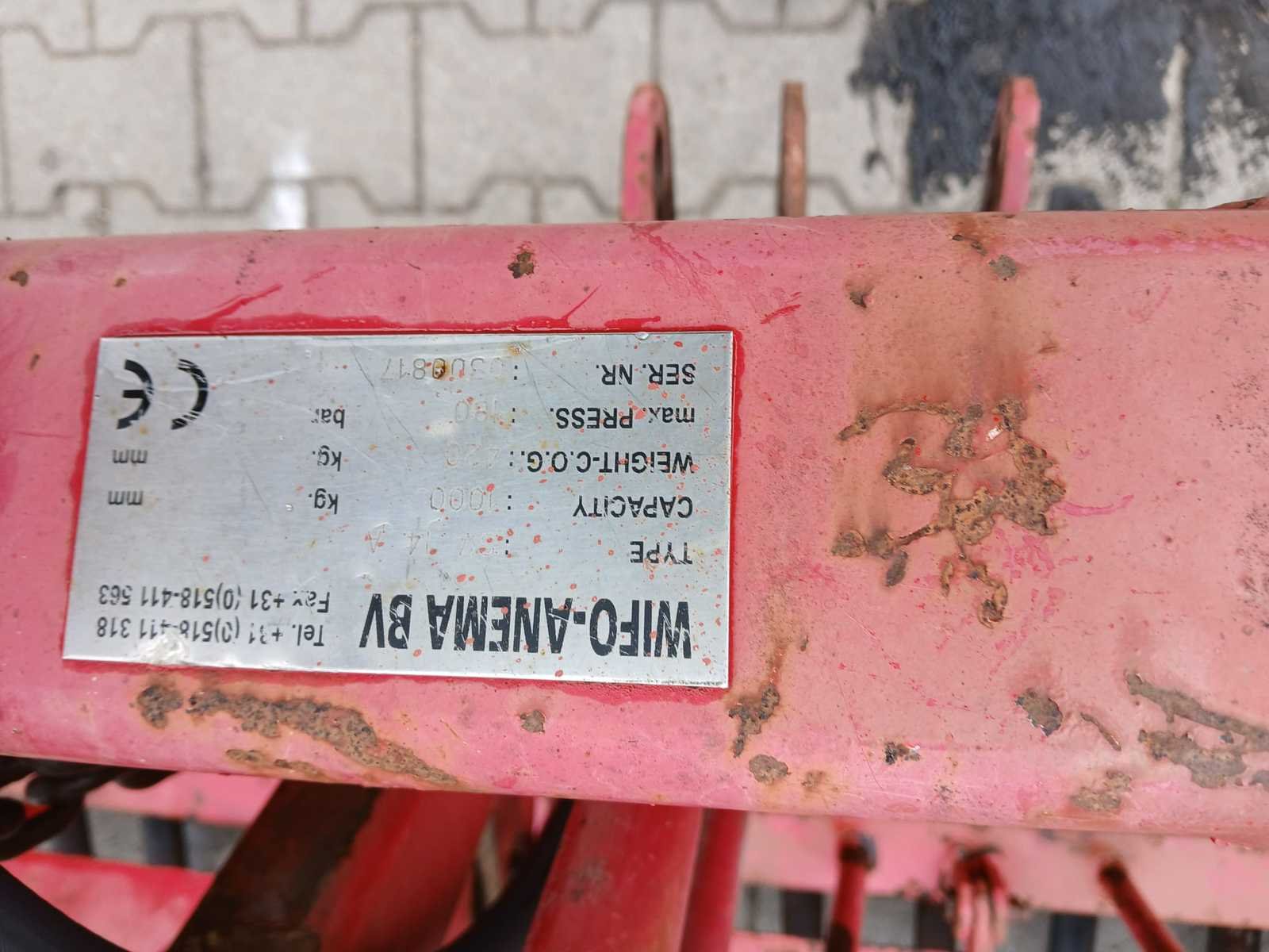 Frontvork: 260 breed, 120 lang, 125 hoog, Achtervork: 300 breed, 130 lang, 120 hoog met hydraulische afschuiver Nee Merk: Wifo