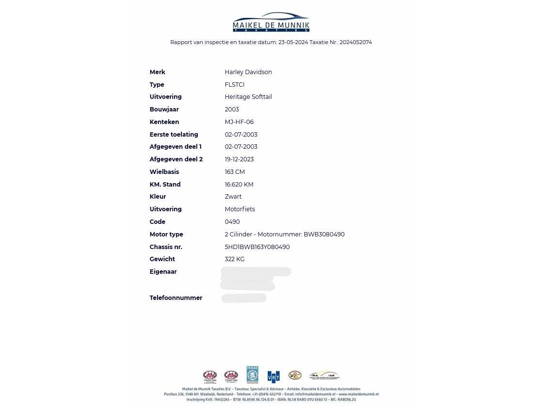 Deze Harley Davidson FLSTCI Heritage Softtail is voorzien van originele documentatie zoals registratiedocumenten. Dit voertuig is geheel origineel en schadevrij. Deze Harley Davidson FLSTCI Heritage Softtail verkeert zowel technisch als cosmetisch in goede en verzorgde staat met normale gebruikssporen en is goed en deskundig onderhouden. Deze Harley Davidson FLSTCI Heritage Softtail, bouwjaar 2003, is destijds nieuw geleverd in Nederland. Accessoires: Lederen tassen, aangepast uitlaatsysteem, windscherm, klokje, verchroomde valbeugel, verchroomde voetensteun. Taxatierapport t.w.v. 22.500,00,- aanwezig Bezichtiging op afspraak!! Nee Merk: Harley Davidson Model: Chopper Type: 88 FLSTCI Herit. Cl. Kenteken: MJ-HF-06 Brandstof: Benzine Cilinderinhoud: 1449cc Datum eerste toelating: 2003-07-02 Gewicht: 322kg Vermogen (kW): 47kW Kleur: niet van toepassing Afgelezen kilometerstand: 16620km Transmissie: Handgeschakeld (5) Nationaliteit documenten: NL Handelsbenaming: FLSTCI Bruto BPM (NL): 3364€ Bouwjaar: 2003