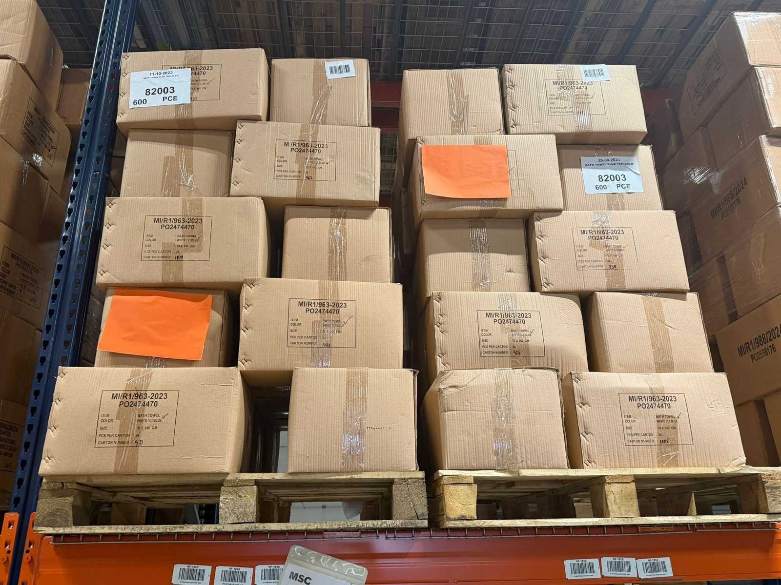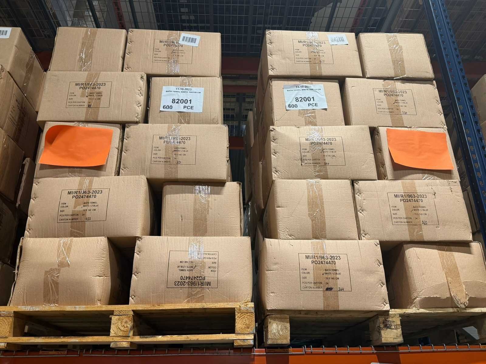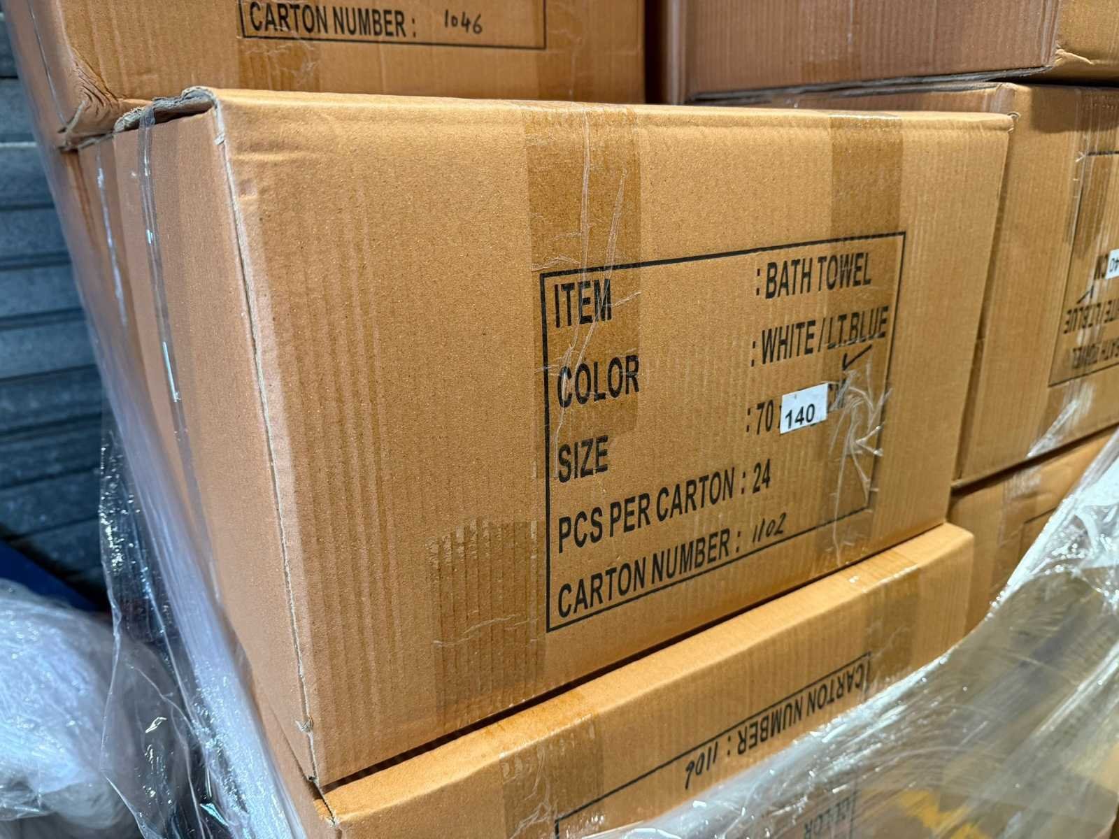 Bestaande uit: 1x pallet a 25 dozen a 24 stuks blauw (140x70cm) en 1x pallet a 25 dozen a 24 stuks wit. Kavel kan geladen worden bij de koper. Nee
