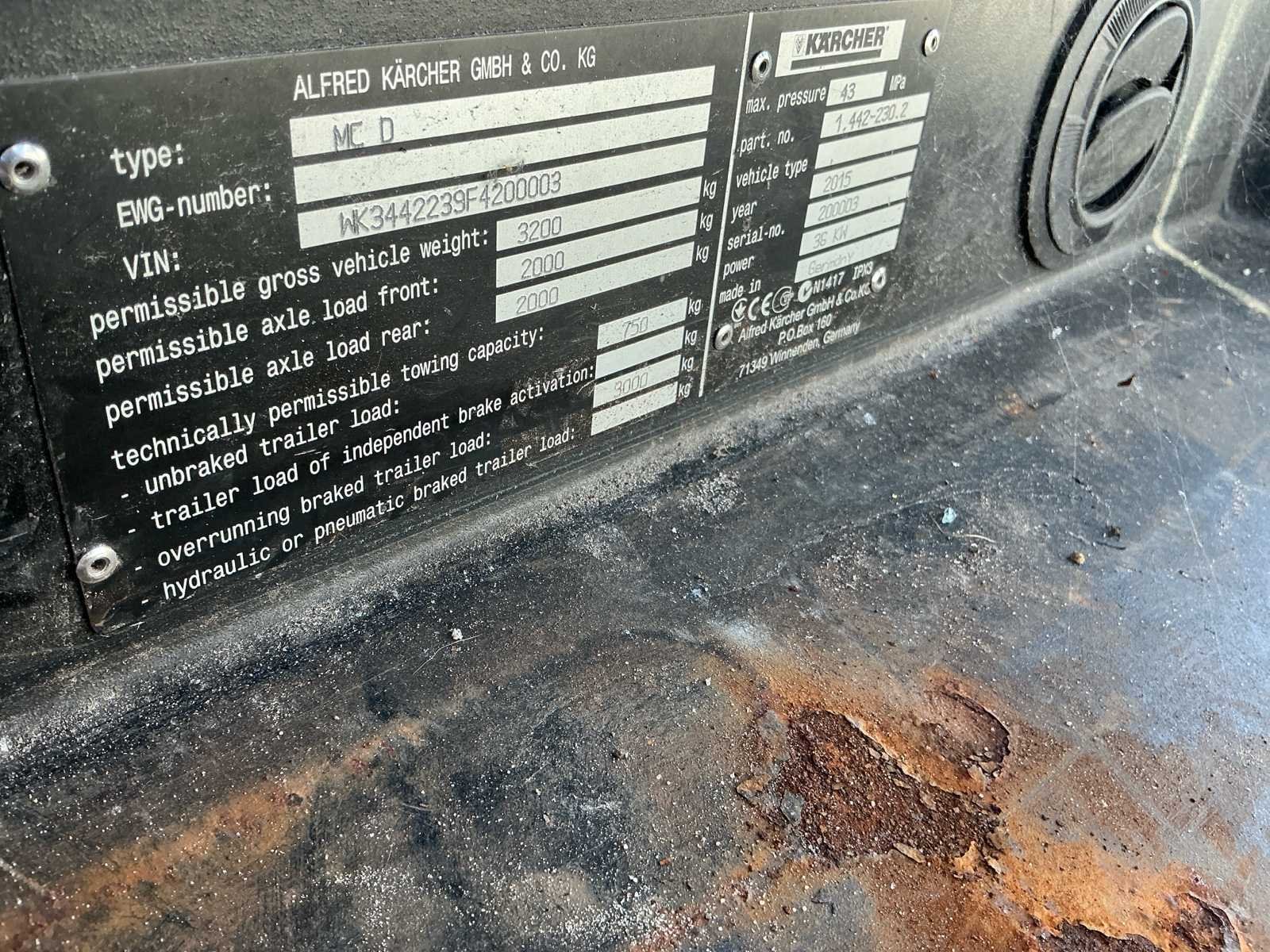Voorzien van; Trekhaak; (LET OP! dit voertuig heeft een kenteken registratie, bij afhalen dient u dit ter plaatste bij een derde partij te naam te stellen of te exporteren, hier zijn extra kosten aan verbonden) No Merk: Kärcher Type: MC 130 Bouwjaar: 2015 Kenteken: TXV-96-B Serienummer: WK3442239F4200003 Afgelezen urenstand: 3487 Brandstofmotor aangedreven: true Brandstof: diesel
