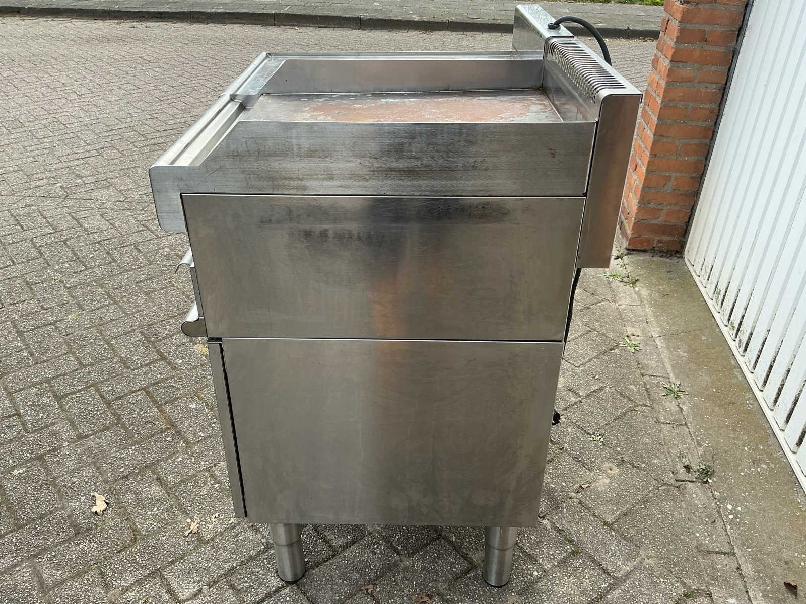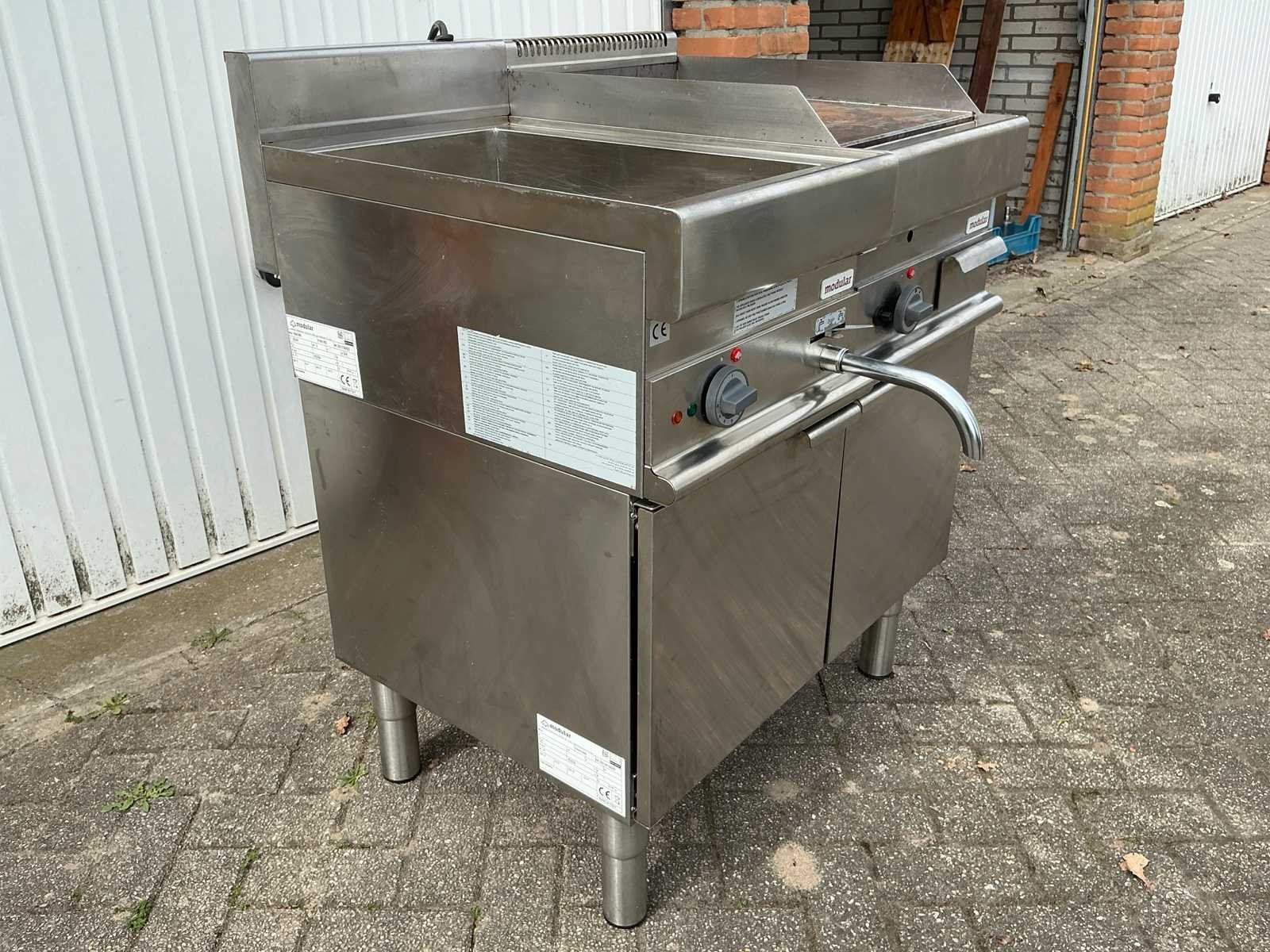 Voorzien van; Bakplaat en frituur No Merk: Modular Type: FU65/40 BME Bouwjaar: 2021 Serienummer: 316022 Gas: true Elektrisch: true Aansluiting: 220V Capaciteit.: 2kW Totale afmeting lxbxh: 65x80x102mm