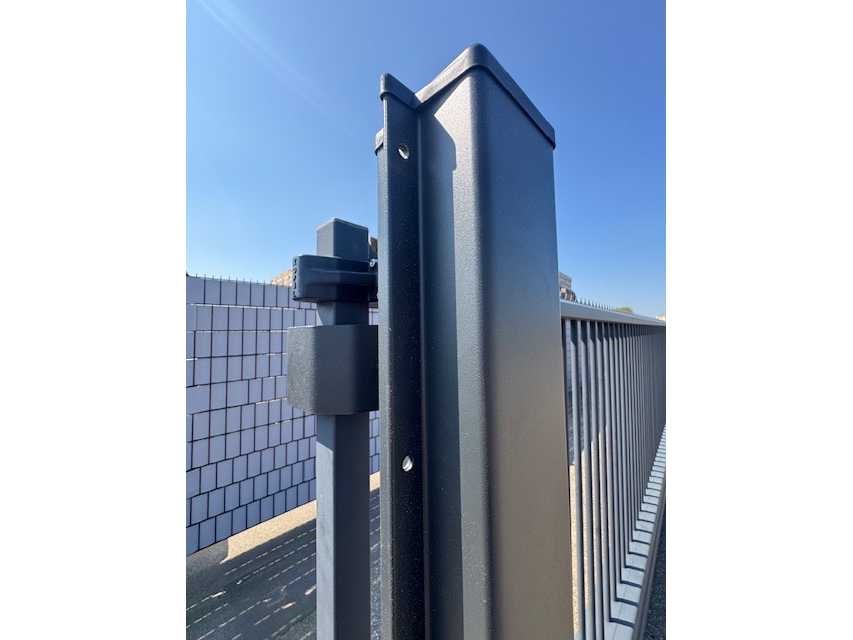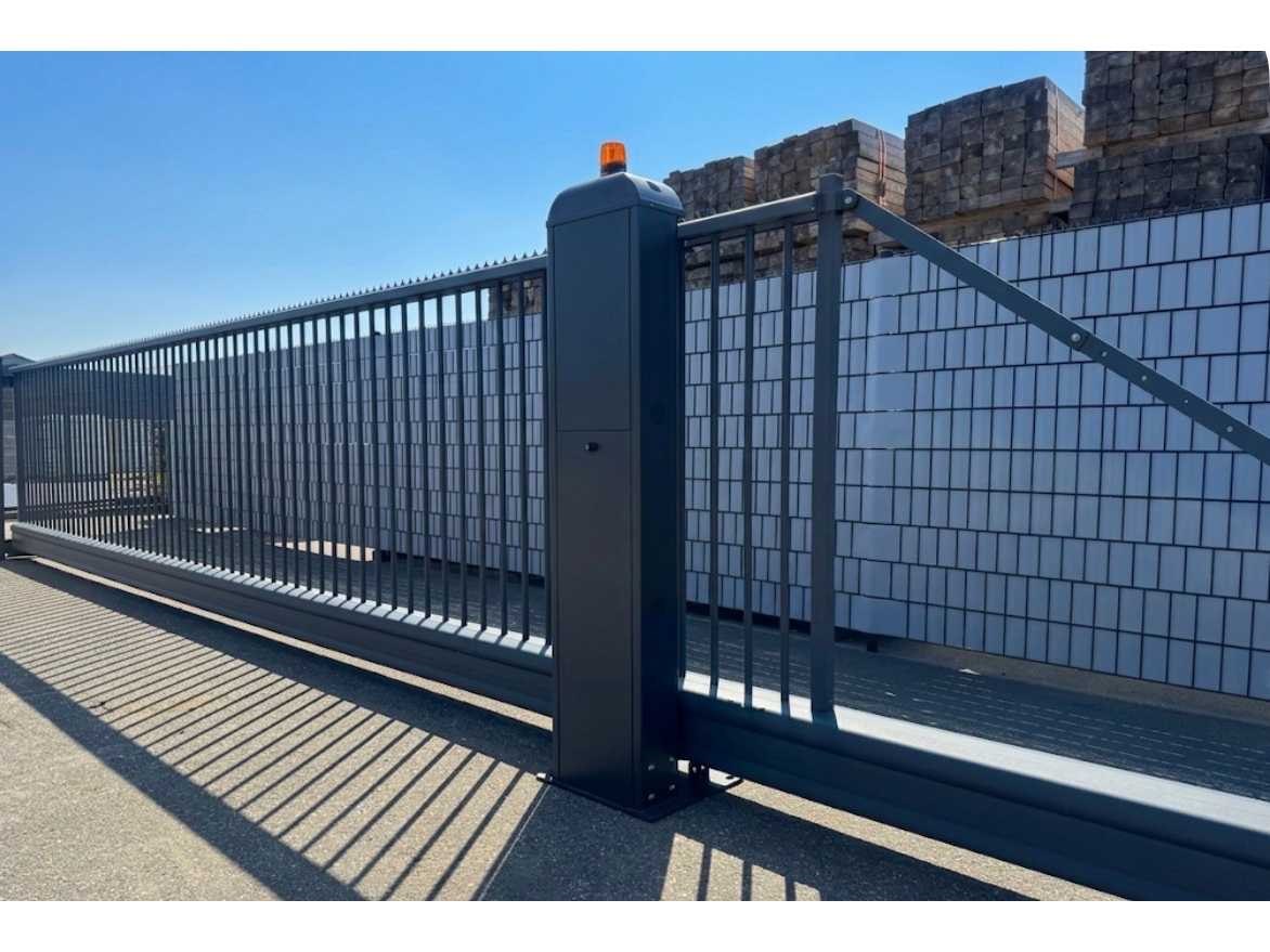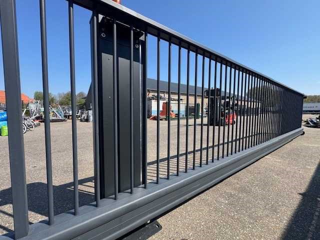 Staat: Ongebruikt Totale breedte poort: 1100 cm Doorgang 800cm Kleur : Zwart Grijs RAL 7021 Voorzien van: GSM module, sensoren, fotocellen, druklijsten, zwaailamp, 2x handzender, fundatieplan en aansluitschema Nee Merk: Kopal Model: Terminus Kleur: Zwartgrijs / RAL7021 Breedte: 1100cm Hoogte: 180cm Materiaal: Staal