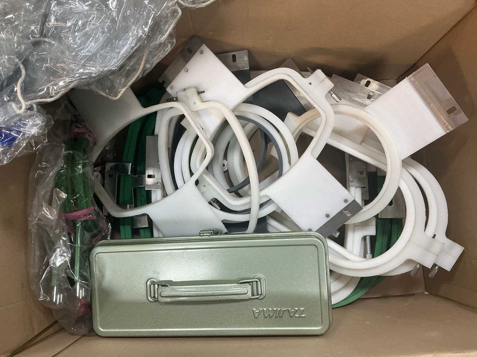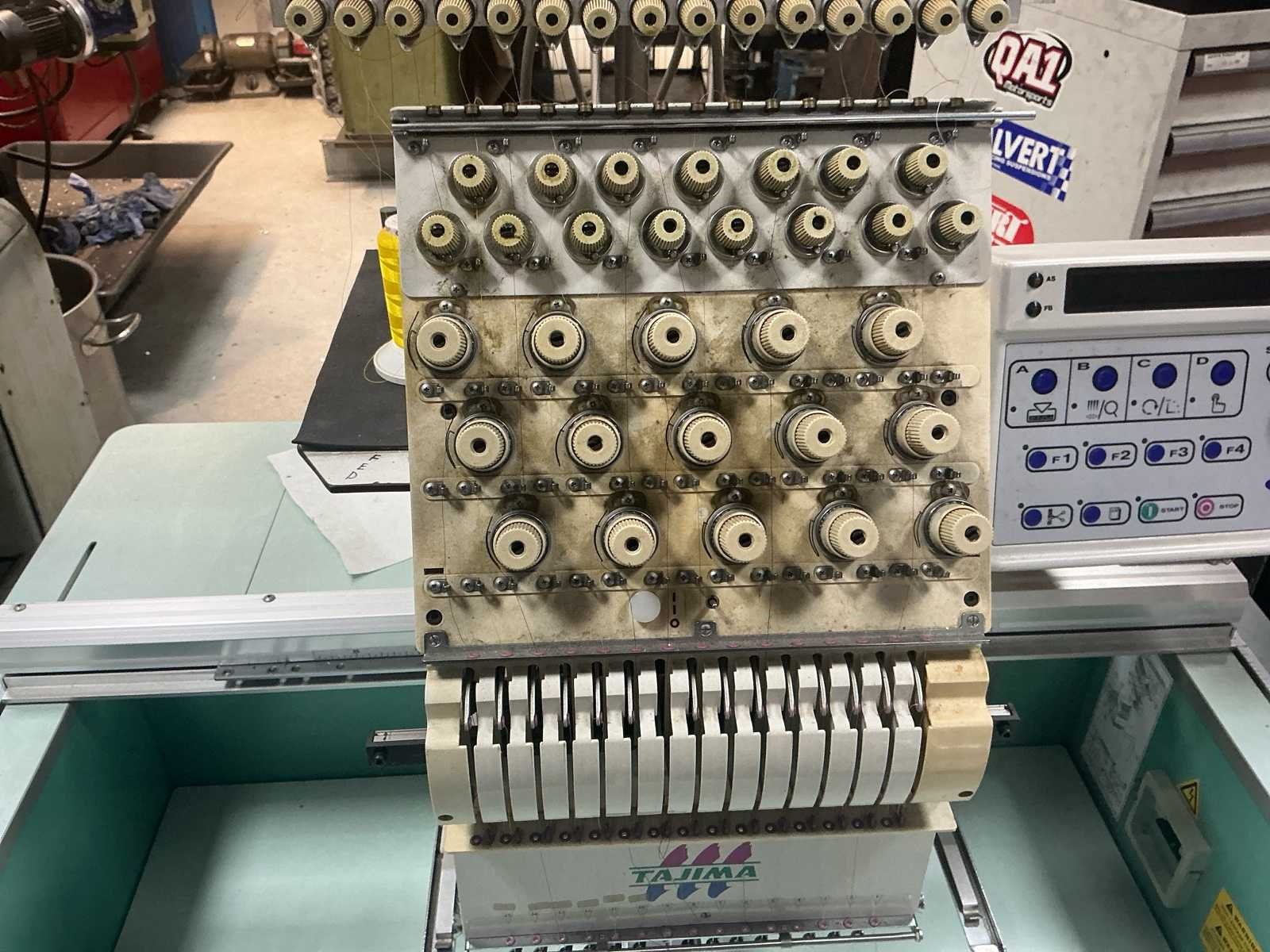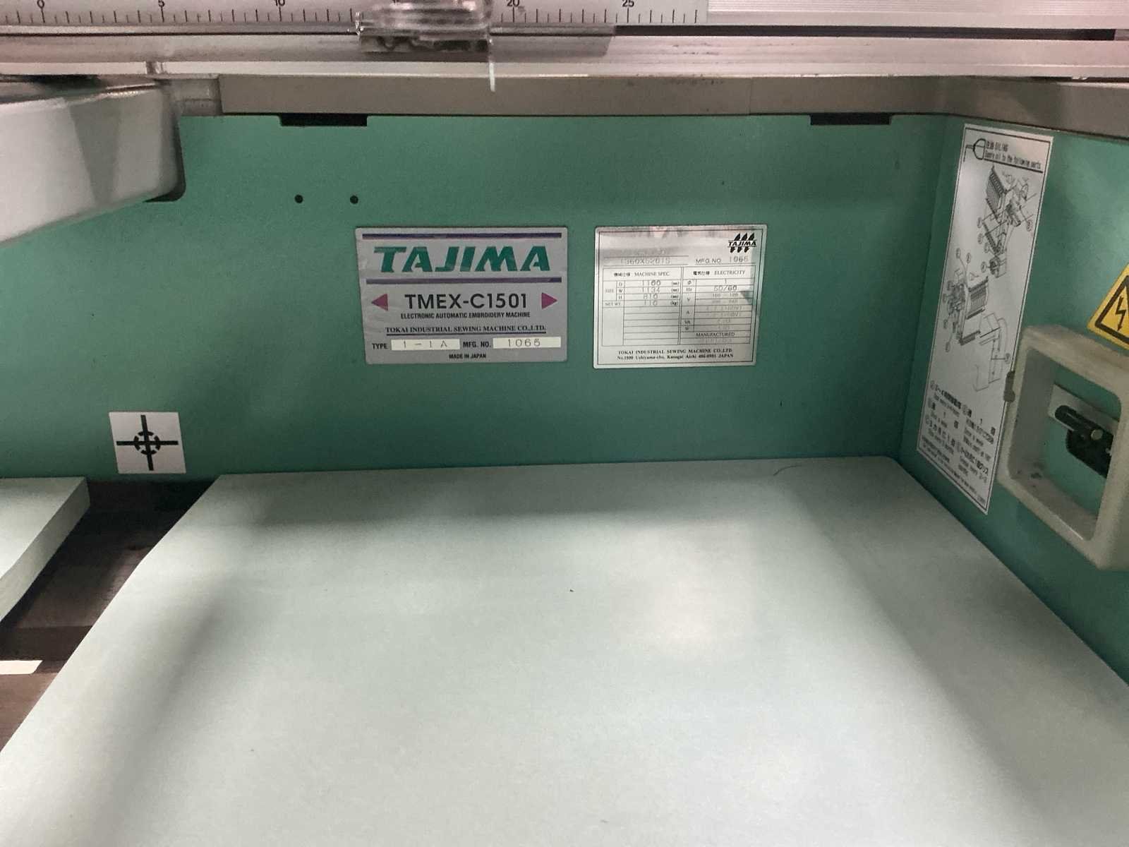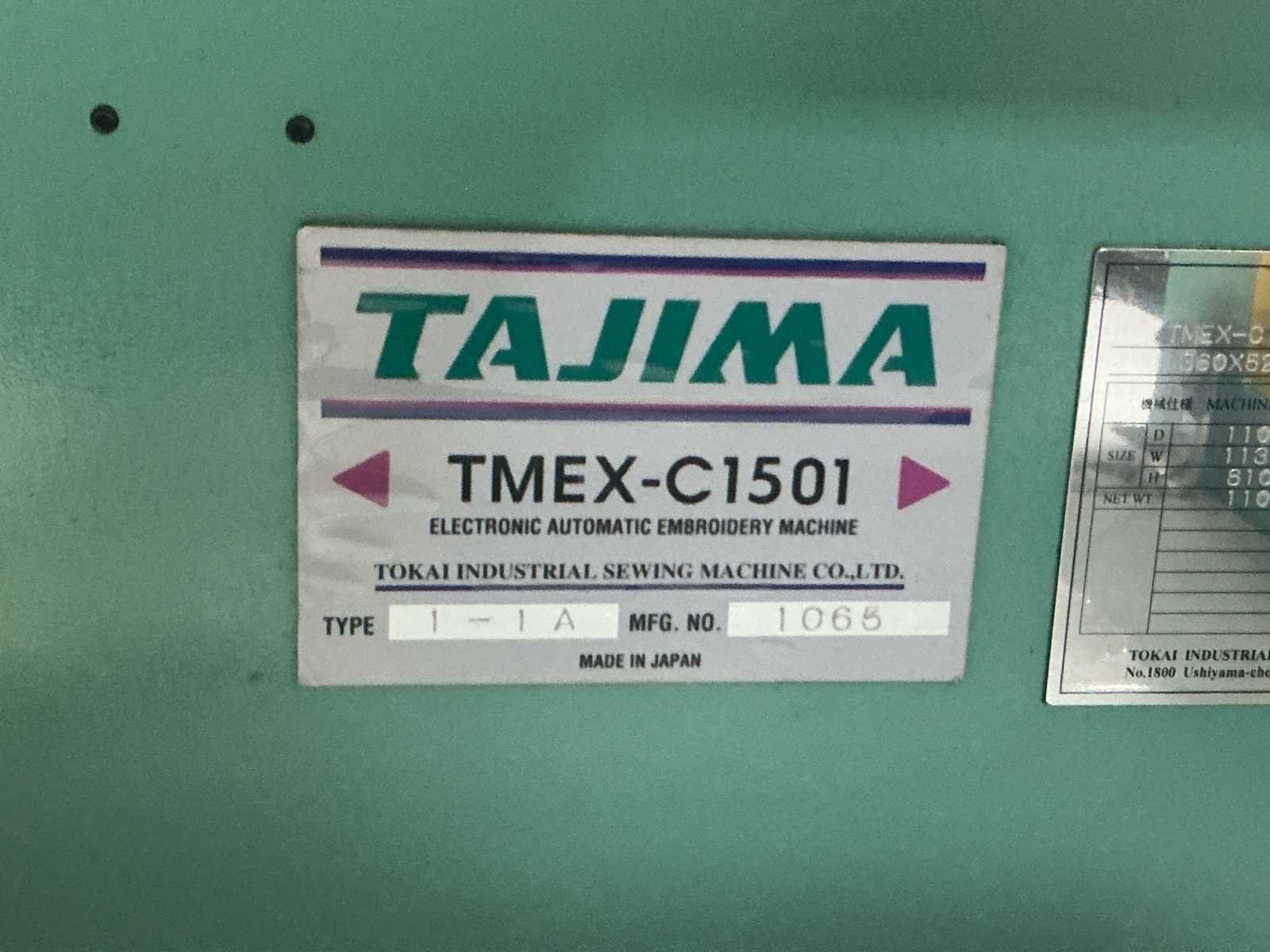 Voorzien van documentatie en doos vol houps en toebehoren (zie foto) Nee Merk: Tajima Type: TMEX-C1501 Bouwjaar: 1999 Serienummer: 1065 Aantal koppen: 15pcs Aantal naalden: 15pcs Borduurgebied afm. l: 400mm Borduurgebied afm. b: 600mm CNC-besturing, merk, type: Tajima Aansluiting: 220V Machinegewicht: 110kg Totale afmeting L: 1100mm Totale afmeting Breedte: 1134mm Totale afmeting Hoogte: 810mm