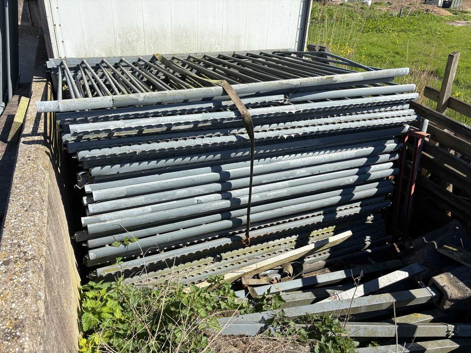 Staanders 6x6x211cm: circa 35 staanders en circa 35 hekken. Nee Lengte: 228cm Breedte: 5cm Hoogte: 146cm
