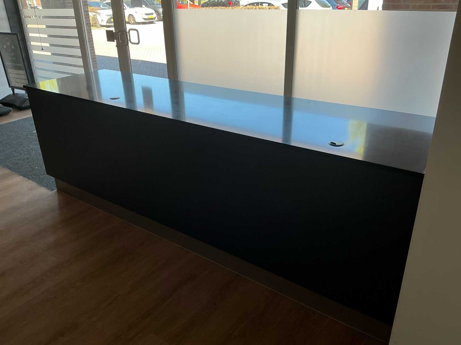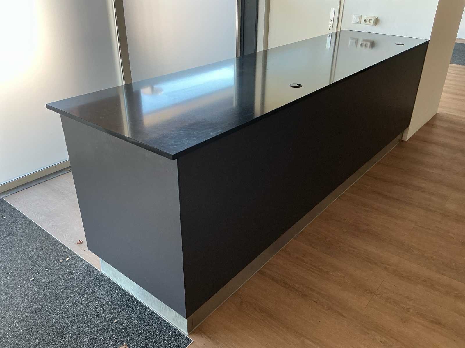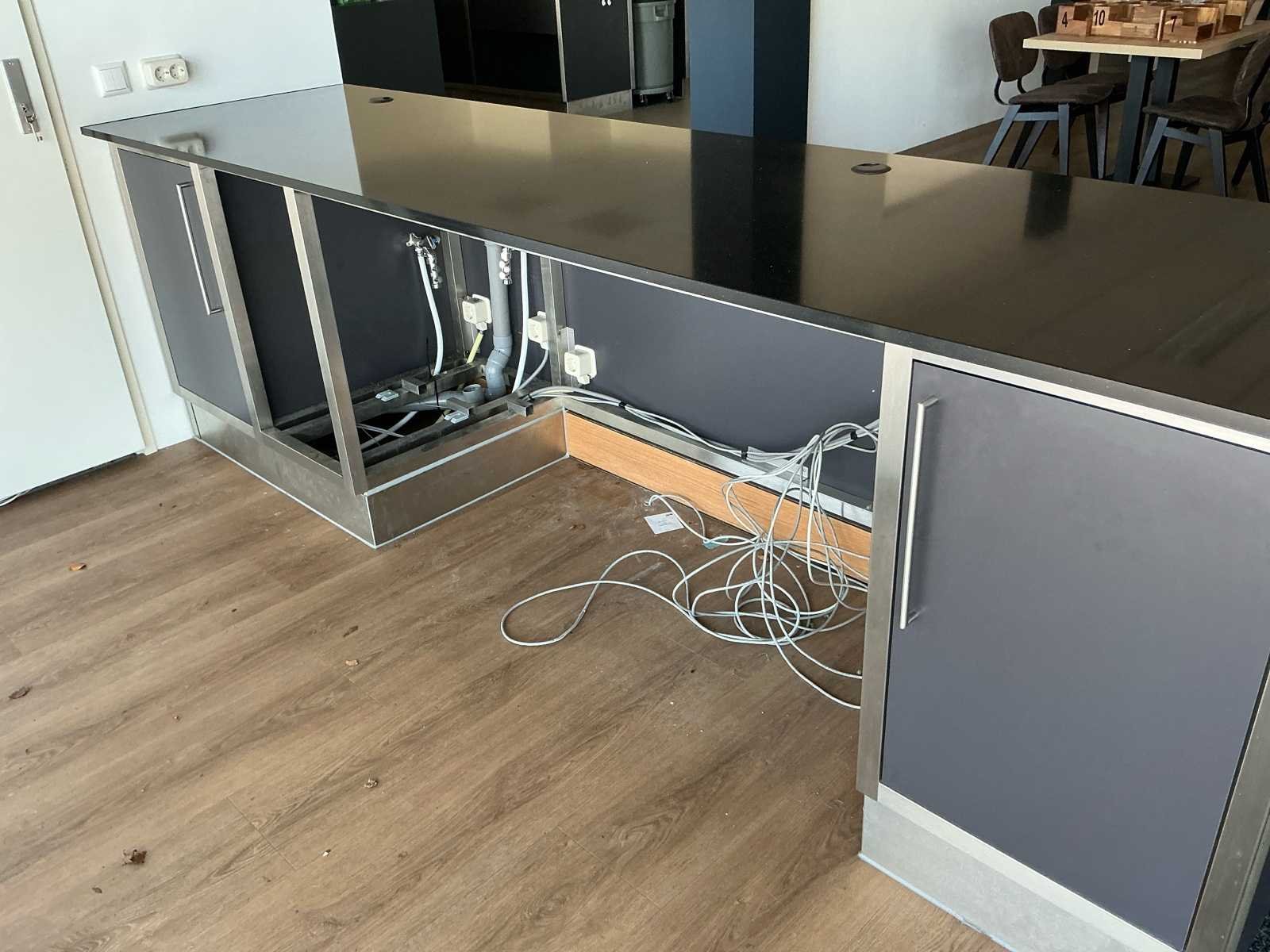 Afmetingen: 3200 x 800 x 900 mm Voorzien van granieten blad Framesparing Aan beide zijdes opbergruimte voorzien van deurtjes Exclusief koeling en ijsblokjesmachine No