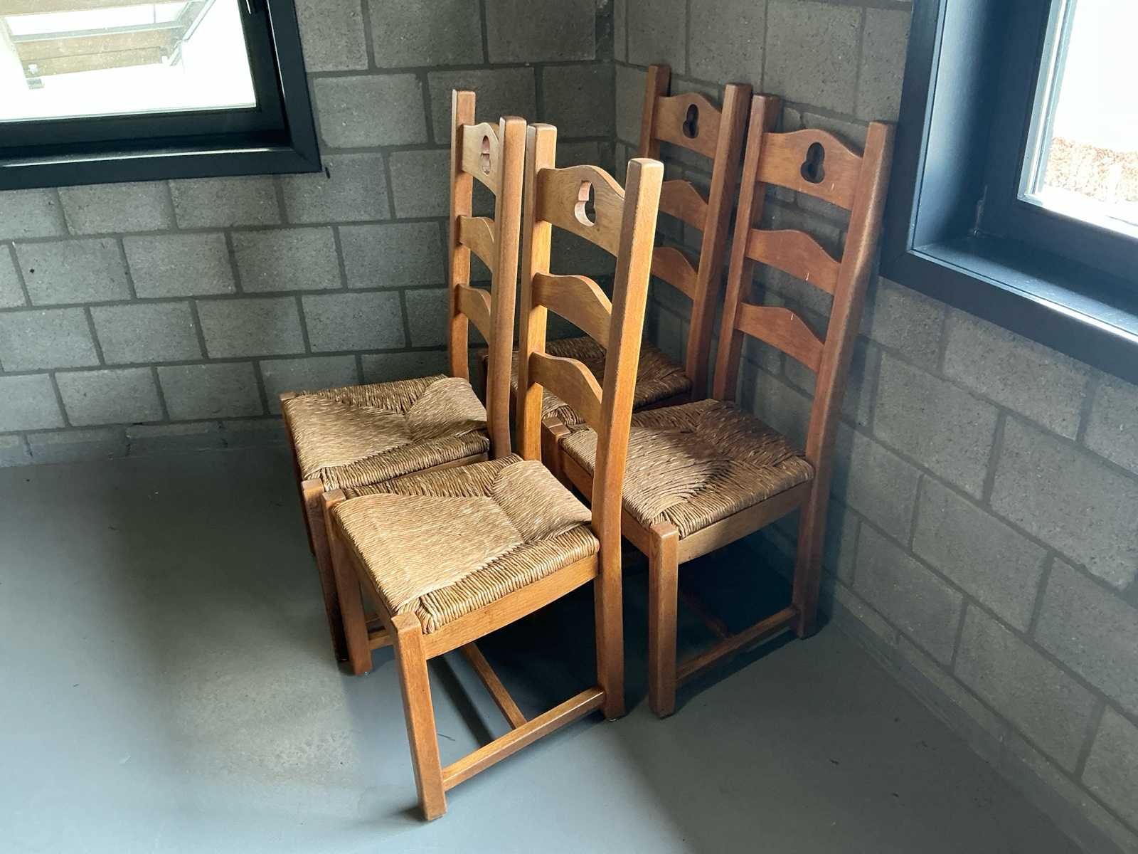 Bestaat uit: 19 stuks houten stoelen, vinyl zitvlak, stof bekleden rugleuning kleur beige 11 stuks, 8 stuks met blauw bekleding op rugleuning, 4 stuks met rotan zitvlak. Nee Totale afmeting L: 55cm Totale afmeting Breedte: 50cm Totale afmeting Hoogte: 86cm Stofbekleed: true Leder bekleed: true Hout: true Diepte: 45cm Zithoogte: 48cm