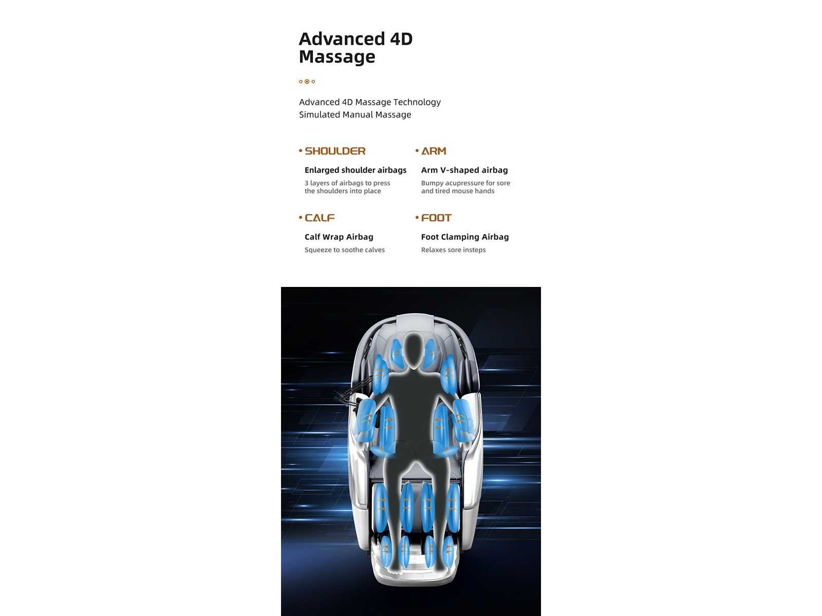 Zero‑gravity, Full body air‑pressure massage met instelbare intensiteit, SL‑track waarbij de manipulator van nek naar rug, taille en billen beweegt, schouderpositie‑detectie, been‑airbags en voetmassage, Bluetooth HIFI‑surroundsound, been‑ en rug verwarming, 12 automatische programma’s + 8 handmatige programma’s, Thaise stretch, AI‑spraakbesturing, sportauto‑stijl armsteun met snel knoppen + USB‑opladen, gezondheidsmonitoring (hartslag, bloeddruk), telefoon draadloos opladen, verbeterde kunststof beenstructuur, telefoon/iPad‑houder, afstandssensorfunctie (joystick‑knop voor het bedienen van je telefoon of iPad), scherm met touchscreen, pianolak‑afwerking, 220 V, afmeting verpakking 125X77X117CM, gewicht inclusief verpakking 82.5KG, Nieuw in doos. Nee Merk: LUMASEAT Model: Tasmanië Product type: Wit Kleur: Wit Gewicht: 83kg Lengte: 125cm Breedte: 77cm Hoogte: 117cm Materiaal: Kunstof