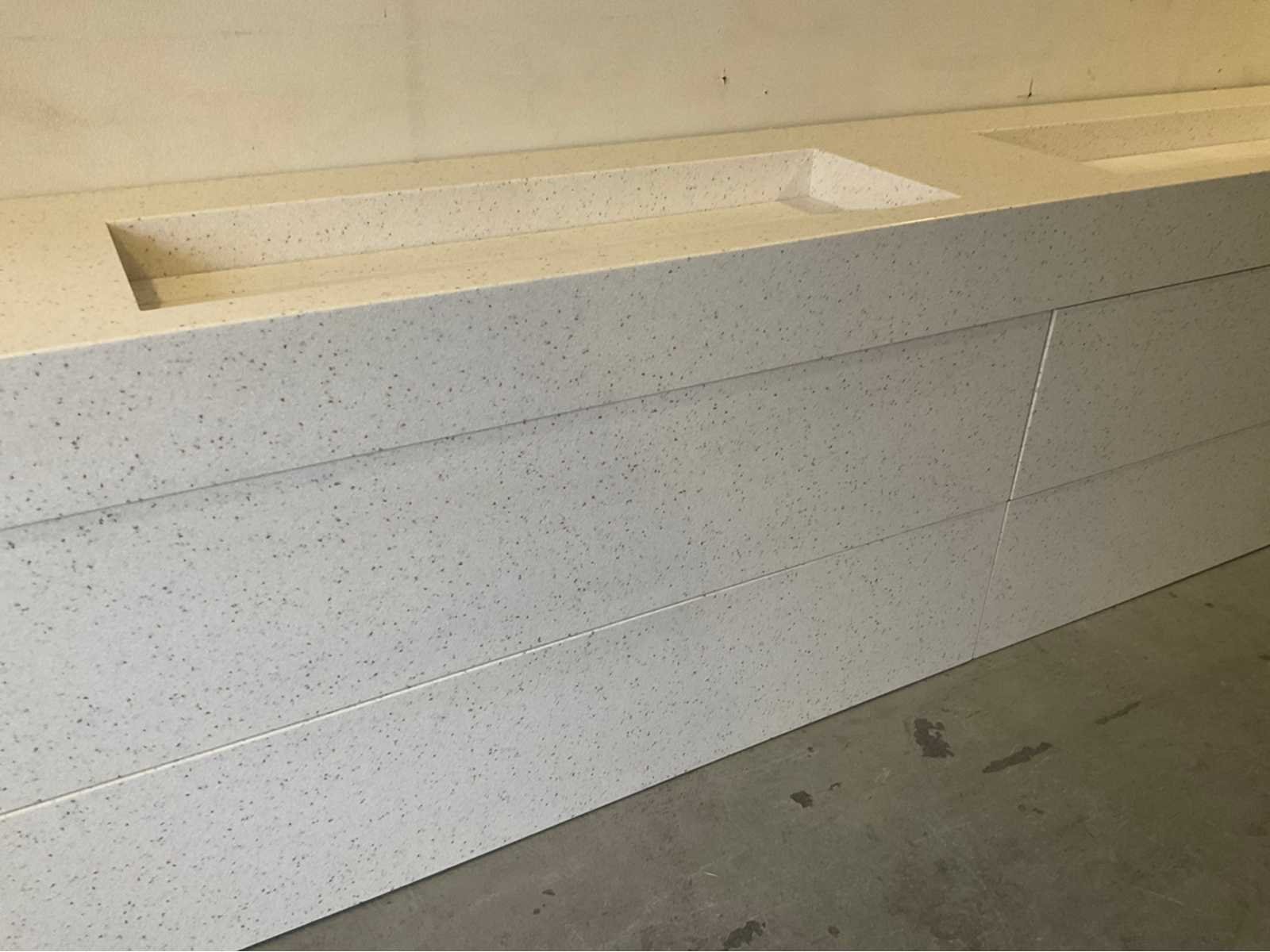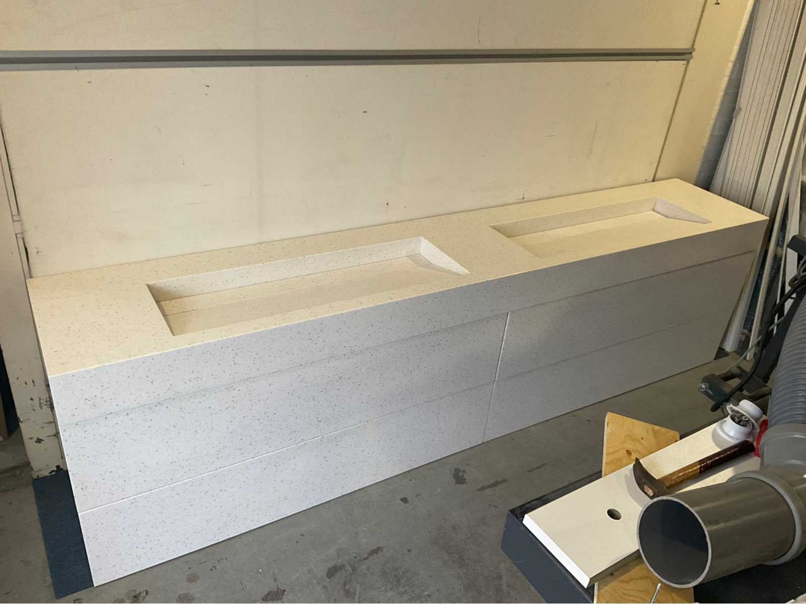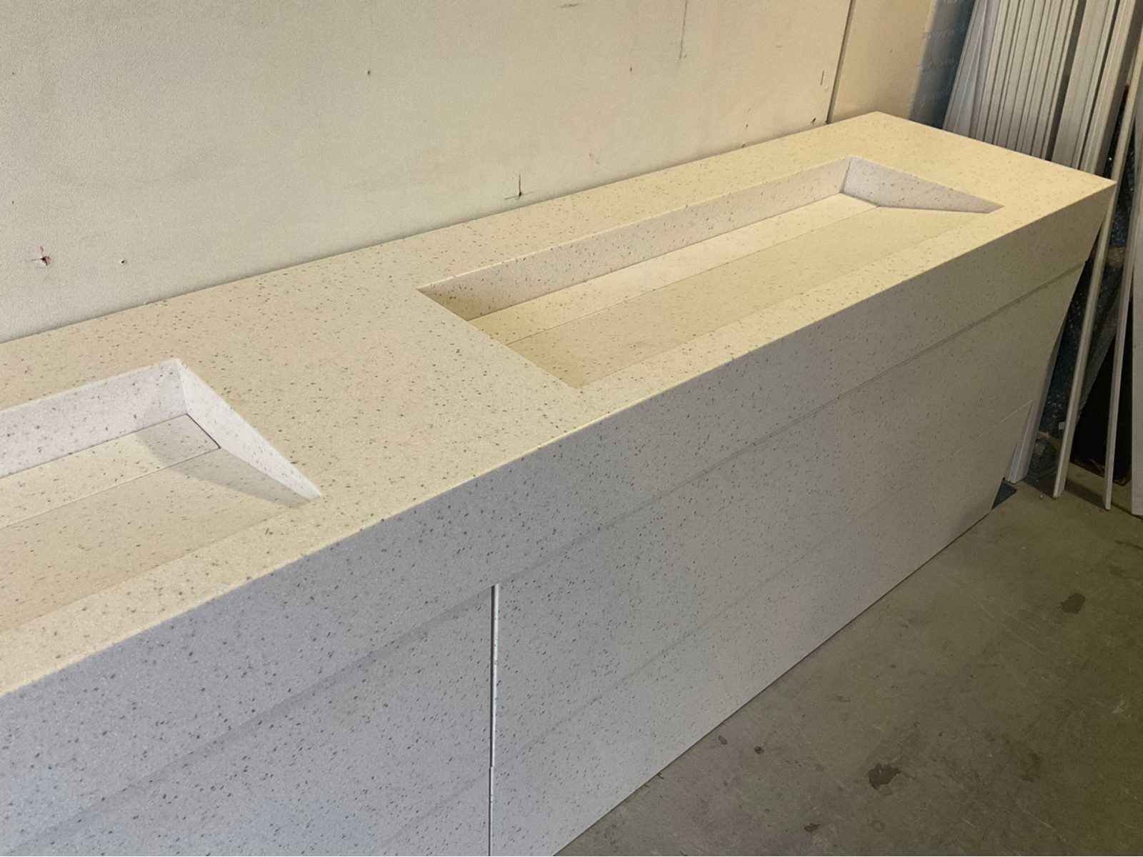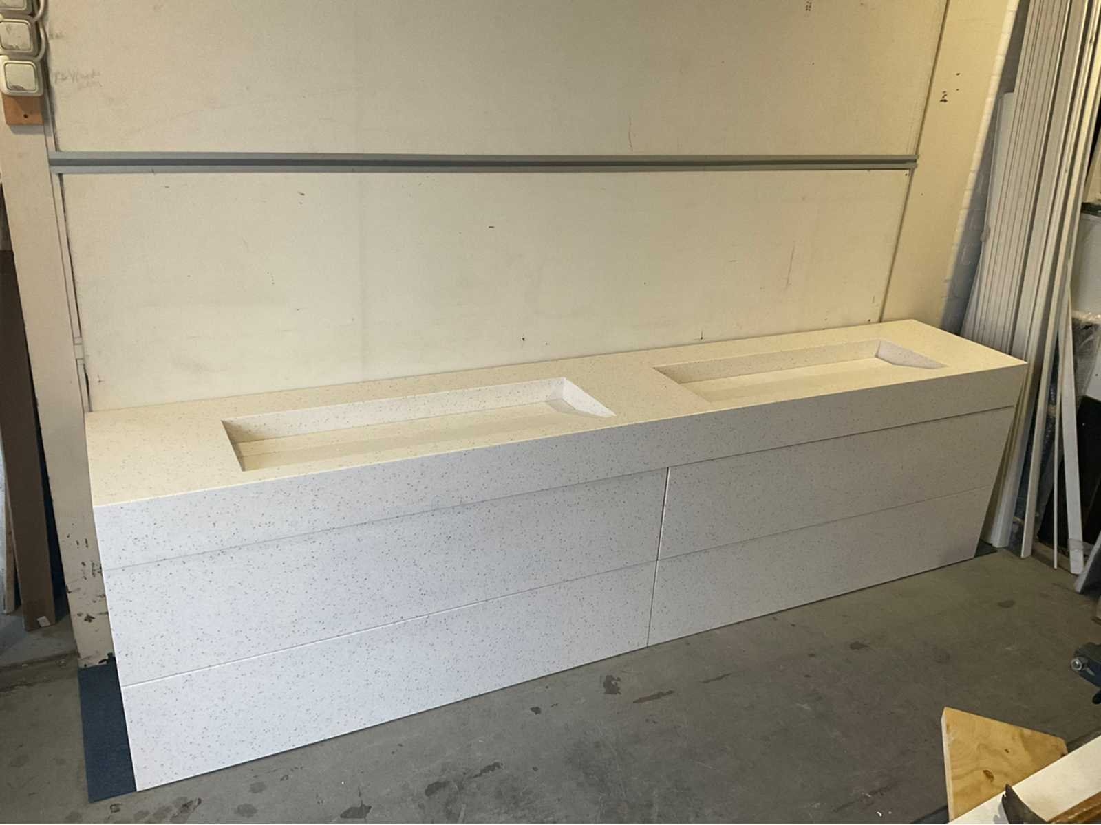 Exclusieve xxl design badmeubel blad en fronten van quartz composiet 280cm