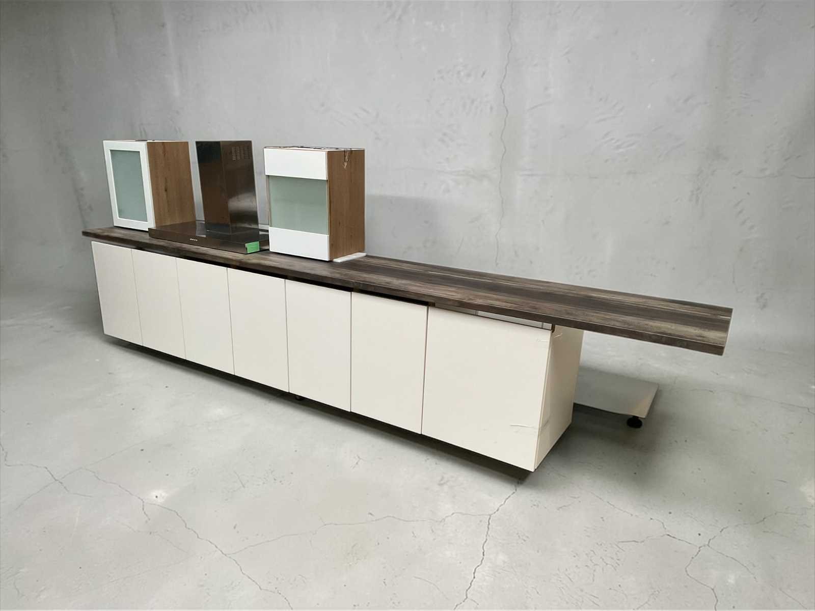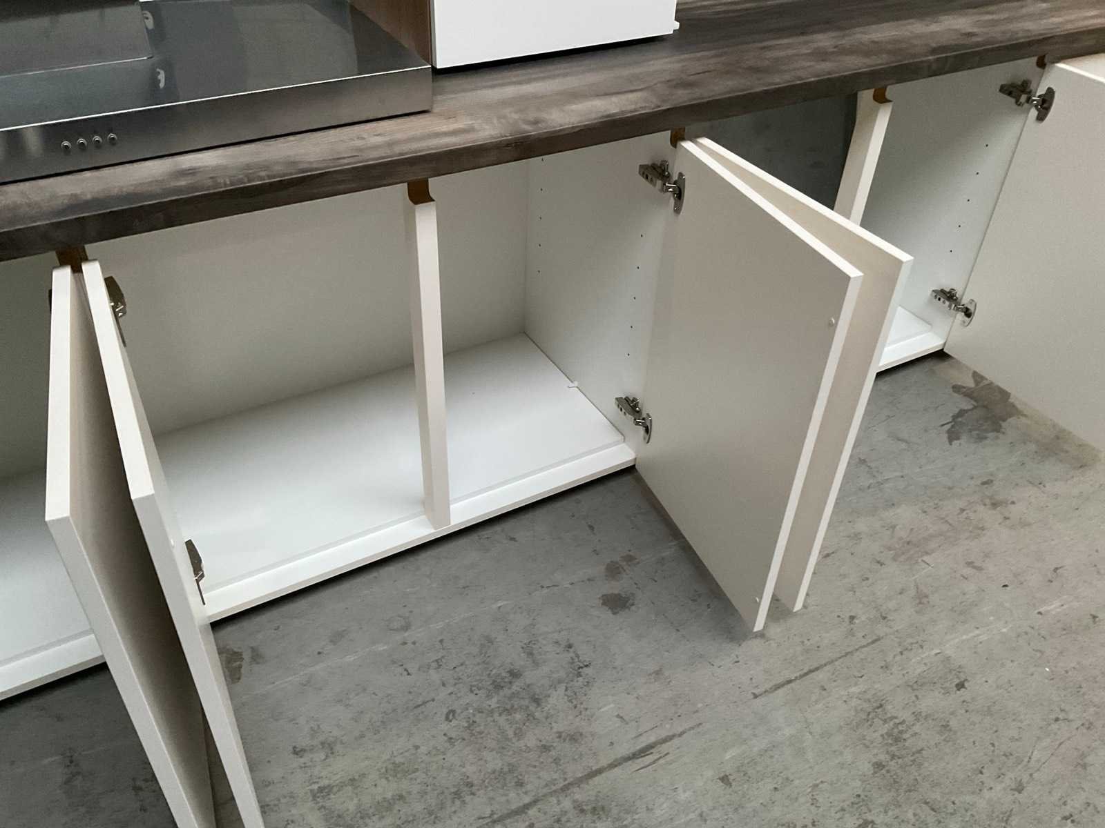 Onderkasten: 3x van 90cm, 1x 60cm Bovenkasten: 2x45cm Aanrecht 400cm Zonder poten en zonder afzuigkap Nee