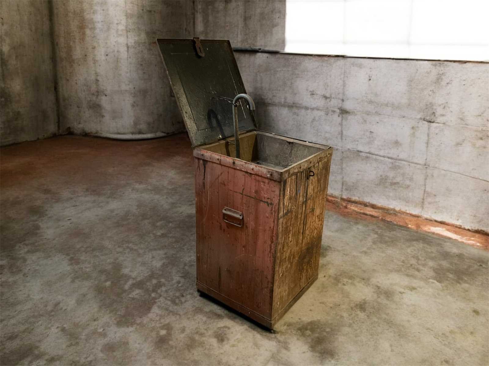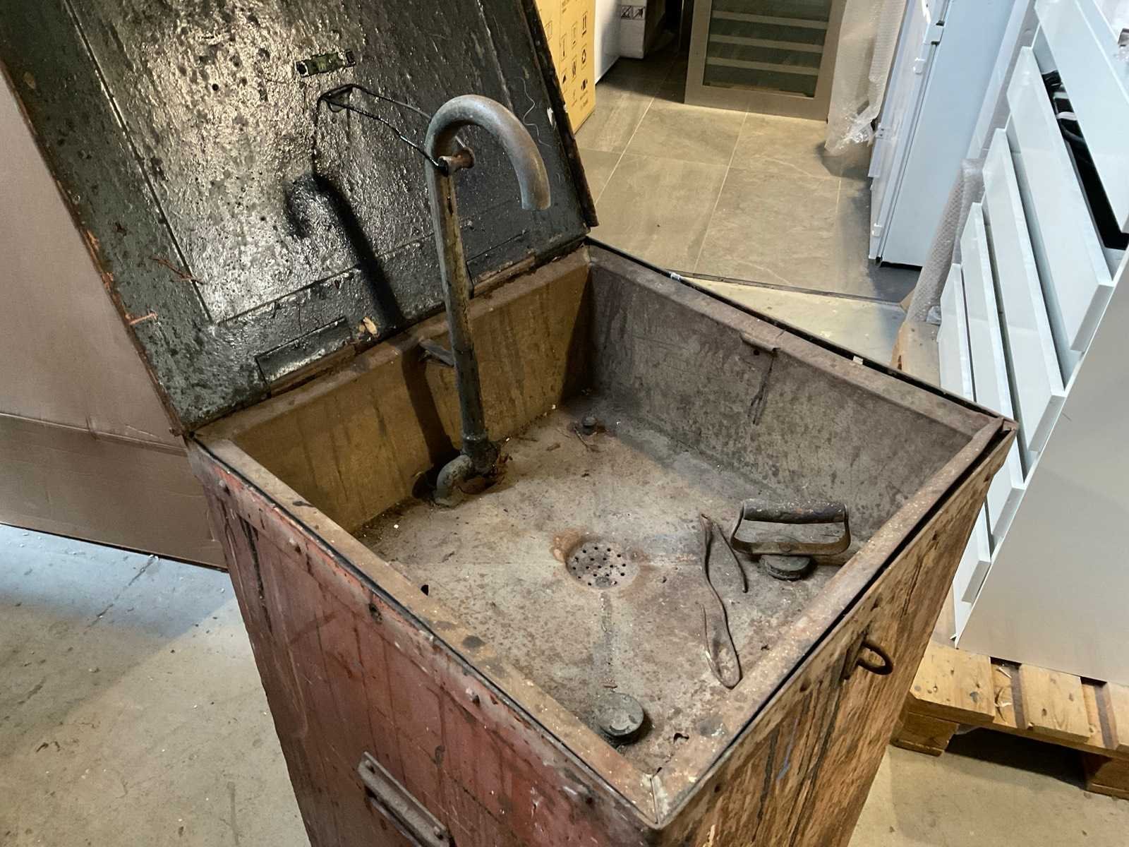 Vintage metalen wastafel met pomp 58x58x91cm
