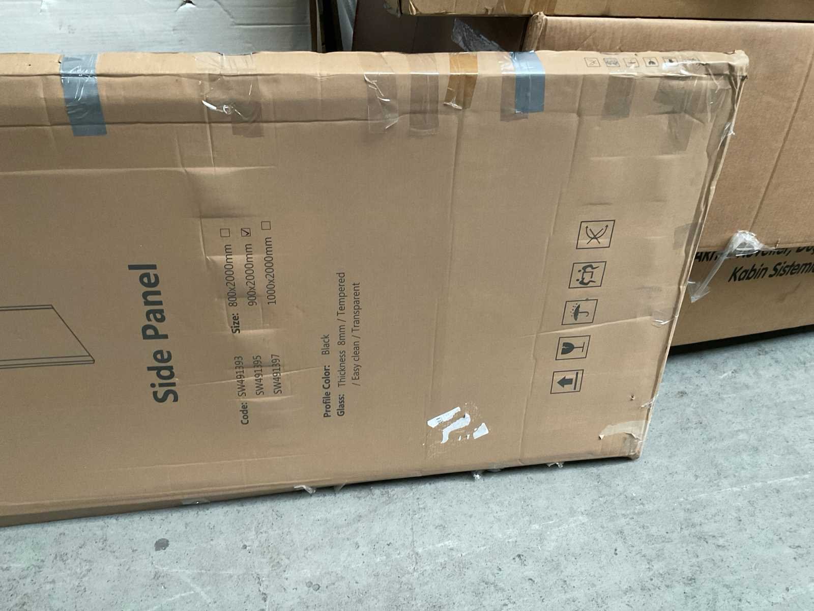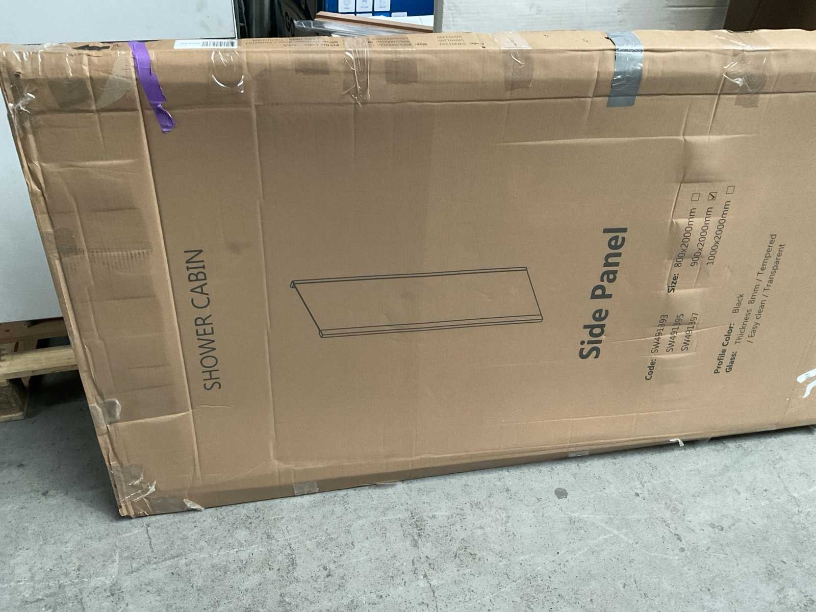 Zijpaneel 90x200cm helder glas profiel mat zwart
