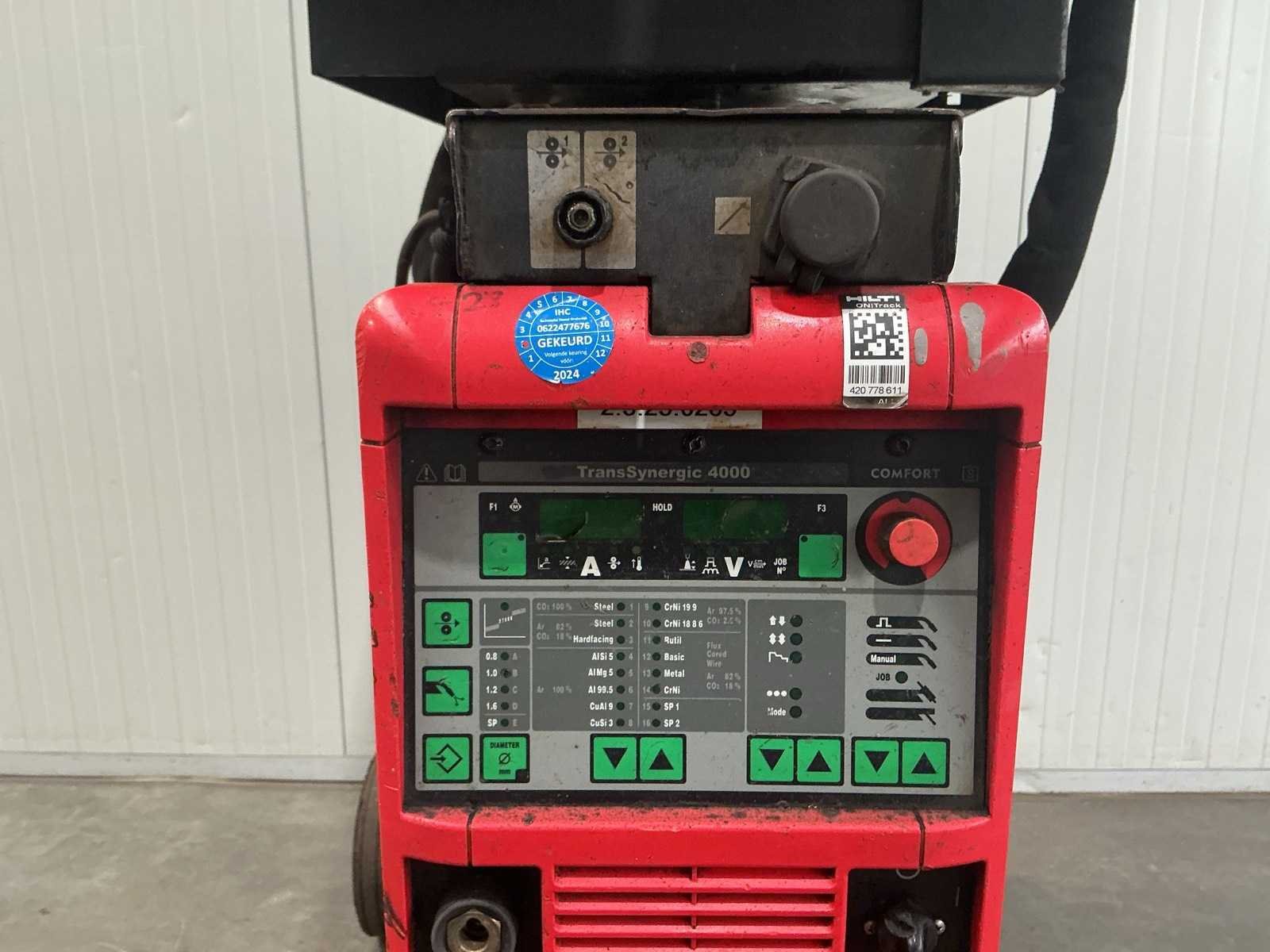 V.v. dubbele koffer Nee Merk: Fronius Type: TransSynergic 4000 Mig type: true Tig type: true Electrode type: true Inverter type: true Ampère belasting: 400A Draadaanvoerunit: true Digitale uitlezing: true