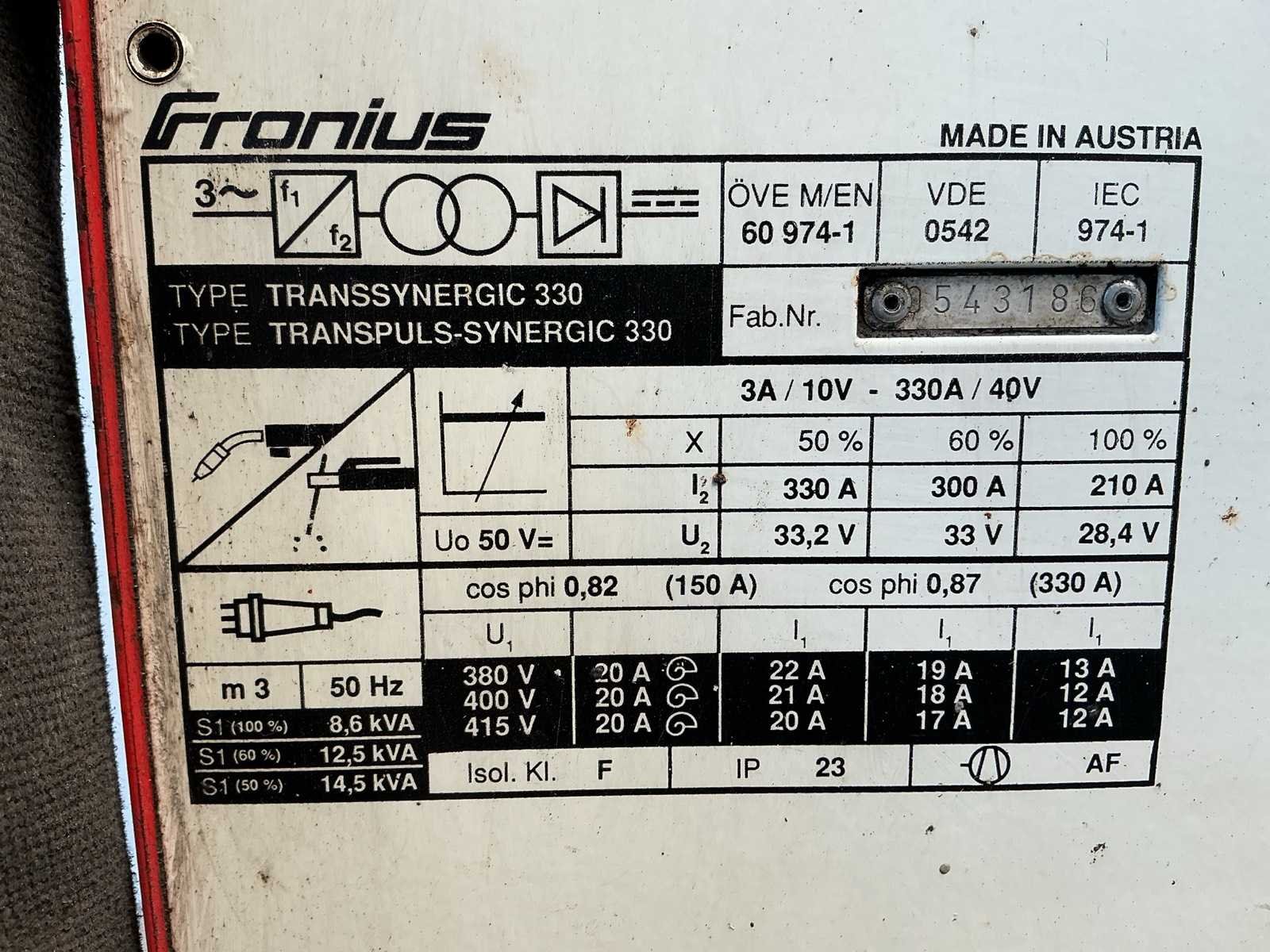 Nee Merk: Fronius Type: TransSynergic 330 Mig type: true Inverter type: true Ampère belasting: 330A Digitale uitlezing: true Aansluiting: 400V