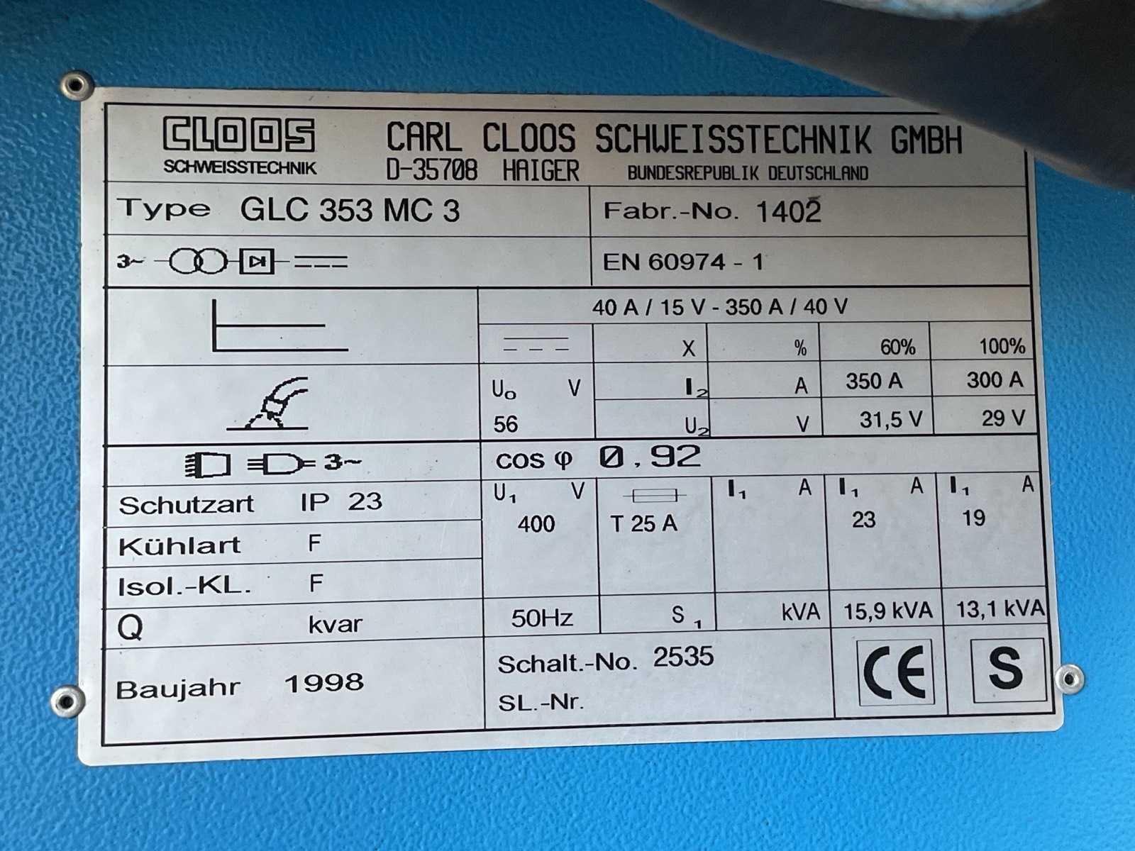 Let op! Heeft software storing Nee Merk: Cloos Type: GLC 353 MC 3 Mig type: true Ampère belasting: 350A Draadaanvoerunit: true Digitale uitlezing: true Aansluiting: 400V