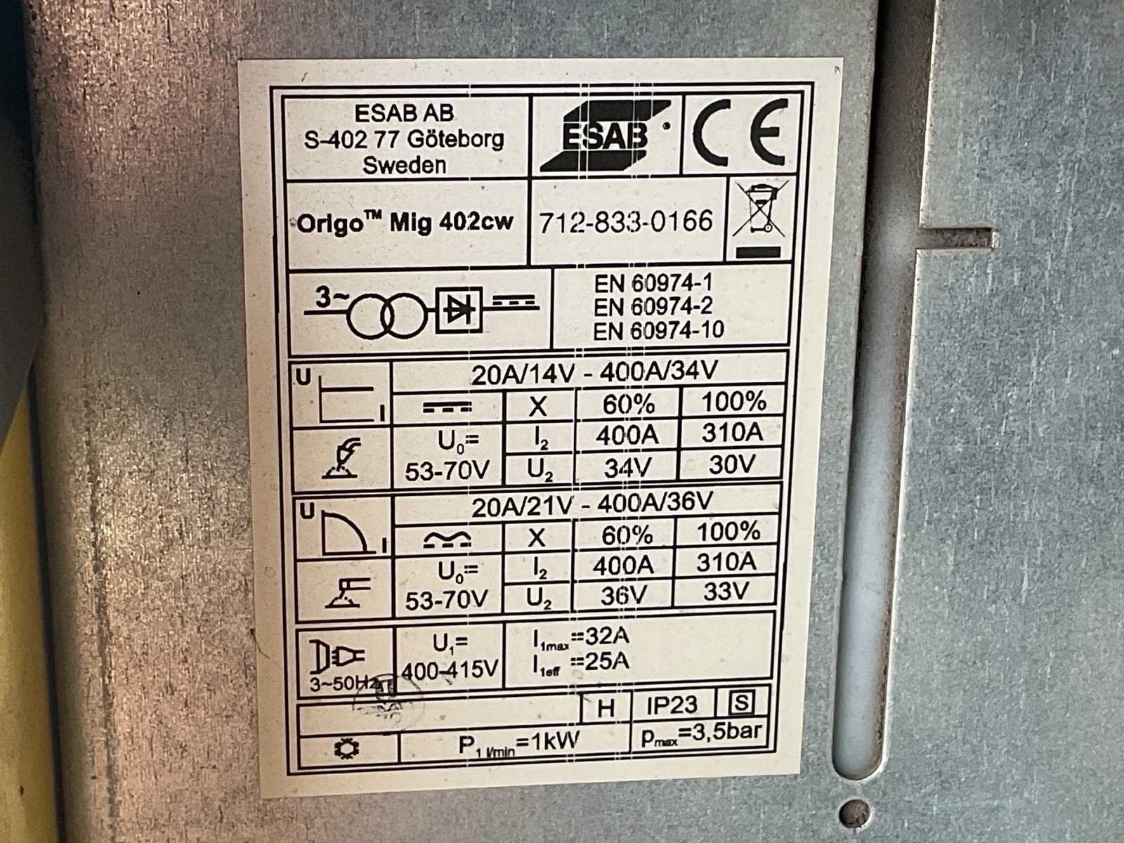 Nee Merk: Esab Type: Origo mig 402cw Mig type: true Ampère belasting: 400A Draadaanvoerunit: true Digitale uitlezing: true