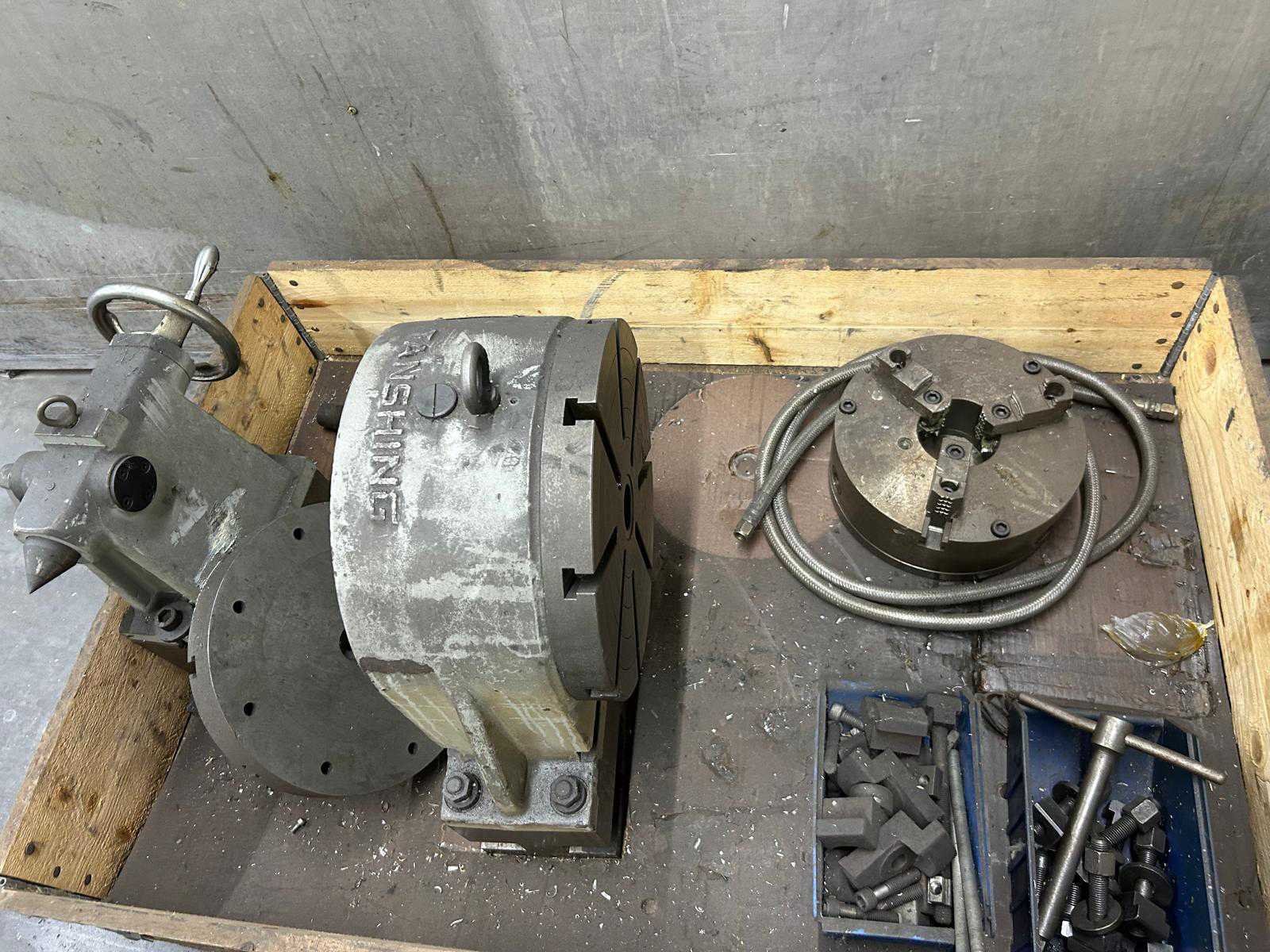 4E AS!! De machine is uitgerust met: - 4e as - doorspoelkoelmiddel - oliekoeler - chiptransporteur - Renishaw-sondesysteem No Merk: MaxMill Type: VMC-2090A Bouwjaar: 2007 Serienummer: V20-028 Verplaatsing x-as: 2000mm Verplaatsing y-as: 900mm Verplaatsing z-as: 700mm Snelheid tot n =: 10000rpm Afgelezen urenstand: 5150 CNC-besturing, merk, type: Fanuc Series 0i-MC Spanentransporteur: true Koelmiddelpomp: true Werkstuk gewicht max.: 2800kg T-gleuf opspantafelafmeting B: 970mm T-gleuf opspantafelafmeting L: 2300mm -assig: 4 Motorvermogen (kW): 18.5kW Handboek aanwezig: true Aansluiting: 400V Totale afmeting Hoogte: 3310mm Totale afmeting Breedte: 3580mm Totale afmeting L: 5630mm Machinegewicht: 20000kg