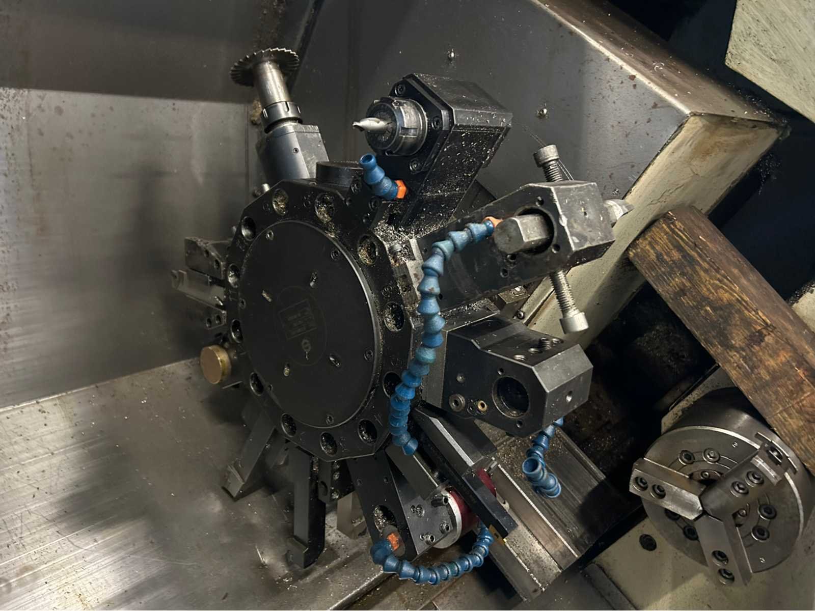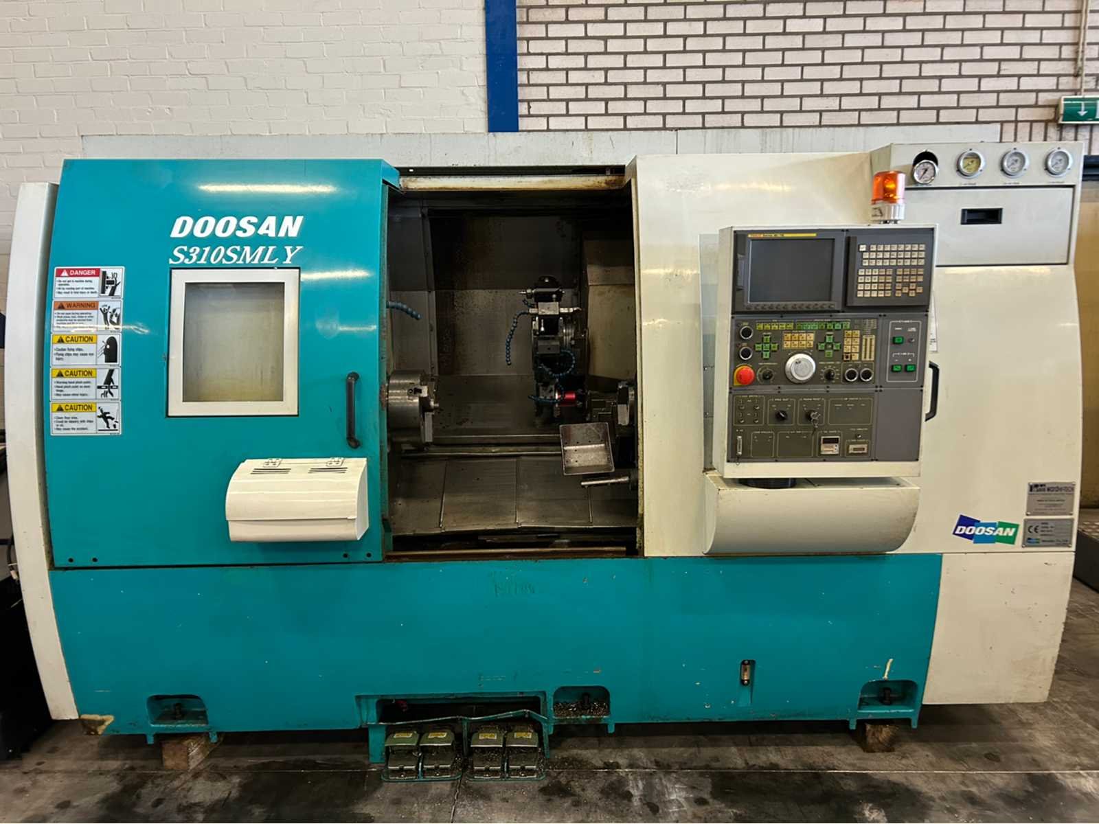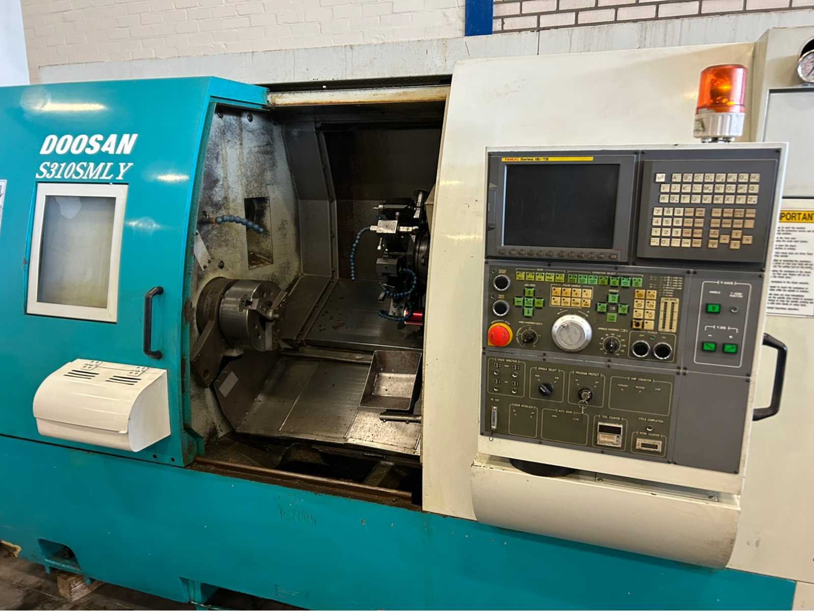 Specificaties: - X-as: 162mm - Z-as: 750 mm - Y-as: +/- 50mm - C-as: ja - B-as: 670mm - Subspilsnelheid: 4500 tpm. - subspindelmotorvermogen: 5,5 kW - Live Tooling: ja - Live gereedschapssnelheid: 3000 tpm/min - type werktuig: BMT-55 De machine is uitgerust met: - Chiptransporteur - Staafvoeder - Live Tooling - y-as - gereedschappen in de koepel inbegrepen - pallet met inbegrepen gereedschap No Merk: Doosan Type: S310SMLY Serienummer: LNH-1024 Draai: 31mm Draailengte: 750mm Holle spil Ø: 67mm Snelheid van n =: 45rpm Snelheid tot n =: 4500rpm Aantal gereedschapwisselstations: 12 Koelmiddelpomp: true Spanentransporteur: true CNC-besturing, merk, type: Fanuc Series 18i-TB Motorvermogen (kW): 15kW Aansluiting: 400V Machinegewicht: 6000kg