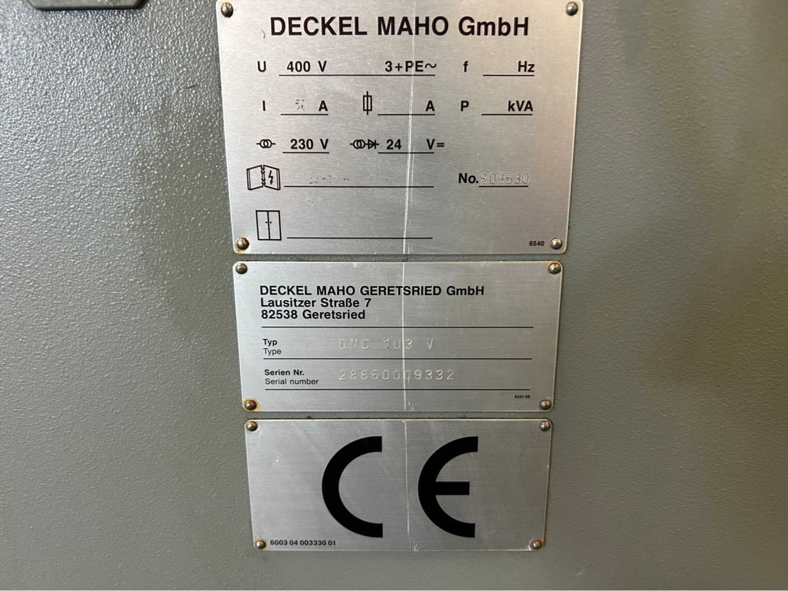 No Merk: Deckel Maho Type: DMC 103V Serienummer: 28860009332 Opname iso: 40 Verplaatsing x-as: 1000mm Verplaatsing y-as: 600mm Verplaatsing z-as: 600mm Snelheid tot n =: 8000rpm CNC-besturing, merk, type: Heidenhain TNC 426 Koelmiddelpomp: true Werkstuk gewicht max.: 800kg T-gleuf opspantafelafmeting B: 600mm T-gleuf opspantafelafmeting L: 1200mm -assig: 3 Motorvermogen (kW): 13kW Handboek aanwezig: true Aansluiting: 400V Machinegewicht: 6500kg