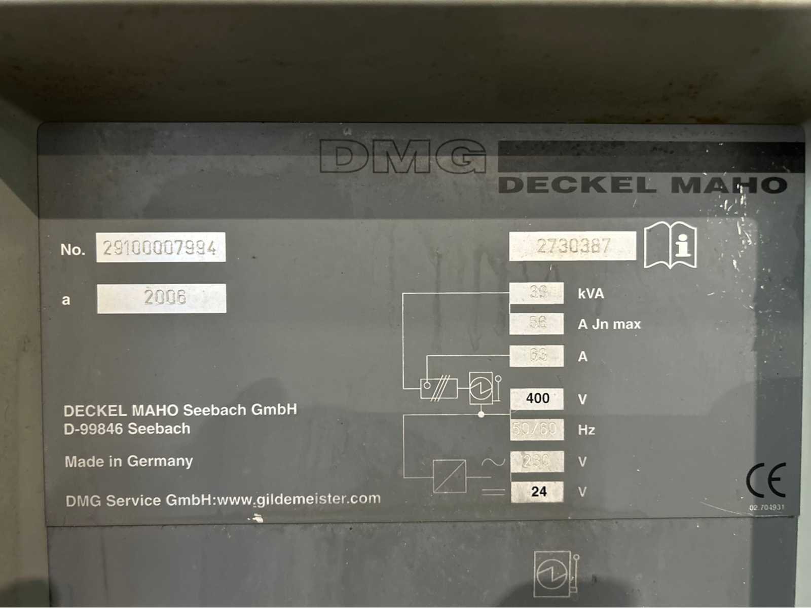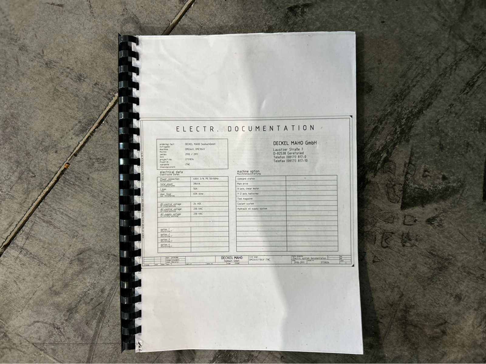 No Merk: Deckel Maho Type: DMC 64V Bouwjaar: 2006 Serienummer: 29100007994 Opname iso: SK-40 Verplaatsing x-as: 640mm Verplaatsing y-as: 600mm Verplaatsing z-as: 500mm Snelheid tot n =: 12000rpm CNC-besturing, merk, type: Heidenhain iTNC 530 Spanentransporteur: true Koelmiddelpomp: true Werkstuk gewicht max.: 600kg T-gleuf opspantafelafmeting B: 600mm T-gleuf opspantafelafmeting L: 850mm -assig: 3 Motorvermogen (kW): 18.5kW Handboek aanwezig: true Aansluiting: 400V Totale afmeting Hoogte: 2850mm Totale afmeting Breedte: 2450mm Totale afmeting L: 3456mm Machinegewicht: 6500kg