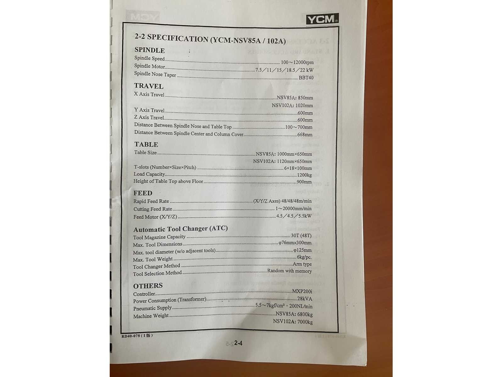 De machine is uitgerust met: - Chiptransporteur - Olieafscheider - Doorspoelkoelmiddel No Merk: YCM Type: NSV 102A Bouwjaar: 2007 Serienummer: 0089 Opname iso: BT-40 Verplaatsing x-as: 1020mm Verplaatsing y-as: 600mm Verplaatsing z-as: 600mm Snelheid van n =: 100rpm Snelheid tot n =: 12000rpm Afgelezen urenstand: 11551 CNC-besturing, merk, type: Heidenhain iTNC 530 Spanentransporteur: true Koelmiddelpomp: true Werkstuk gewicht max.: 1200kg T-gleuf opspantafelafmeting B: 650mm T-gleuf opspantafelafmeting L: 1120mm -assig: 3 Motorvermogen (kW): 22kW Handboek aanwezig: true Aansluiting: 400V Machinegewicht: 7000kg