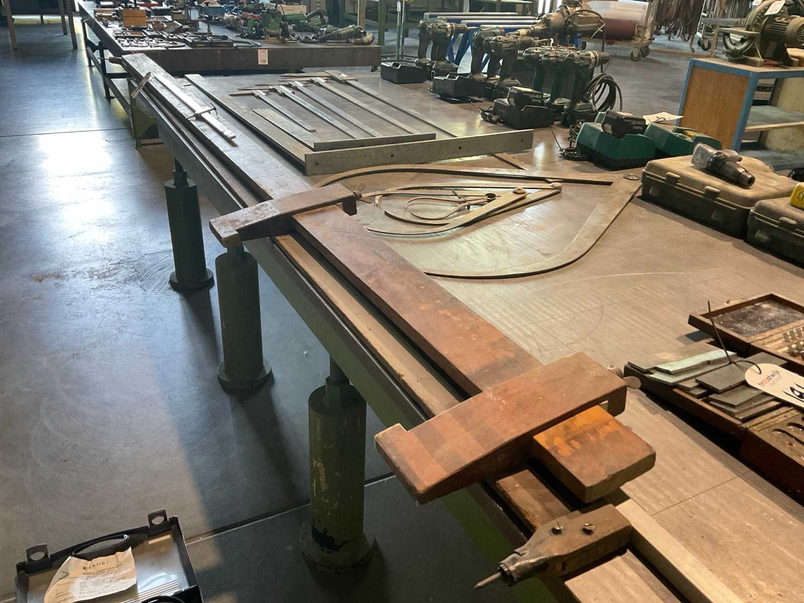 Waaronder: 5x schuifmaat van 550mm - 1500mm, 2x winkelhaak 630x400mm en 1520x75mm, 4x krompasser, balkpasser, etc Nee