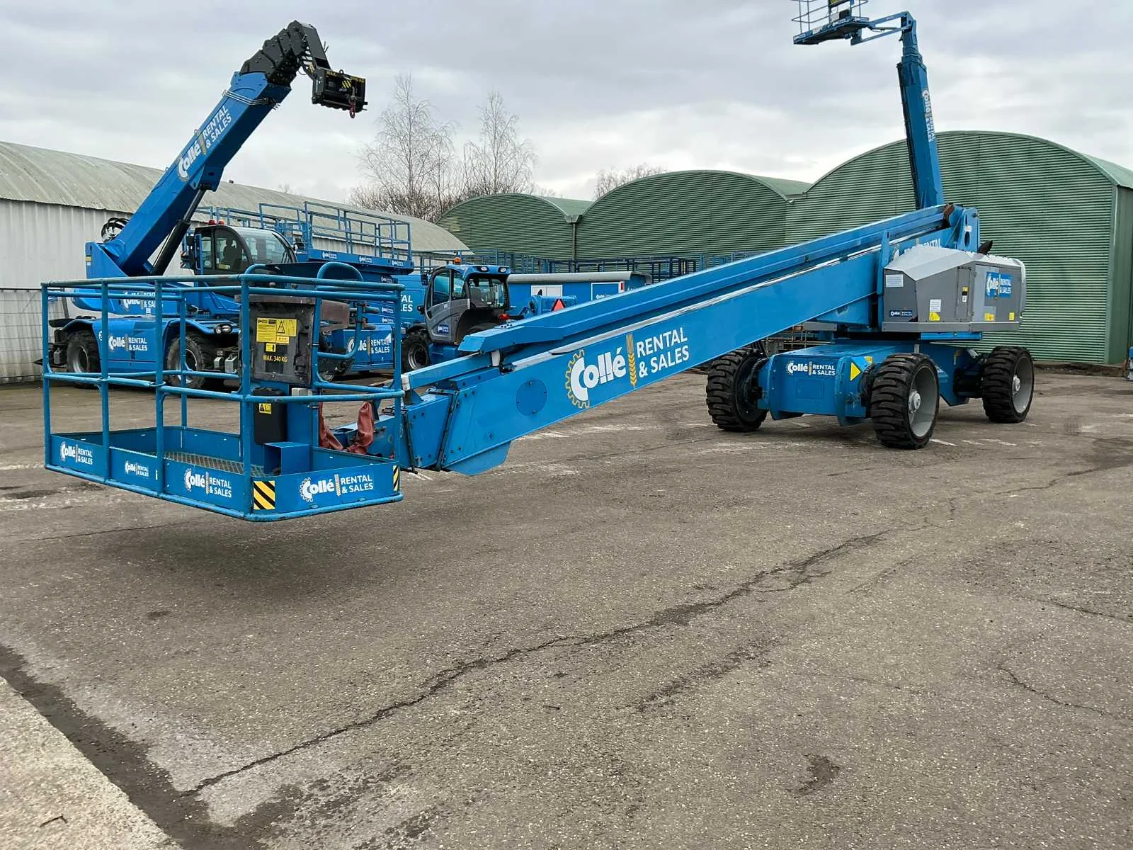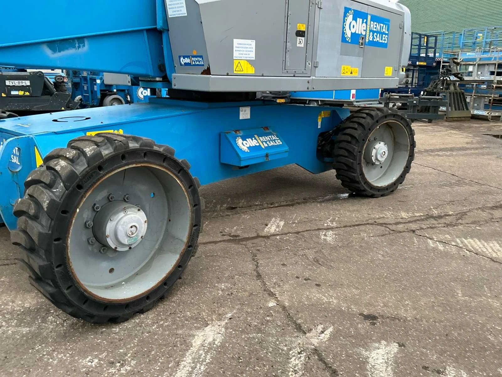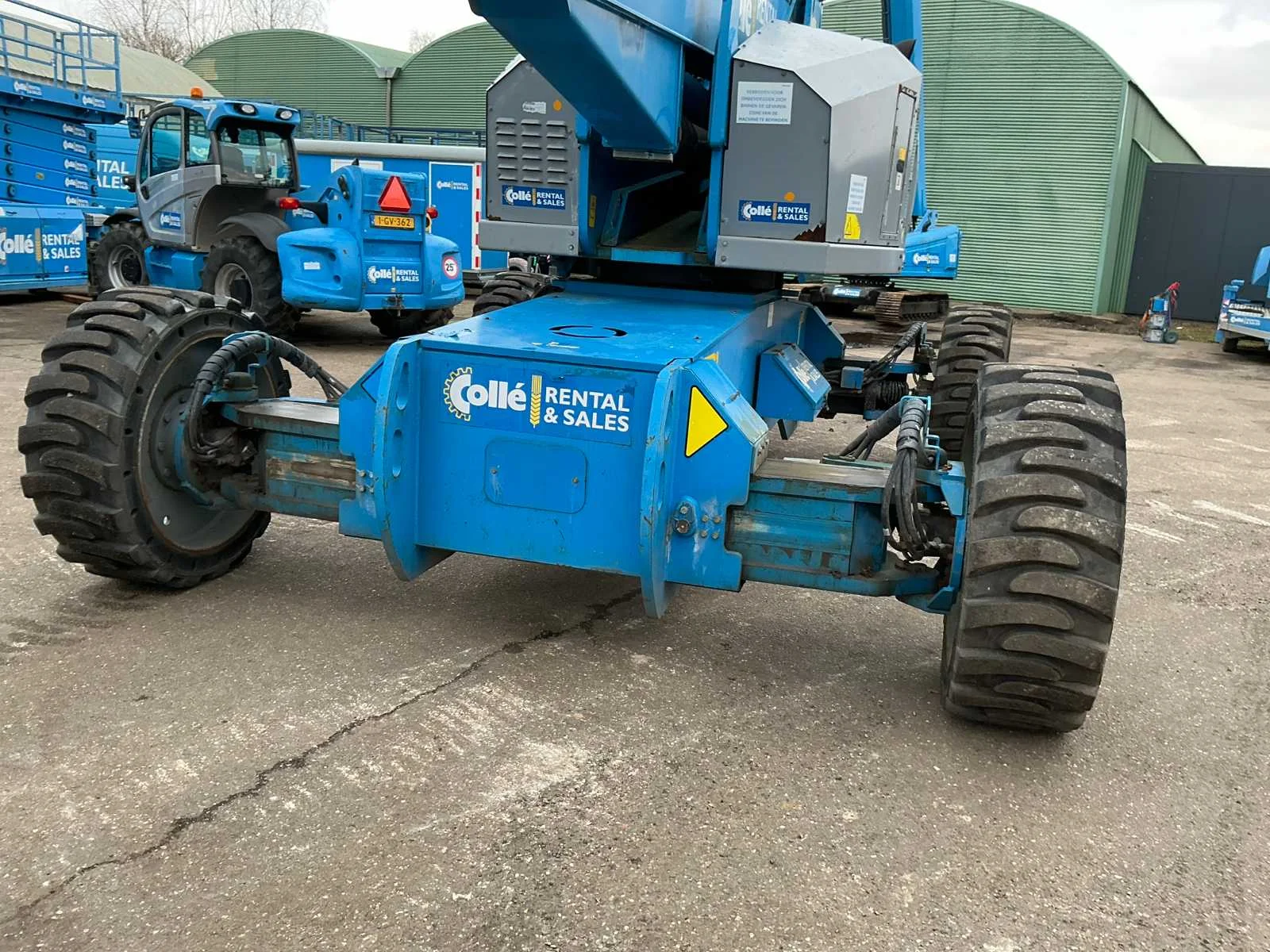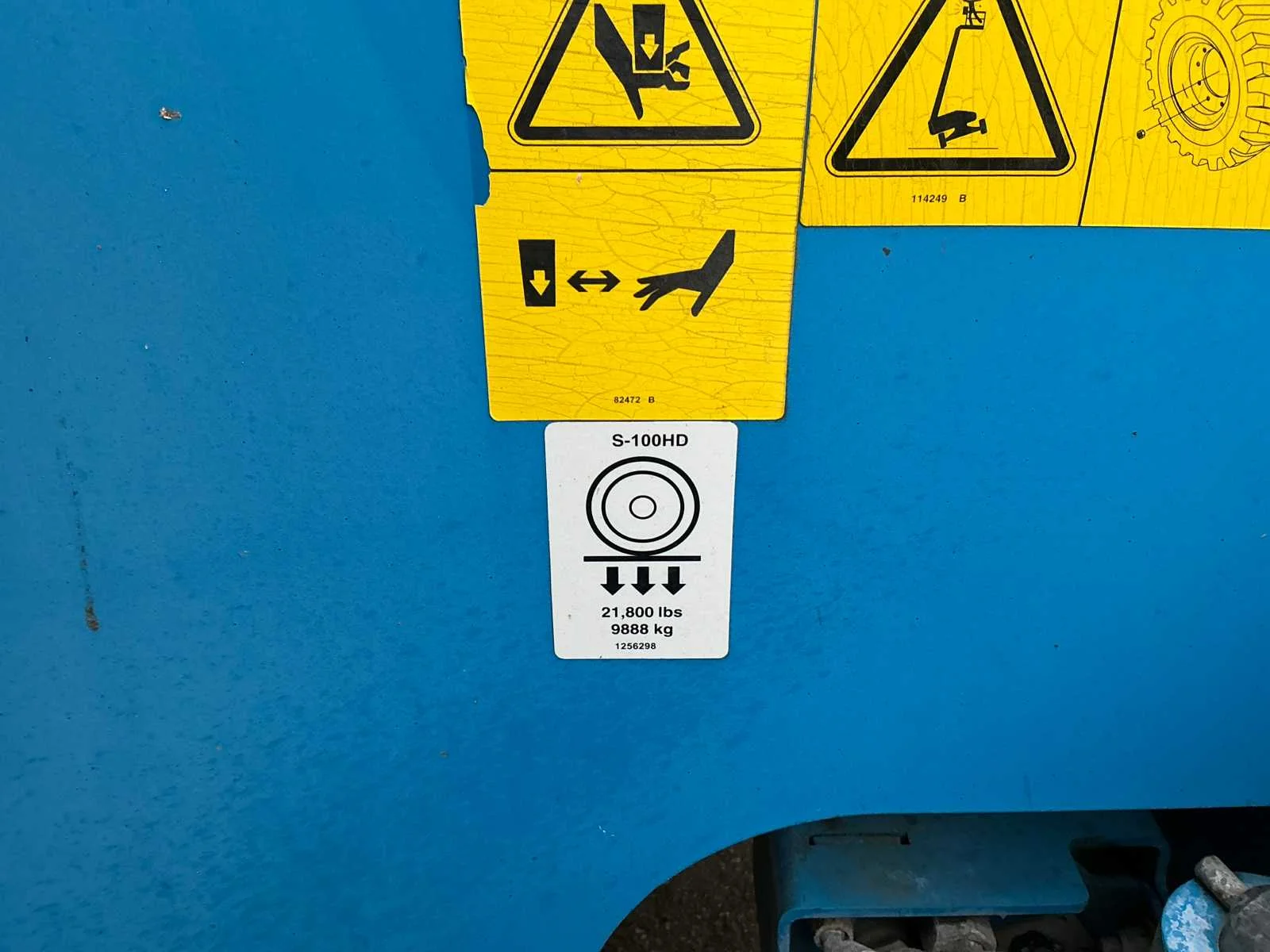 Ruwterrein; 4x4c4 aandrijving; platform vloerhoogte 30400 mm; draaicirkel 6600 mm; voorzien van 230 Volt stroom aansluiting kooi; voorzien van Deutz luchtgekoelde dieselmotor; kooibediening; wielen in breedte hydraulisch verstelbaar; working condition; Nee Merk: Genie Type: S-100HD 33 meter Bouwjaar: 2014 Serienummer: S100HD14D-203 Diesel: true Telescoop hoogwerker: true Werkhoogte: 32400mm Horizontale rijkwijdte: 22200mm Plateau afm. l: 1500mm Plateau afm. b: 750mm Platform capaciteit: 340kg Afgelezen urenstand: 814 Eigen gewicht: 18500kg Totale afmeting L: 13250mm Totale afmeting Breedte: 2500mm Totale afmeting Hoogte: 3200mm