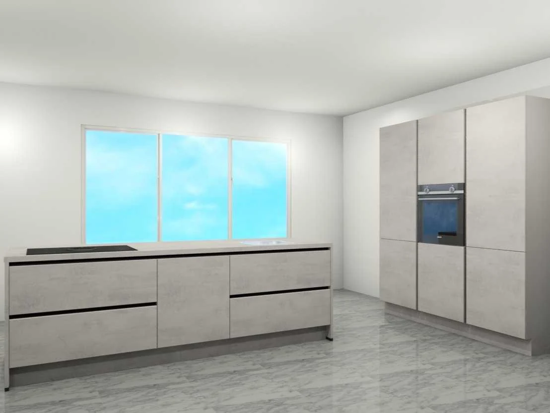 Bora GP4U InductionAir, kookveld met afzuiging, 76cm, inductie met 4 kookzones; Let op! zonder kraan, accessoires en krukken; Staat niet opgesteld in de showroom, enkel via 3D tekening; Let op! Vaatwasser deur is uit 1 stuk. Let op: ongebruikt in doos; Nee Merk: Nobilia Model: Riva Decor Beton grijs Type keukenopstelling: eiland Lengte: 185cm Breedte: 60cm Hoogte: 215cm Gootsteen: Reginox opbouw Amsterdam pure black 50 spoelbak Werkblad hoogte: 91cm Aanrechtblad: HLP Kleur 330 Decor Beton grijs Koelkast: Laurus LKS122F 122cm sleepdeur systeem koelkast Softclose: true Oven: Siemens HB510ABR1 bakoven 60cm Rvs/zwart Vaatwasser: Laurus LSV604 volledig geïntegreerd inbouw vaatwasser Lengte kookeiland: 265cm Breedte kookeiland: 90cm Hoogte kookeiland: 91cm Plintkleur: Decor Beton grijs Hoofdkleur: Decor Beton grijs Style: Modern Kleur: Decor Beton grijs