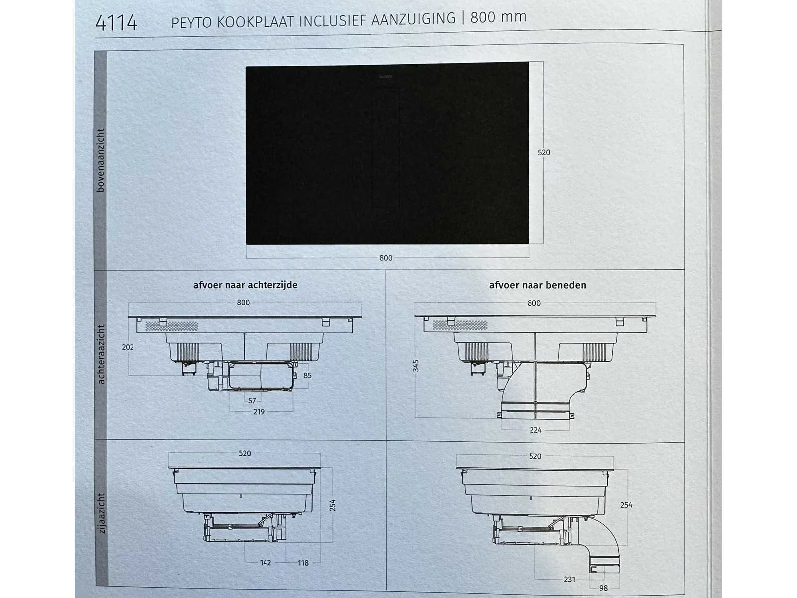 "Wave Peyto 4114.01 Inductie afzuiging" 80cm, 4-kookzones. Zonder kraan en accesoires. Let op! Staat niet opgesteld in de showroom, enkel via 3D tekening; wordt geleverd ongebruikt in doos. Nee Merk: Häcker Concept130 Model: Topsoft kristalwit mat Type keukenopstelling: Eiland opstelling Lengte: 185cm Breedte: 60cm Hoogte: 217cm Gootsteen: Reginox colorado rvs Werkblad hoogte: 91cm Aanrechtblad: Kunststof marmer antraciet Magnetron: Bosch BFL423MB1F, nis 38cm Koelkast: Bosch KIV865SE0, Nis 178cm, sleepdeur systeem, Softclose: true Oven: Bosch HBA4340B3, nis 60cm hetelucht bakoven Vaatwasser: Bosch SMV4HU800E 60cm Lengte kookeiland: 244cm Breedte kookeiland: 100cm Hoogte kookeiland: 91cm Plintkleur: kristalwit mat Hoofdkleur: TOP SOFT kristalwit direktlak mat Style: Modern