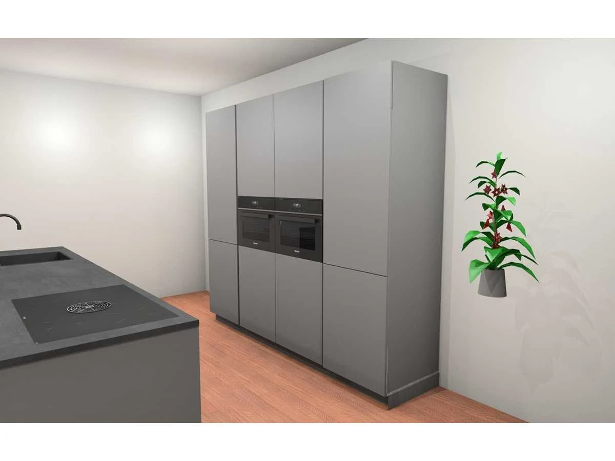 Bora Puru 76cm inductiekookplaat, 4-kookzones met afzuiging; Siemens KU20WVHF0 wijnklimaatkast 82x30cm; Zonder kraan en accessoires. Let op! Staat niet opgesteld in de showroom, enkel via 3D tekening; wordt geleverd ongebruikt in doos. Nee Merk: Häcker Concept130 Model: TopSoft parelgrijs mat Type keukenopstelling: Eiland opstelling Lengte: 245cm Breedte: 60cm Hoogte: 218cm Gootsteen: Reginox Amsterdam 50 pure black Werkblad hoogte: 92cm Aanrechtblad: Kunststof zwart geplamuurde beton repro Koelkast: Siemens KI86V5SE0 178cm koelvrieskast Softclose: true Oven: Siemens Stoomoven CS936G1B1 45cm / CB974GKB1 oven 45cm Vaatwasser: Siemens SN63H802UE volledig geïntegreerd 60cm Lengte kookeiland: 274cm Breedte kookeiland: 120cm Hoogte kookeiland: 92cm Plintkleur: parelgrijs mat Hoofdkleur: parelgrijs mat Style: Modern Kleur: parelgrijs mat