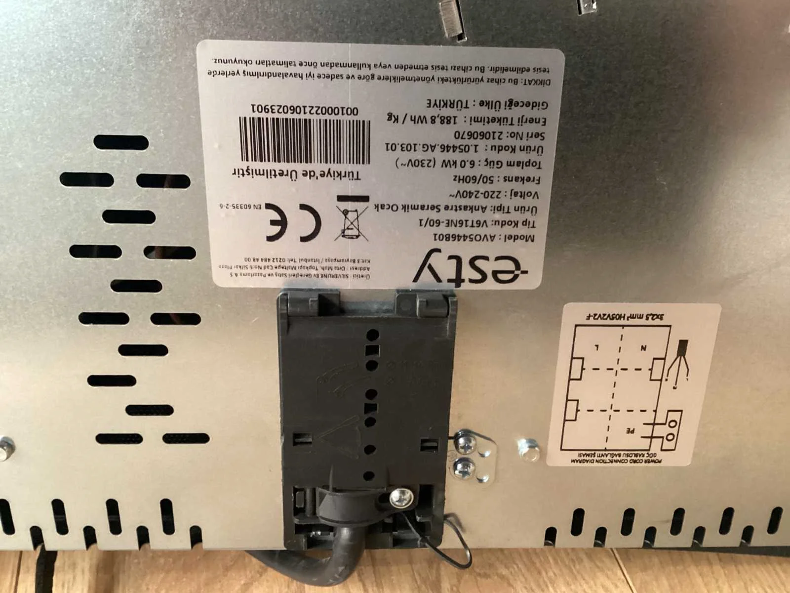 Dit betreft een gebruikte kookplaat. Nee Merk: Esty Model: AVO5446B01 Product type: Keramisch kookplaat Lengte: 60cm