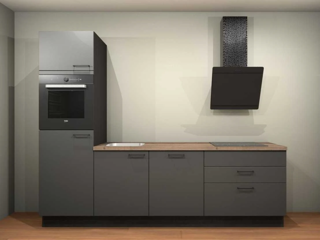 Kookplaat: Beko HII64200SMT Inductie kookplaat 60cm 4-zone zwartglas; Let op! Excl. Kraan/Accessoires. Let op: Staat niet opgesteld in de showroom, enkel 3D tekeningen. Wordt geleverd ongebruikt in doos. Nee Merk: Nobilia Model: Laser Vulkaangrijsmat Type keukenopstelling: Recht Lengte: 270cm Breedte: 60cm Hoogte: 216cm Gootsteen: Reginox Colorado RVS spoelbak Werkblad hoogte: 91cm Aanrechtblad: HPL Decor eiken Havanna (097) Koelkast: Beko B1904N 88cm sleepdeur systeem Softclose: true Oven: Beko BBIM17400BpSE 60cm zwart Afzuigkap: Beko BHCA66741BBB 60cm zwart schuin Vaatwasser: Beko BDIN14320BI 60cm volledig integreerd Plintkleur: Vulkaangrijs mat Hoofdkleur: Vulkaangrijs mat Style: Modern Kleur: Vulkaangrijs mat