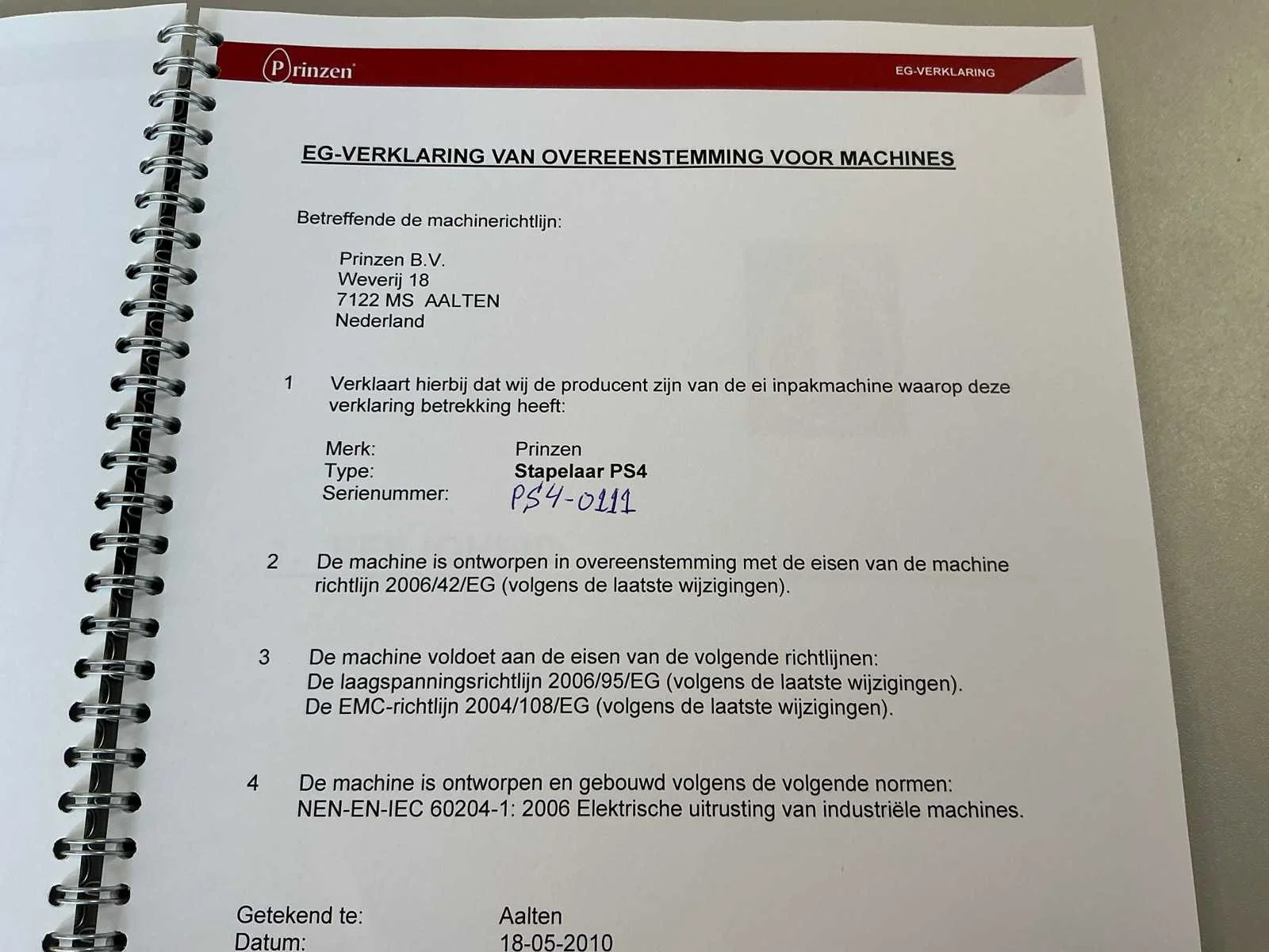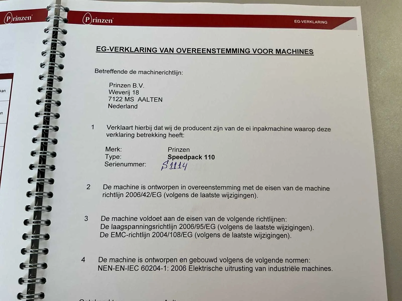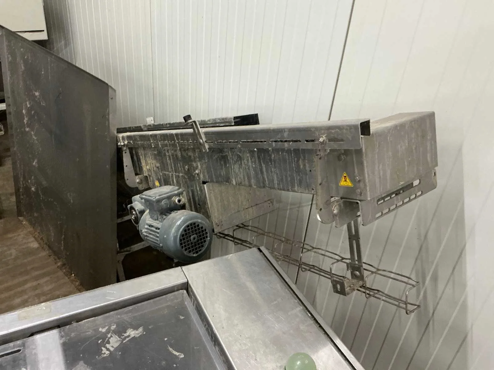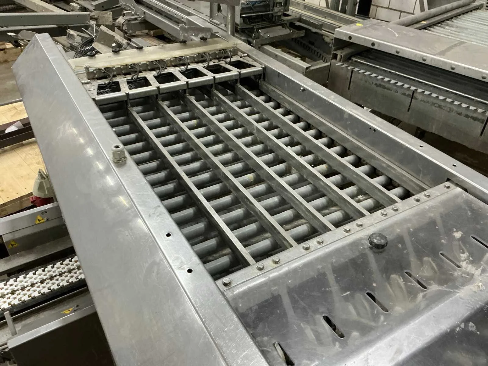 Urenstand: 22662, Capaciteit: 40.000 eieren per uur, Tray-type: 30-cell trays (plastic of karton), Ei-overdracht (handling, 3 overdrachtspunten, Voorzien van touchscreen-interface, Materiaal & onderhoud: RVS uitvoering, reinigbaar met water, Afmetingen & installatie: Hoogte (minimum) voor 5 lagen (5H): circa 2.770 mm, Hoogte voor 6 lagen (6H): circa 3.080 mm, Breedte (dwars op stapelrichting): circa 2.810 mm, Lengte (in de stapelrichting): circa 2.380 mm, voorzien van 3 transport / aanvoerbanden, Stapelaar PS4, pallet Loader V2, Machine is werkend en professioneel gedemonteerd en kan geladen worden bij de koper. Nee Merk: Prinzen Type: Speedpack 110 Bouwjaar: 2013 Serienummer: 172958 Aansluiting: 400V Totale afmeting L: 7600mm Totale afmeting Breedte: 2700mm
