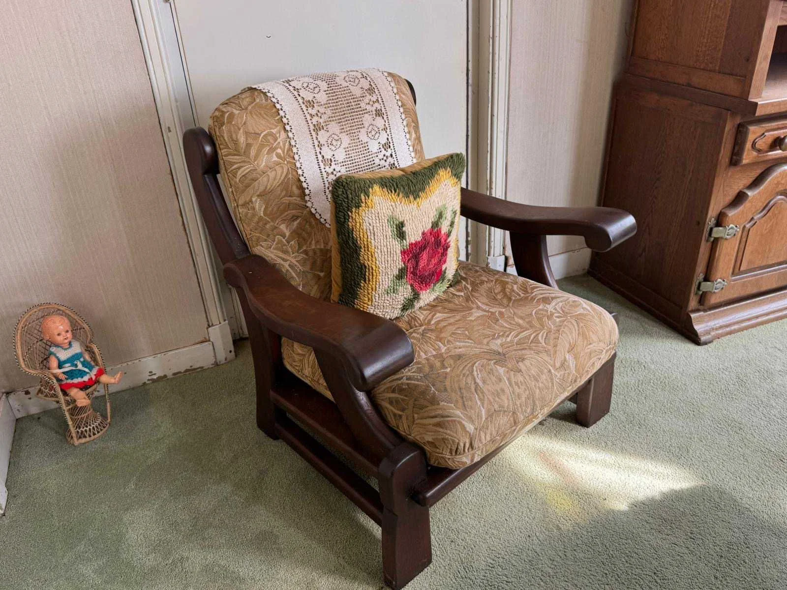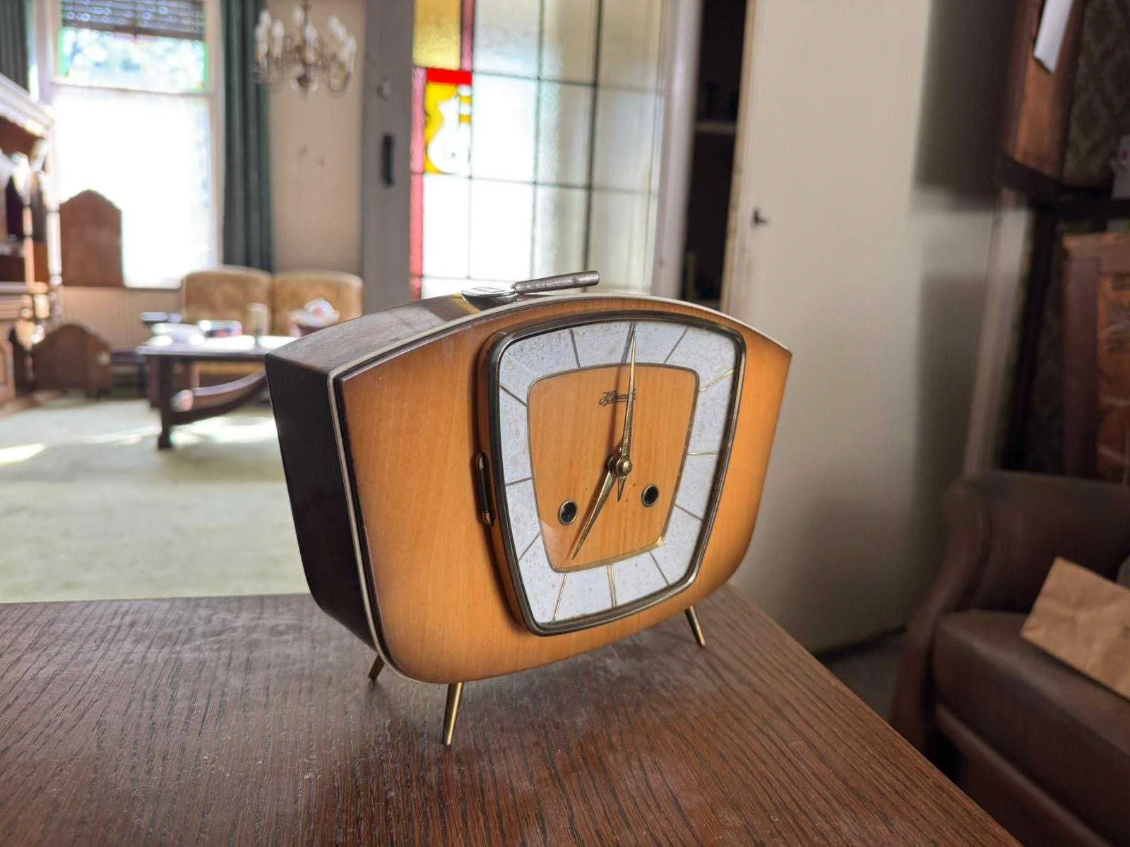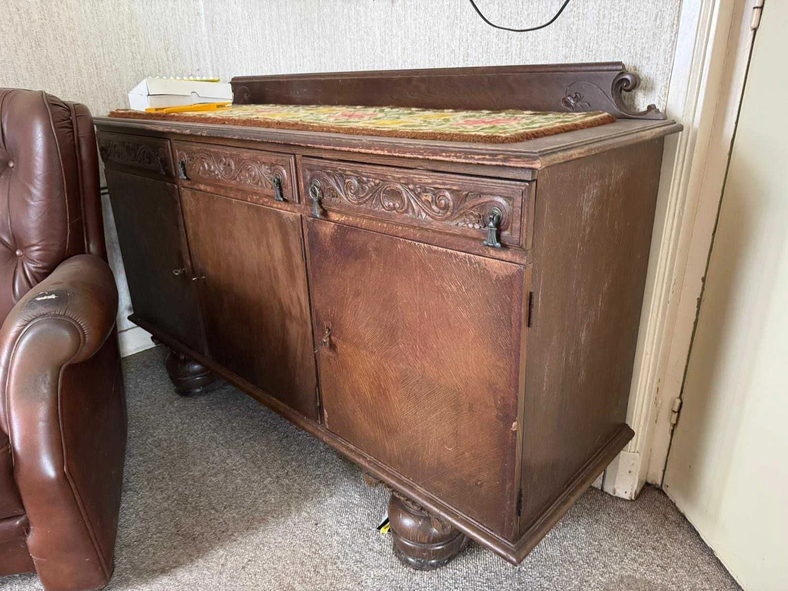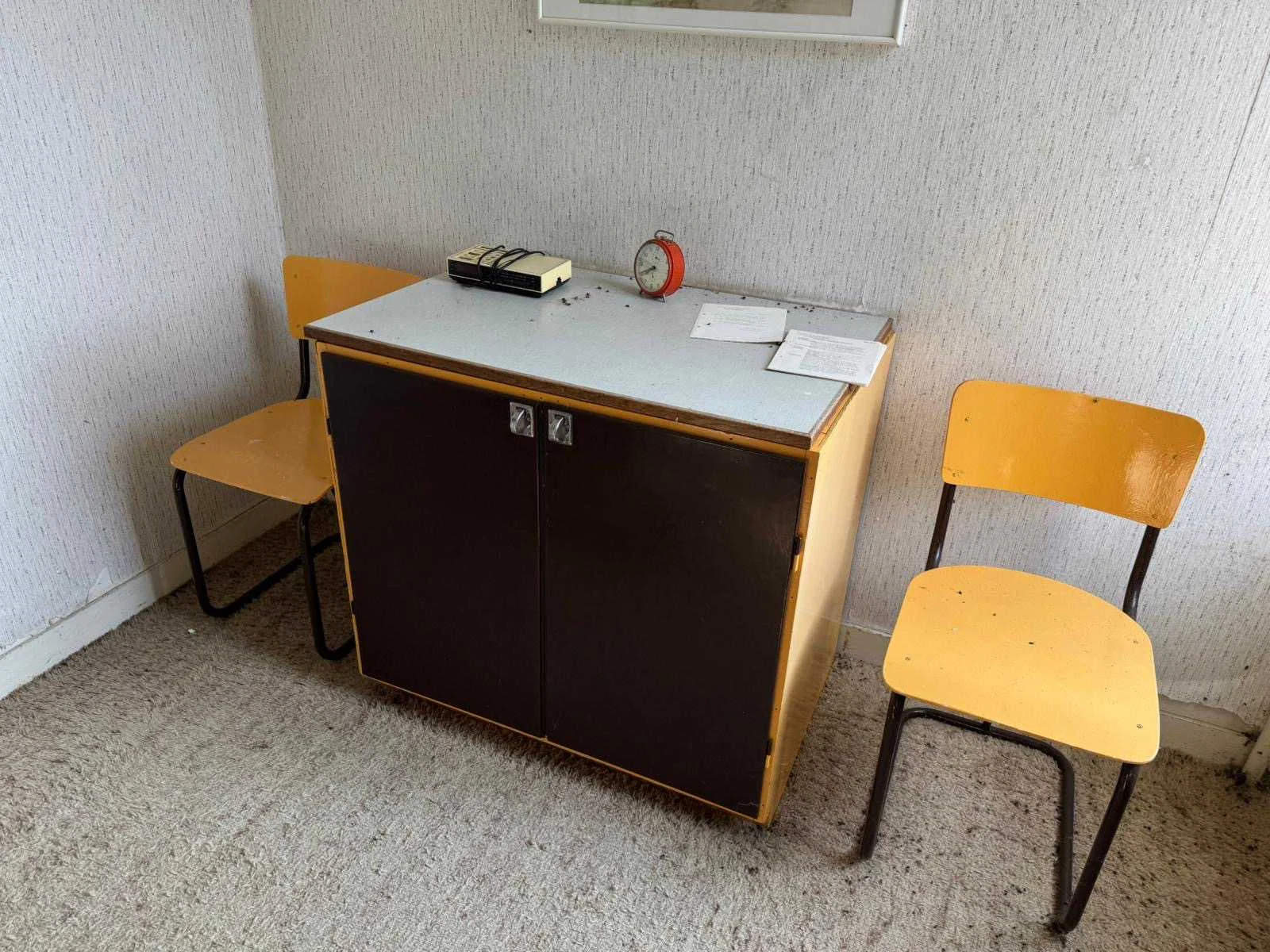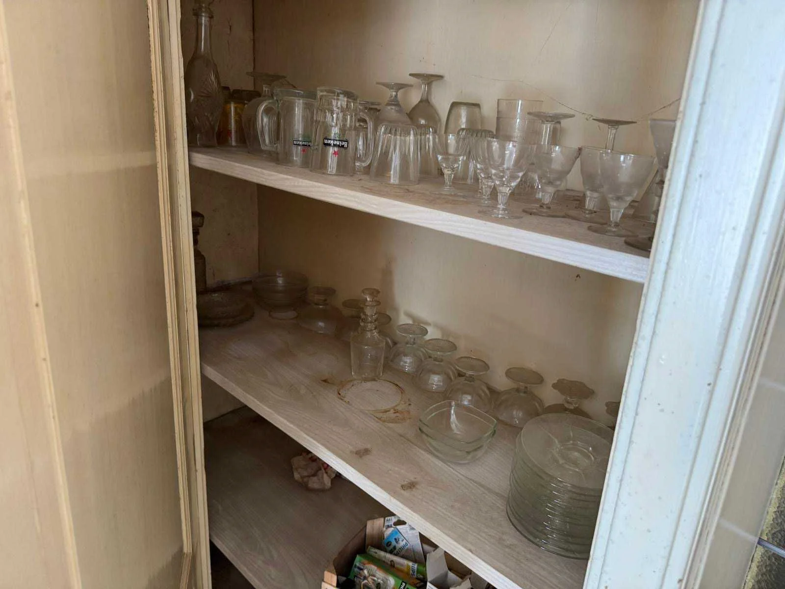 Waar onder: Keukenruimte (kachel, tafel stoelen, keukenapparatuur, pannen, antieke klok); hal (kapstok/kast, hoge stoel, kast, hanglamp); woonkamer (3-zits bank, 2x fauteuils, salontafel, 2x houten kast, bijzettafels, hanglamp); eetkamer (eettafel, stoelen, fauteuil, hanglamp, servieskast met servies); overloop (stoelen, heren en vrouwen kleding, kachel, 5x houten kast met inhoud, tafel, stoelen); 3 slaapkamers (3x bed, kasten, wanddecoratie), Nee