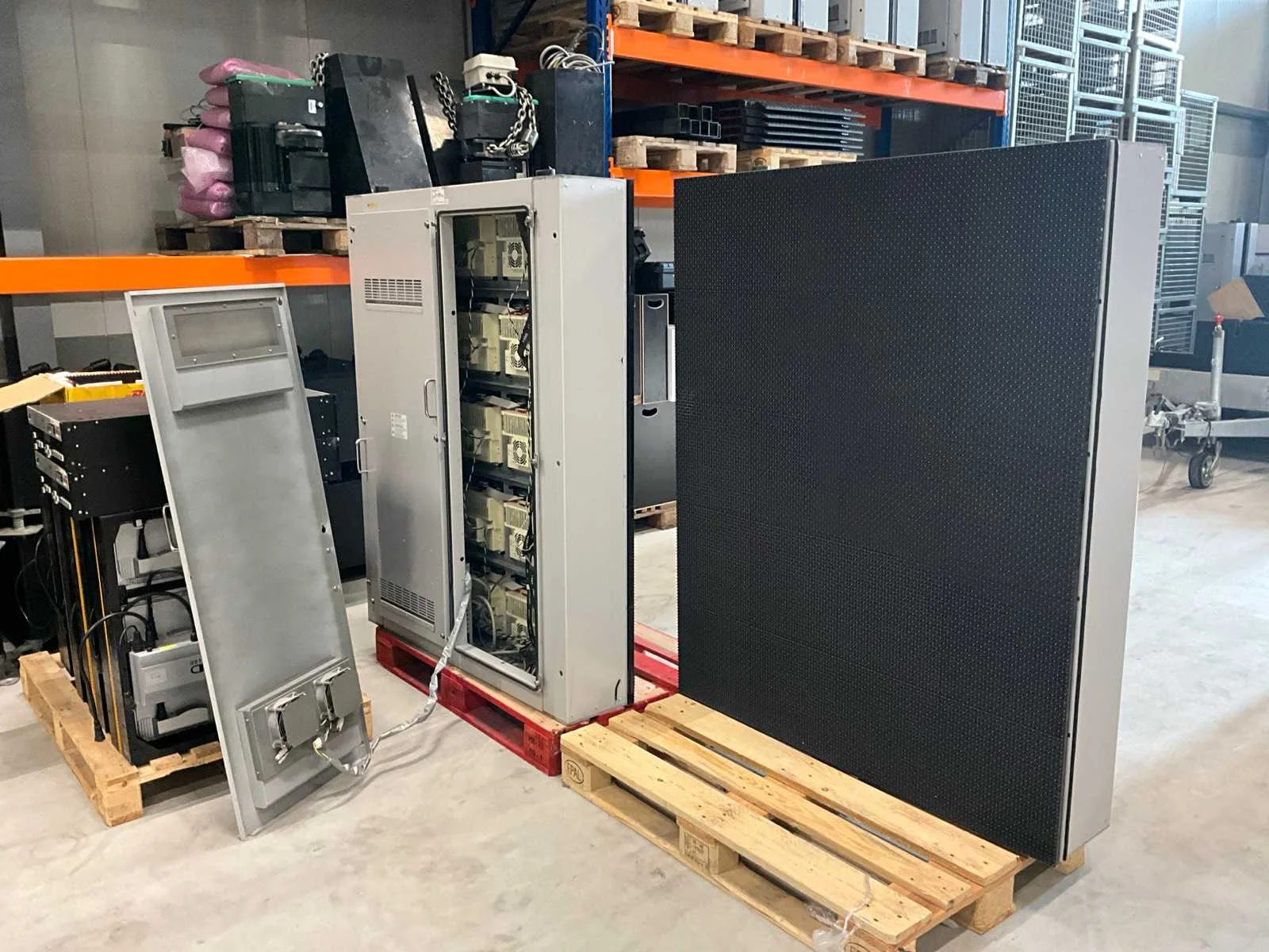 Betreft: 80 panelen met diverse afmetingen: Er kan 2 x een scherm van 1184 x 608 cm worden gemaakt (BxH) 6 x 160x160cm 2 x 128x160cm 22 x 128x128cm 50 x 160x128cm 5 x Processor XDC 4000 2 x DTU (Data Processing Unit) Gebruikt als scorebord/stadionscherm. Werkend gedemonteerd uit stadion! Technische staat in orde! Inclusief diverse onderdelen Nee Merk: Mitsubishi Type: DIA-P10QWP Pixel pitch: 20 Outdoor: true