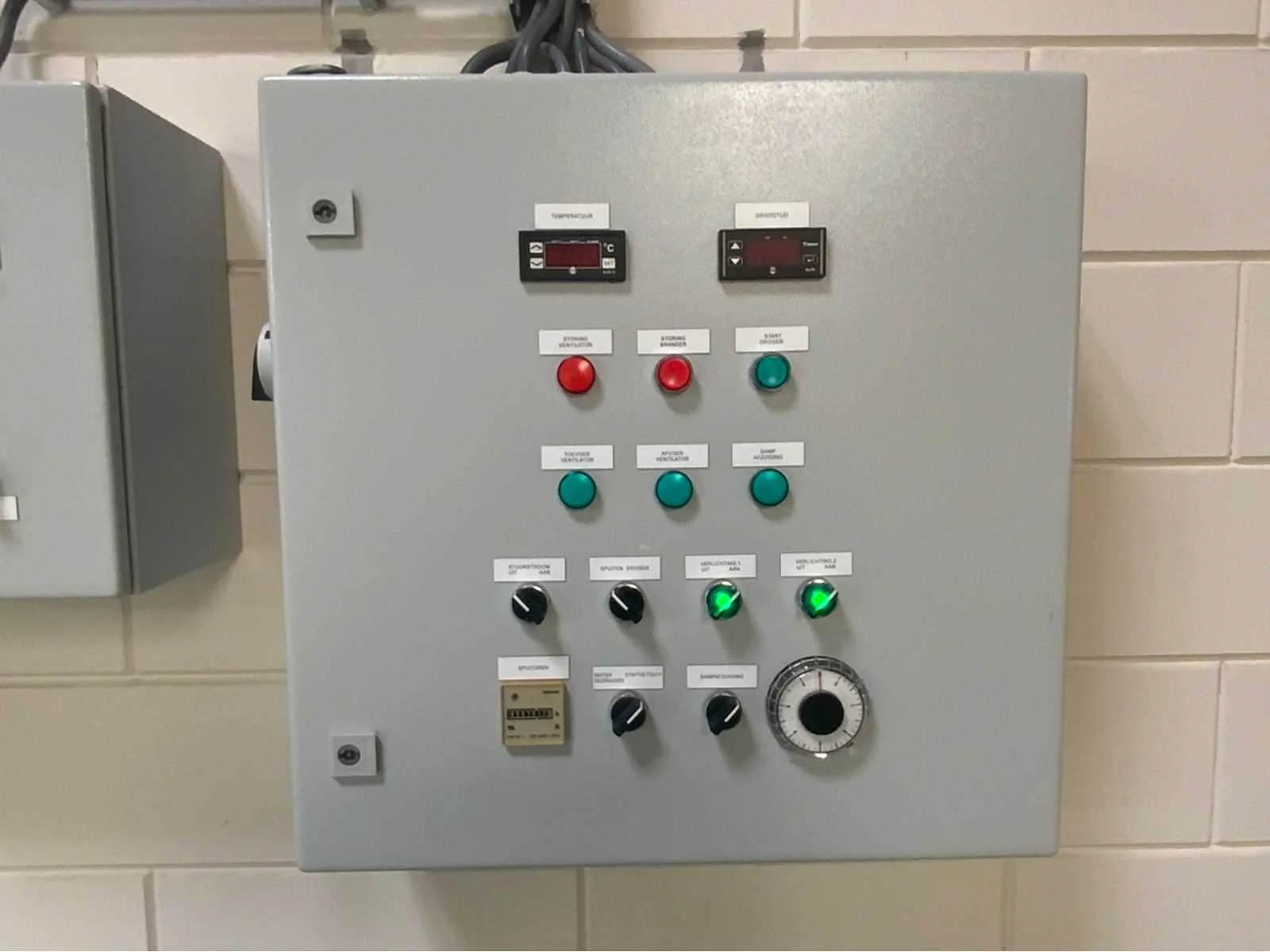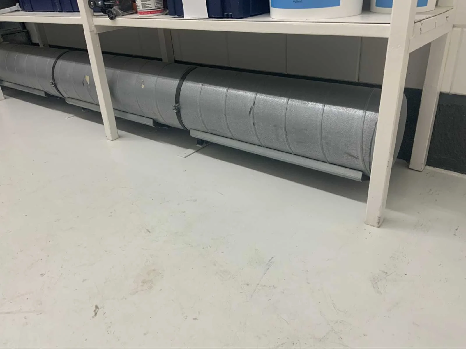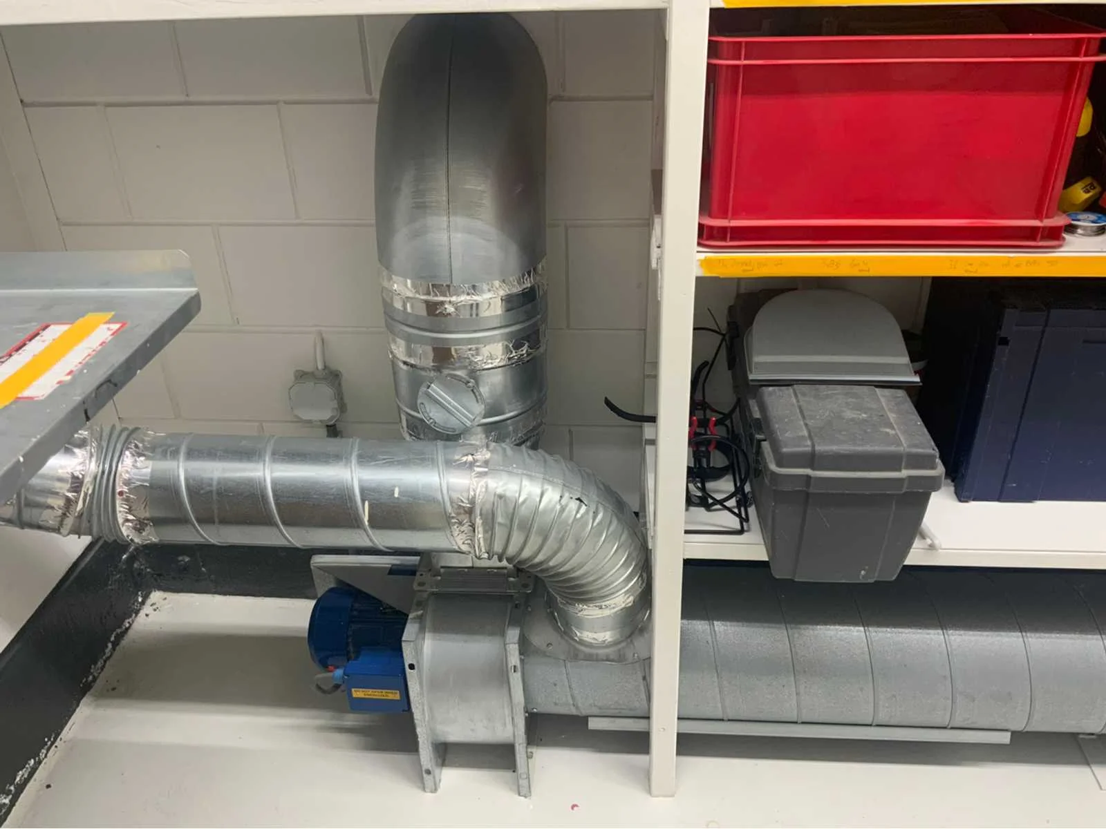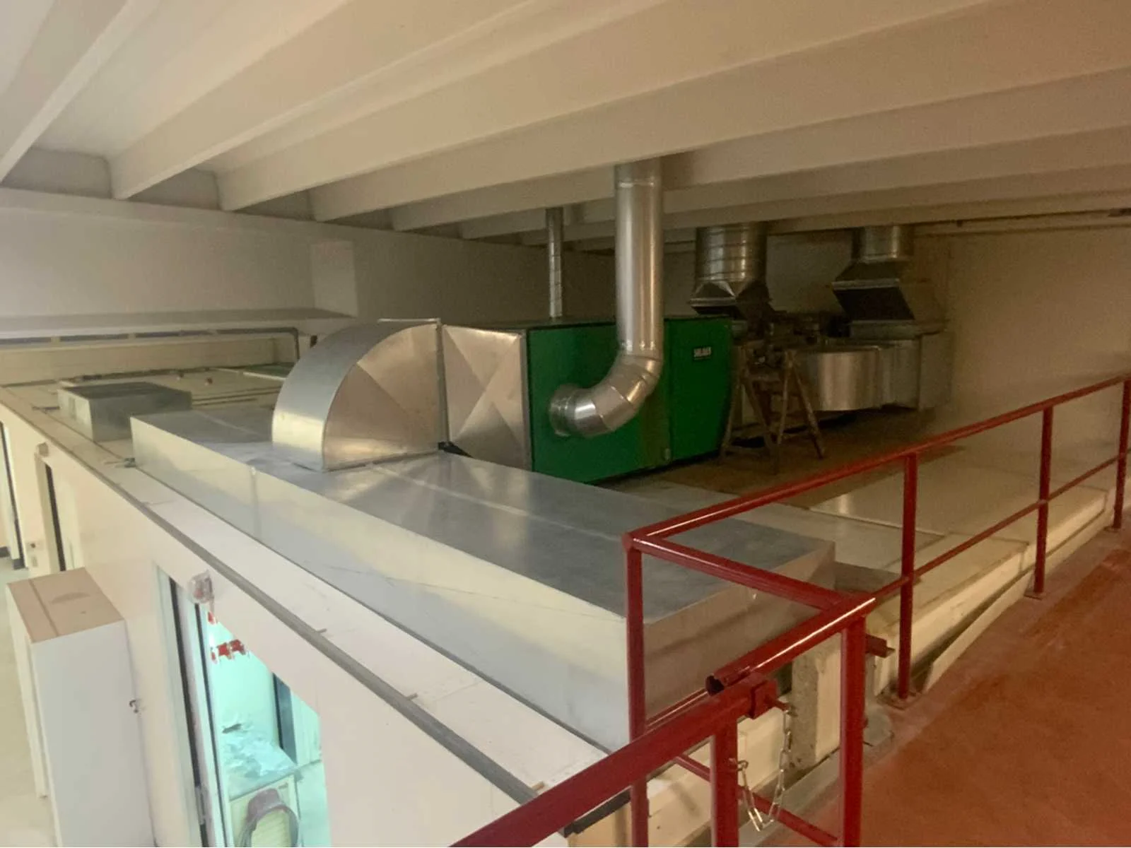 Prefab spuitruimte met 2 droogruimtes gekoppeld. Bestaande uit staal constructie met plaatstaal panelen (50mm gevuld met steenwol). Voorwanden en tussenwanden voorzien van schuifdeuren (247x296cm) Achterwand en zijwanden zijn bouwkunding en blijven achter. Soloan 1032 Afzuigwand 300x314cm, 110Kw luchttoevoer/verwarmingsunit gasgestookt, dampafzuiging in middelste droogruimte, afzonderlijke Soloan DDE dampafzuiging ten behoeve van verfaanmaakruimte, Ruimte is voorzien van Soloan S7 railsysteem met 35 kozijnbalkwagens (maximale last 250kg per rol). Overal ruim voldoende verlichting (IP54 beschermd). Alle aan- en afvoer kanalen horen bij het kavel behalve de dakdoorvoeren. Voorzien van bedieningspaneel TR-SD, voorfilter/kleppensectie type K600 (benodigd voor watergedragen spuiten) voorzien van Soloan S4000 Dampafzuiginstallatie. Spuituren: 619 uur. Nee Merk: Soloan Bouwjaar: 2004 Binnen afmeting l: 18000cm Afzuiginstallatie: true Aansluiting: 400V Afmeting l: 18000mm Afmeting b: 6000mm Afmeting h: 3100mm