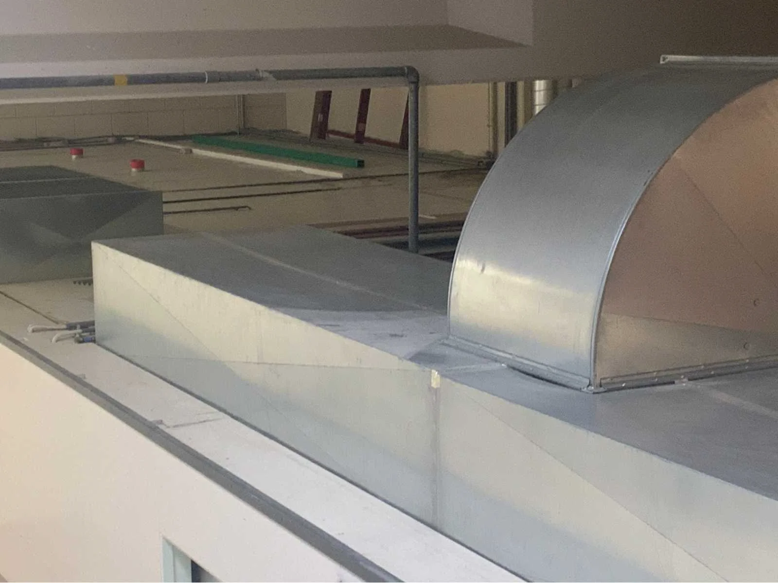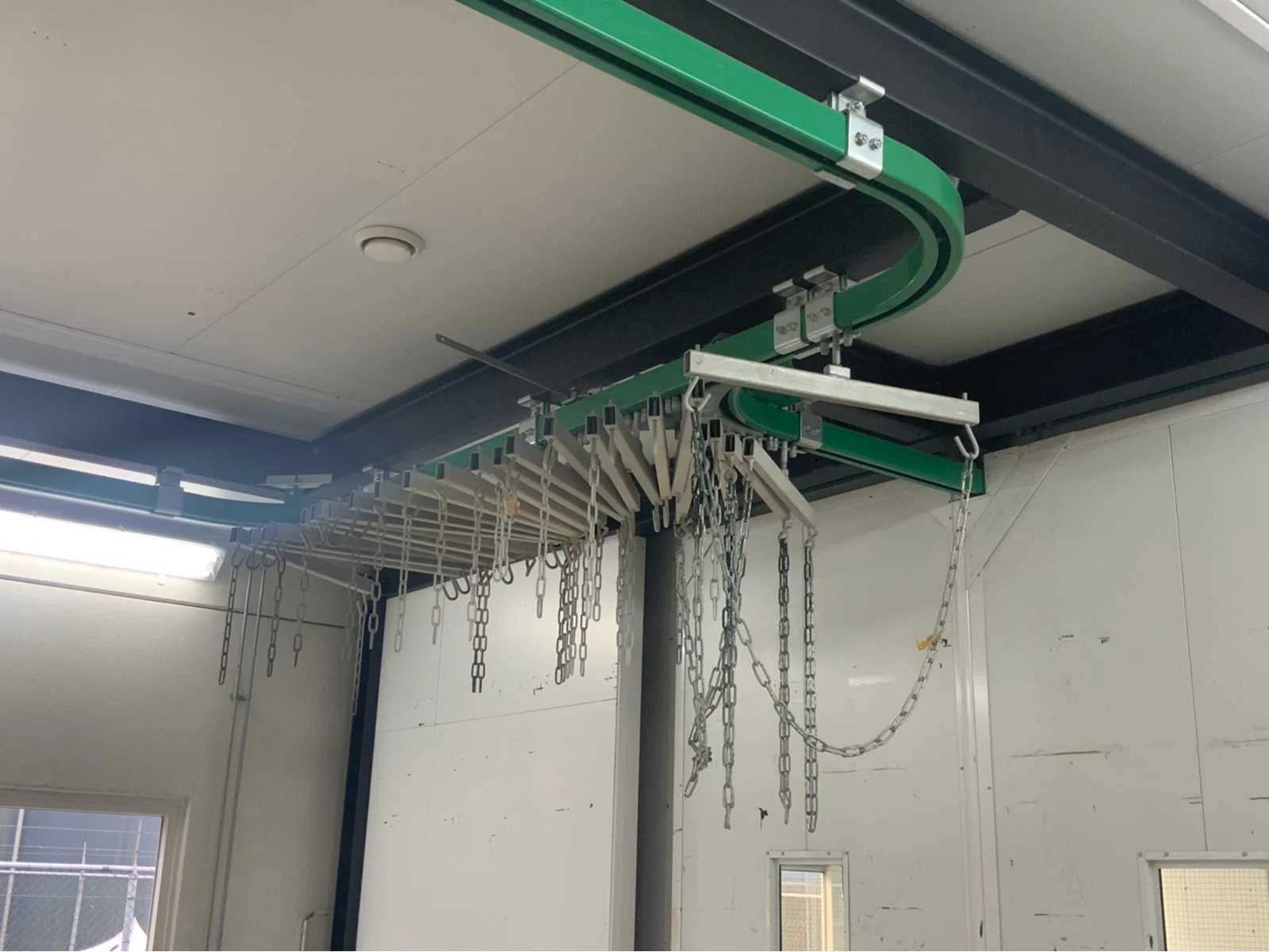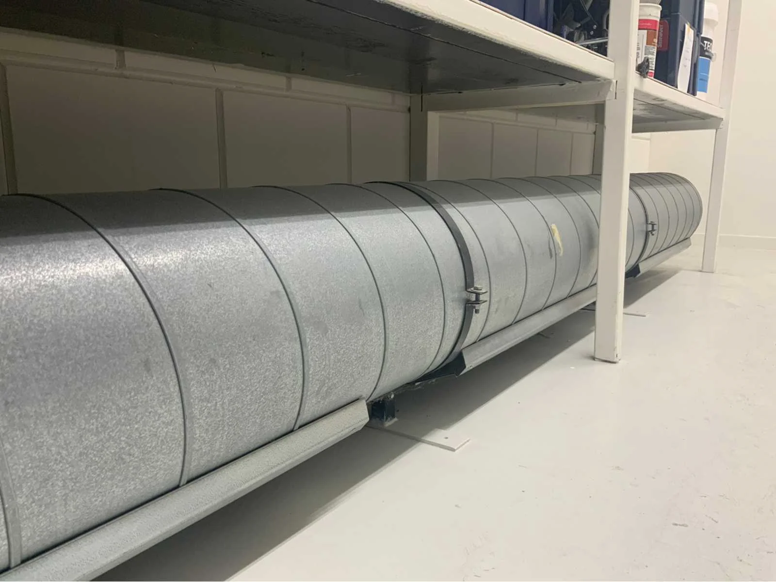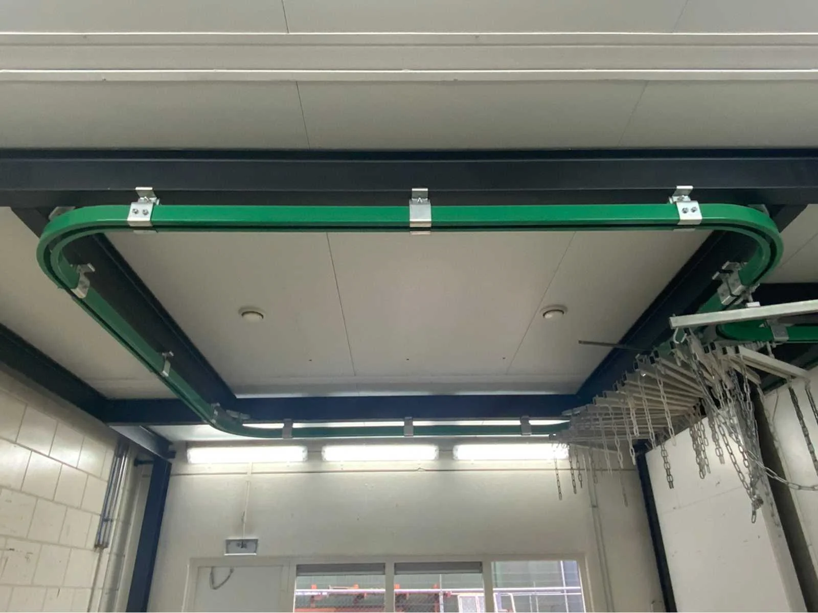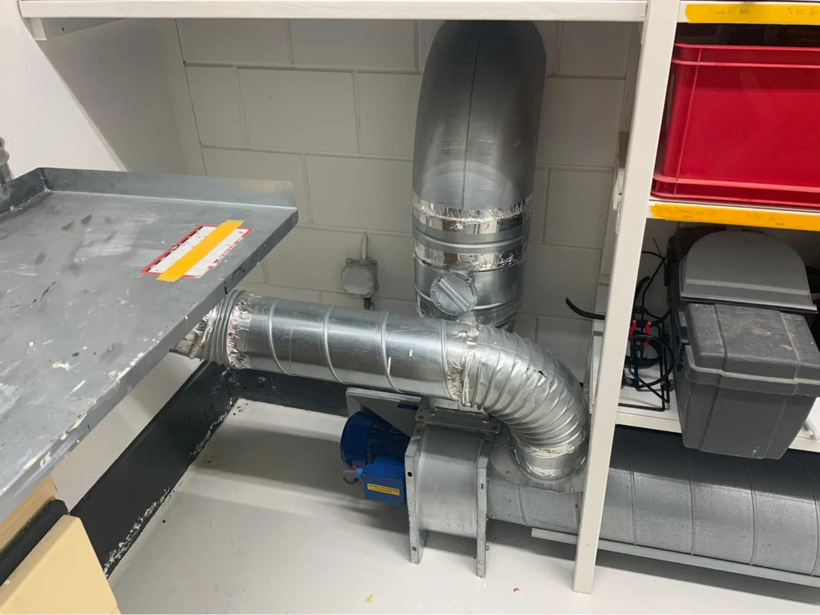 Prefab spuitruimte met 2 droogruimtes gekoppeld. Bestaande uit staal constructie met plaatstaal panelen (50mm gevuld met steenwol). Voorwanden en tussenwanden voorzien van schuifdeuren (247x296cm) Achterwand en zijwanden zijn bouwkunding en blijven achter. Soloan 1032 Afzuigwand 300x314cm, 110Kw luchttoevoer/verwarmingsunit gasgestookt, dampafzuiging in middelste droogruimte, afzonderlijke Soloan DDE dampafzuiging ten behoeve van verfaanmaakruimte, Ruimte is voorzien van Soloan S7 railsysteem met 35 kozijnbalkwagens (maximale last 250kg per rol). Overal ruim voldoende verlichting (IP54 beschermd). Alle aan- en afvoer kanalen horen bij het kavel behalve de dakdoorvoeren. Voorzien van bedieningspaneel TR-SD, voorfilter/kleppensectie type K600 (benodigd voor watergedragen spuiten) voorzien van Soloan S4000 Dampafzuiginstallatie. Spuituren: 619 uur. Nee Merk: Soloan Bouwjaar: 2004 Binnen afmeting l: 18000cm Afzuiginstallatie: true Aansluiting: 400V Afmeting l: 18000mm Afmeting b: 6000mm Afmeting h: 3100mm