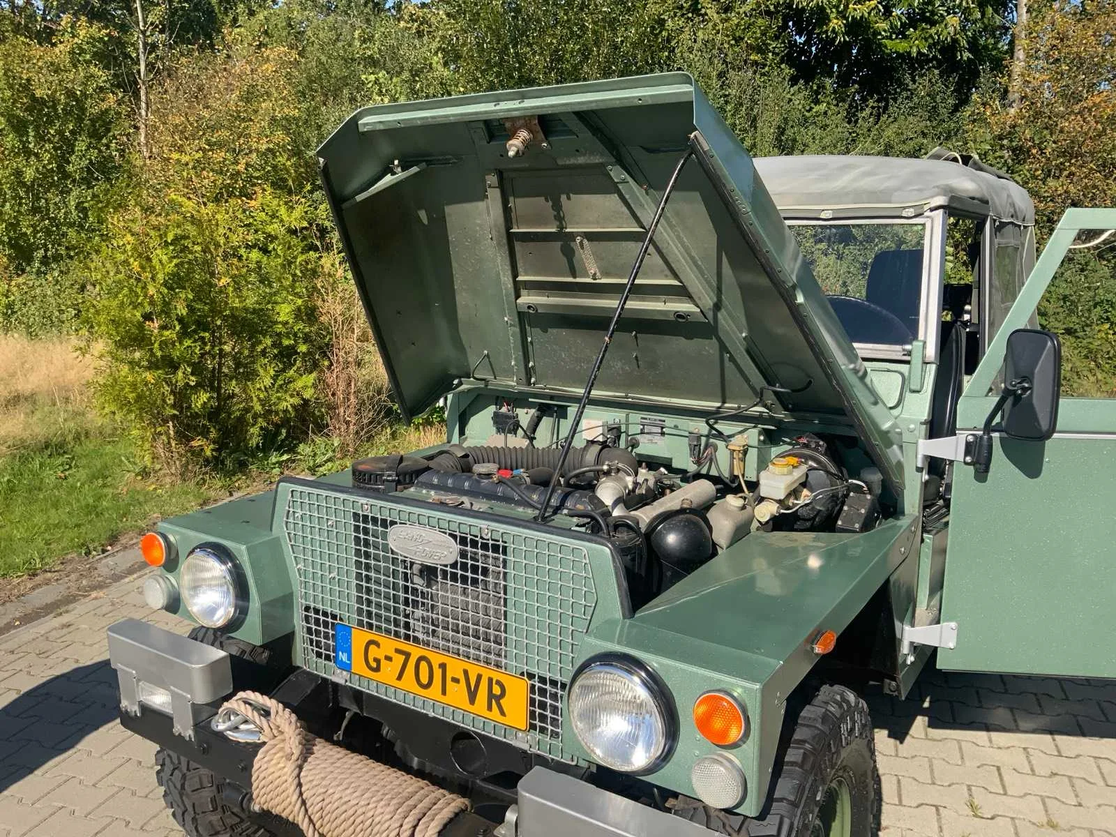Voertuig verkeerd in goede garage onderhouden staat * voorzien van 2 tanks onder de voorstoelen * voorzien van diverse reserveonderdelen * rondom voorzien van exmoor * voorzien van originele militaire kap * compleet Body off gerestaureerd (documentatie op DVD hiervan aanwezig) Nee Kenteken: G-701-VR Merk: Land rover Type: Lightweight Bouwjaar: 1982 Afgelezen kilometerstand: 58331km Cilinderinhoud: 2236cc Vermogen (kW): 46kW Brandstof: diesel Chassisnummer: SALLBBAG2AA178056 NAP status: Geen oordeel Datum eerste toelating: 1982-06-30 Datum eerste toelating (NL): 2019-12-09 APK vervaldatum: 2026-12-05 Vermogen (pk): 63hp Aandrijving: RWD / AWD Aantal zitplaatsen: 4 Maximaal trekgewicht ongeremd: 750kg Maximaal trekgewicht geremd: 3500kg Kleur: groen Transmissie: Handgeschakeld Accessoires - checkbox: 24V - 12V aansluiting * 4 zitplaatsen* Bull bar * trekhaak * leder bekleed Stuurwiel: Links Emissieklasse: 0 Aantal deuren: 3 Aantal sleutels: 2 Ledig gewicht: 1470kg Velgmaat: 235/85R16 Bruto BPM (NL): 0€ Aantal cilinders: 4 Carrosserie: cabriolet Nationaliteit documenten: Nederlands Onderhoudshistorie: Aanwezig Carfax Link: https://was.carfax.eu/v0/api/ccdid/5100016408/svc/201/vinreg/G701VR/checksum/eyJhbGciOiJIUzI1NiIsInR5cCI6IkpXVCJ9.eyJleHAiOjE3NjM5ODIwMzh9.BLM5LaHCtsGAp_Kit77P7epI0vf8LlY-ix_bXsNandc Start en rijdt: Ja startinformatie : Start en rijdt naar behoren Zichtbare schade: Nee in zeer goede conditie Self drive export possible : true