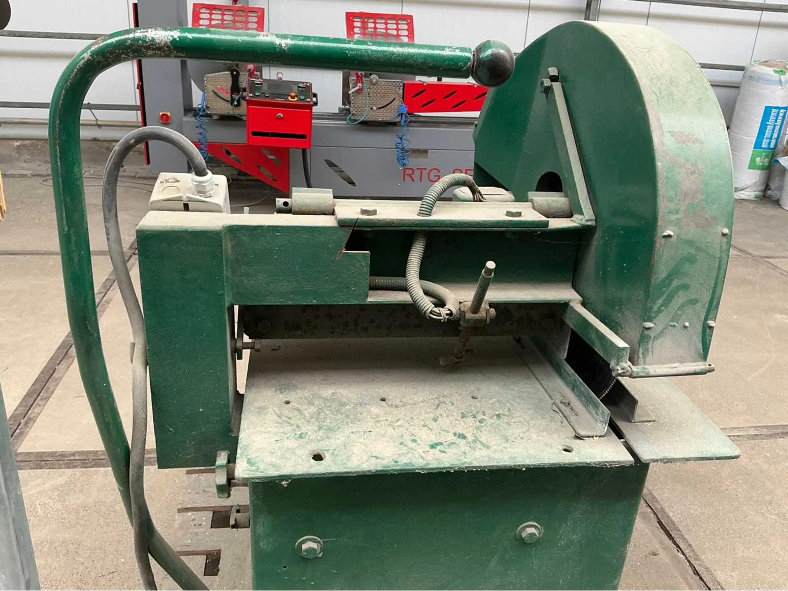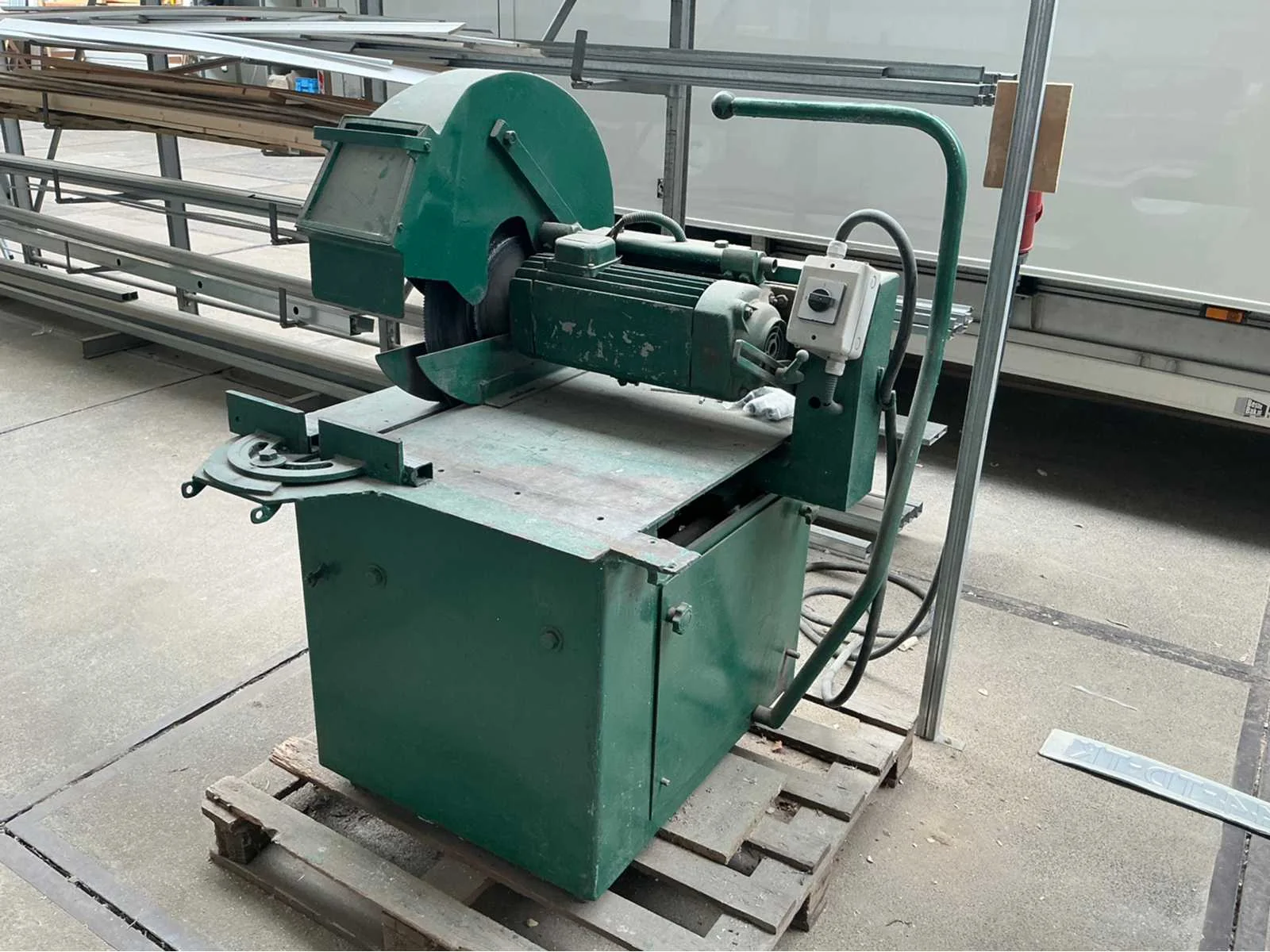4,4 kW Nee Merk: H. Schumacher Product type: 570 Kleur: Groen Lengte: 1000 Breedte: 1000 Hoogte: 1180 Materiaal: Staal Spanning: 380V Diameter zaagblad: 450mm
