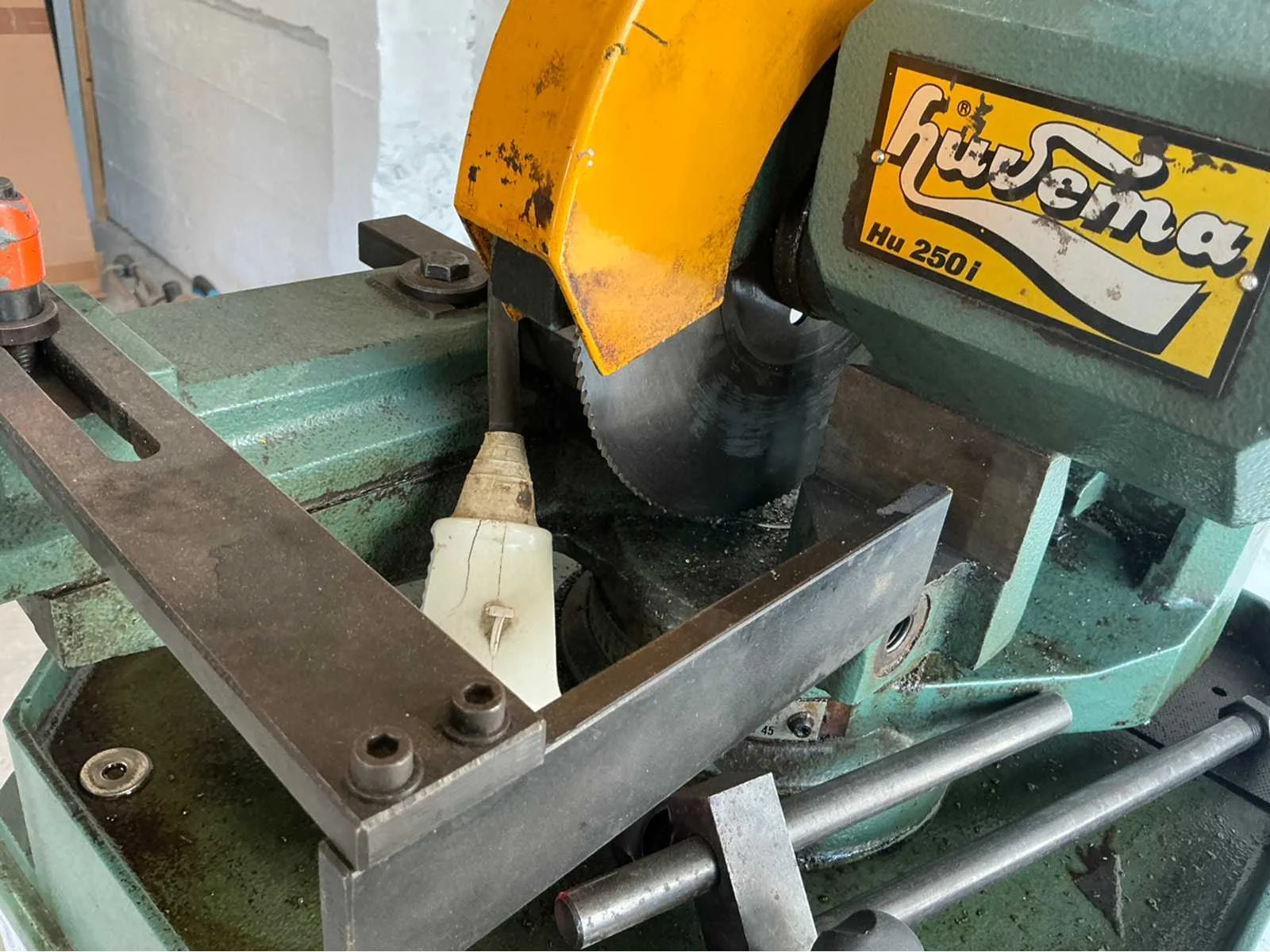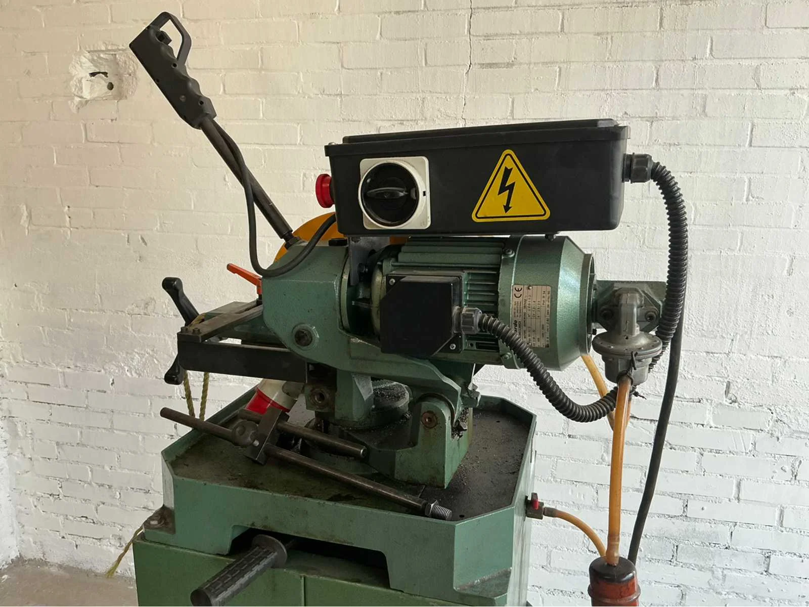 Bouwjaar: 1998. 1,32 kW Nee Merk: Huvema Model: TE 250 Kleur: Groen Lengte: 77 Breedte: 50 Hoogte: 132 Materiaal: Metaal Spanning: 400V Diameter zaagblad: 270mm