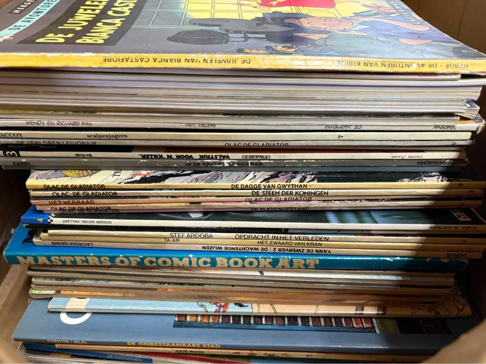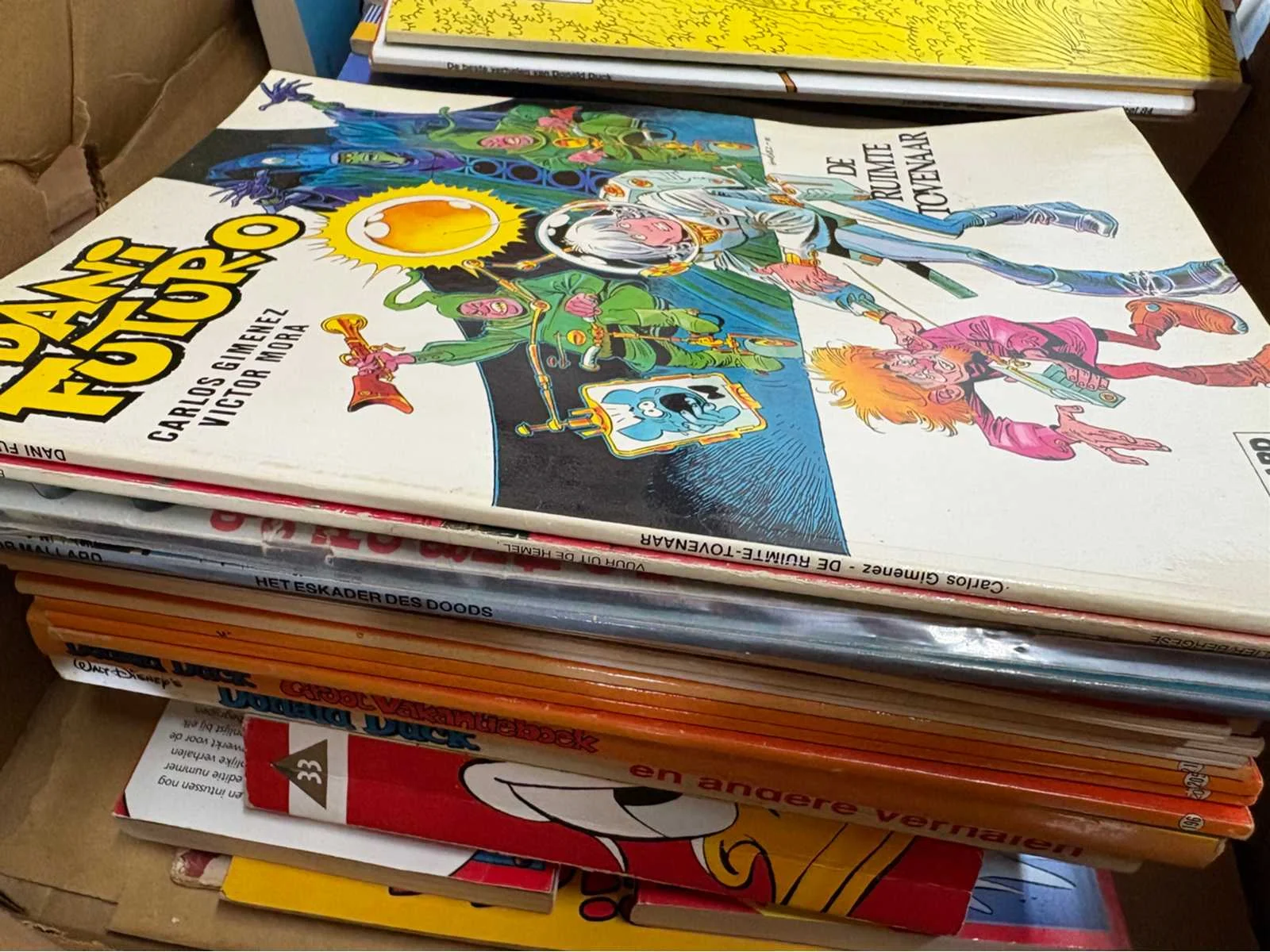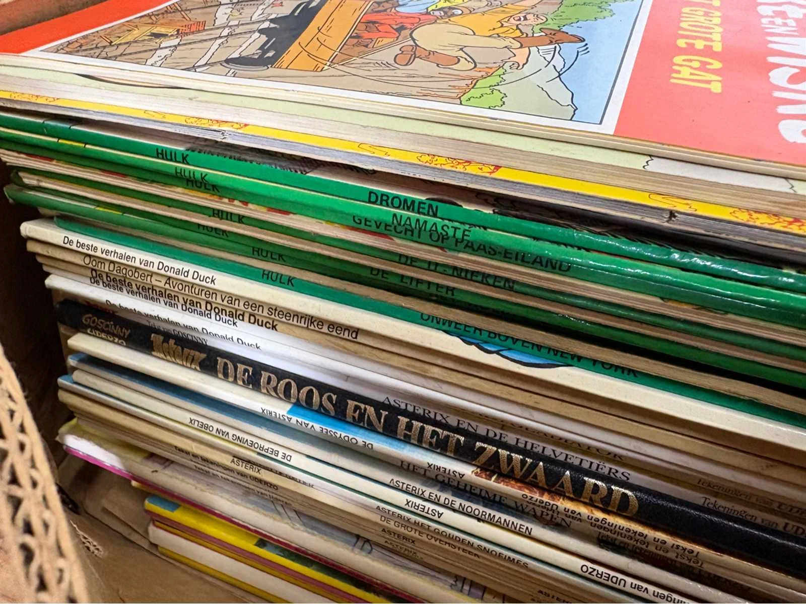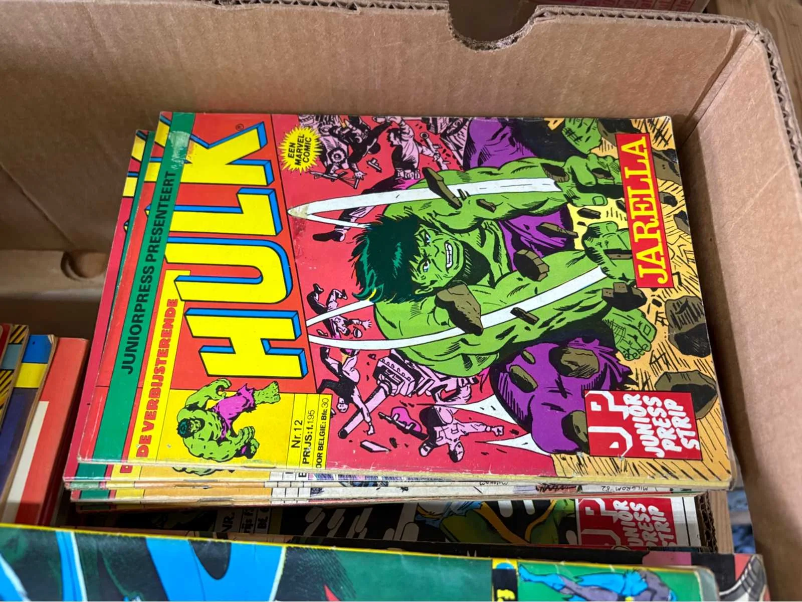 Collectie uit nalatenschap aangeboden. +-3000 stripboeken met uiteenlopede Titels. Onder andere Superman, Hulk, Batman, Town Boy, Dazzer, Dani Futuro; Asterix en Obelix; Sammy;Maarten Milaan; Pol, Lucky Luke; Valek en nog heel veel meer. Naast strips ook andere collectors items. Onder anderen 3 delen van ''De Avonden''; The Photo-Journal Guide To Marcel Comics (4-delig); Goethe Collectie; Geesten en demone van H.Harper; Kokoko en meer. Nee Bestaande uit: 32 dozen