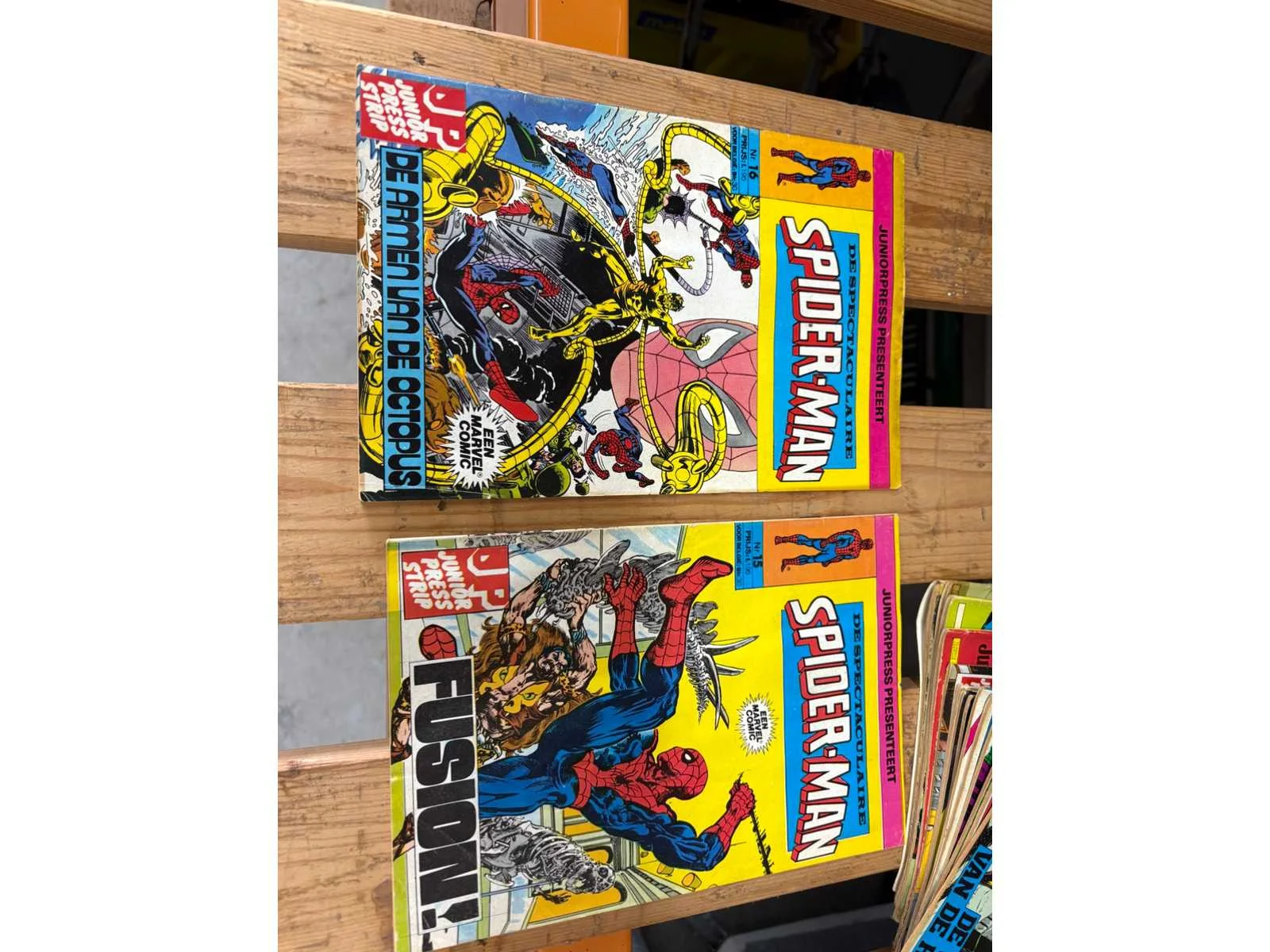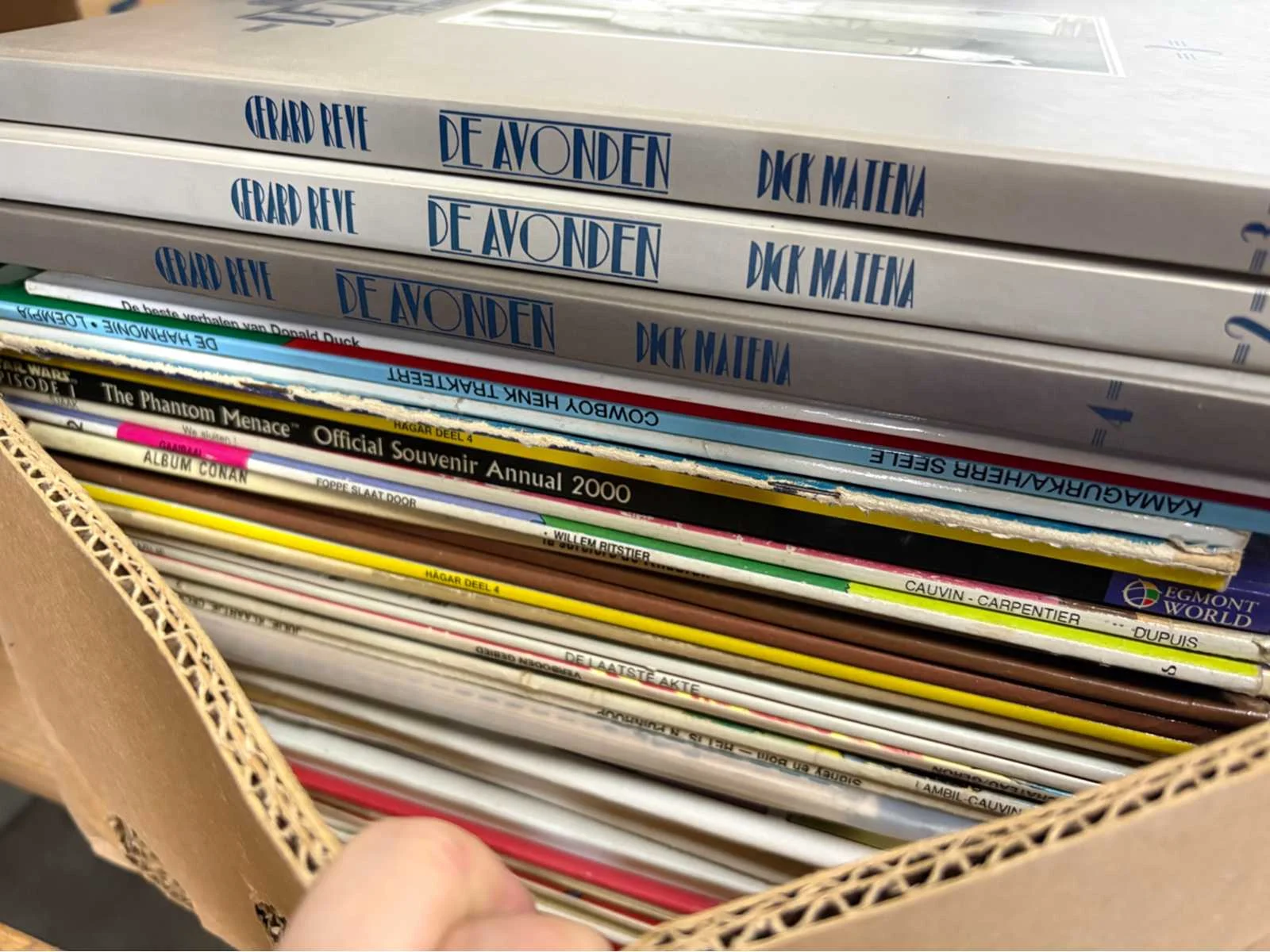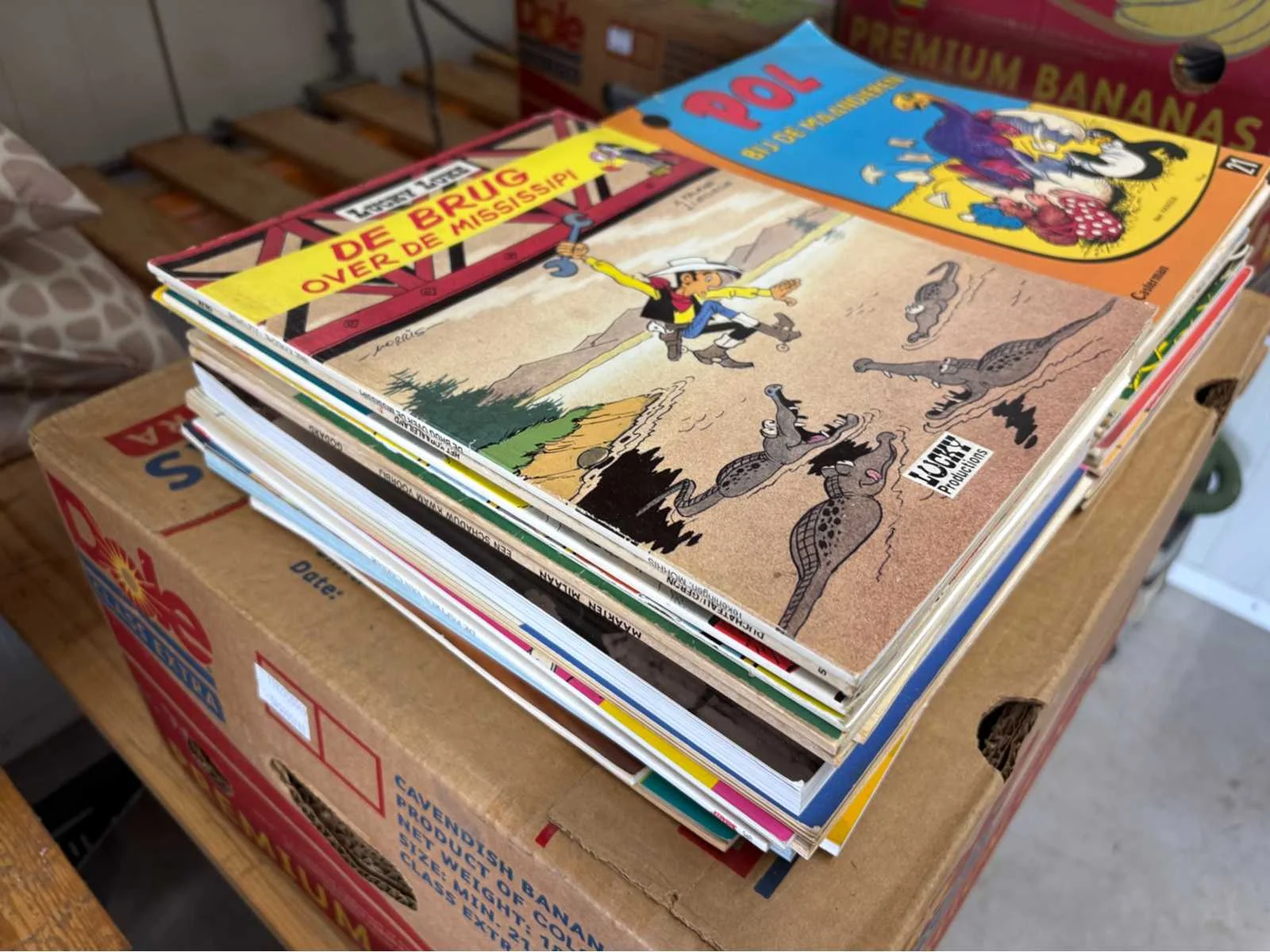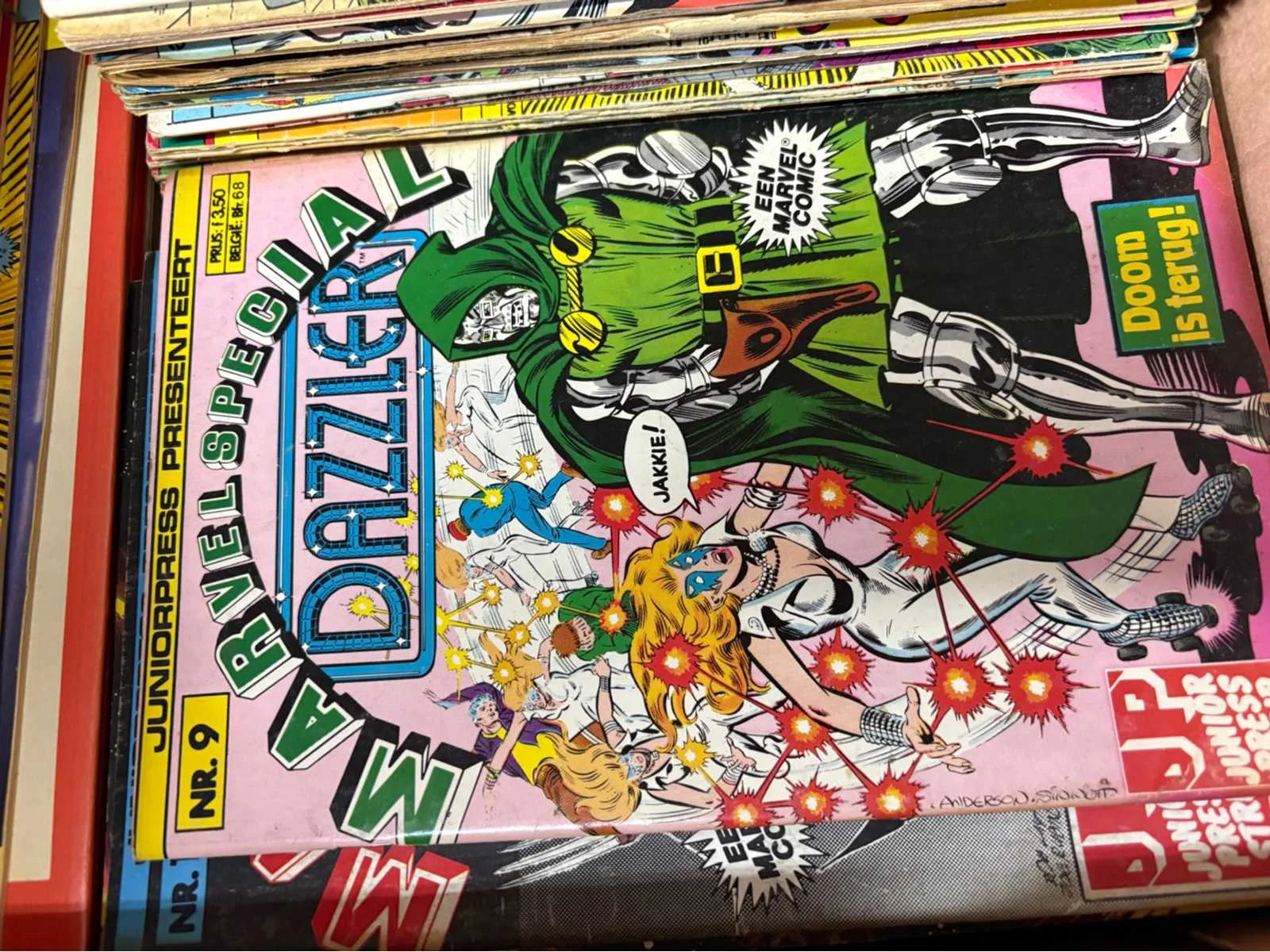 Collectie uit nalatenschap aangeboden. +-3000 stripboeken met uiteenlopede Titels. Onder andere Superman, Hulk, Batman, Town Boy, Dazzer, Dani Futuro; Asterix en Obelix; Sammy;Maarten Milaan; Pol, Lucky Luke; Valek en nog heel veel meer. Naast strips ook andere collectors items. Onder anderen 3 delen van ''De Avonden''; The Photo-Journal Guide To Marcel Comics (4-delig); Goethe Collectie; Geesten en demone van H.Harper; Kokoko en meer. Nee Bestaande uit: 32 dozen