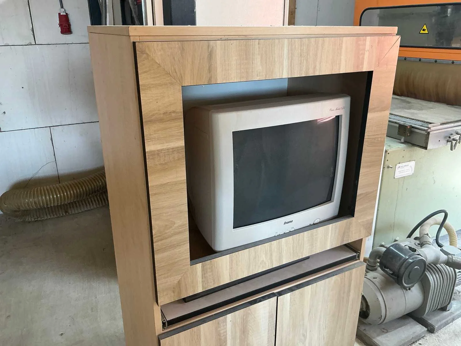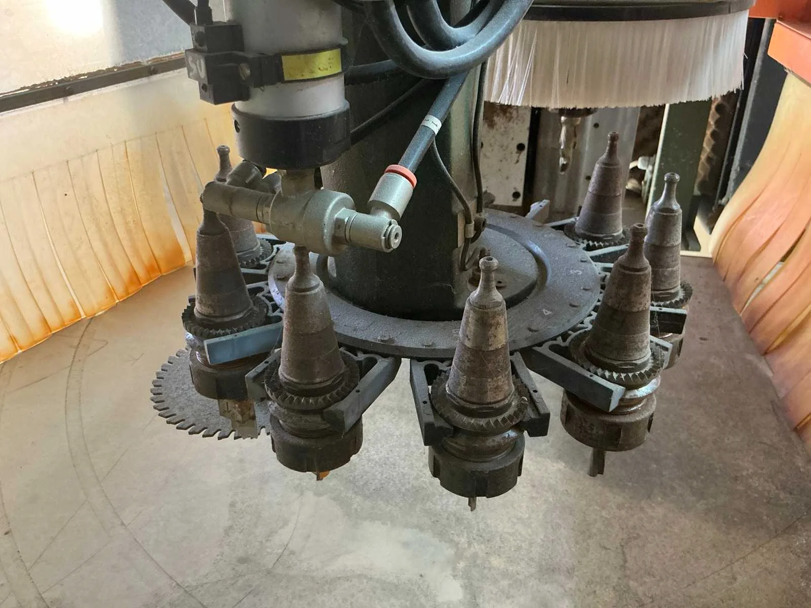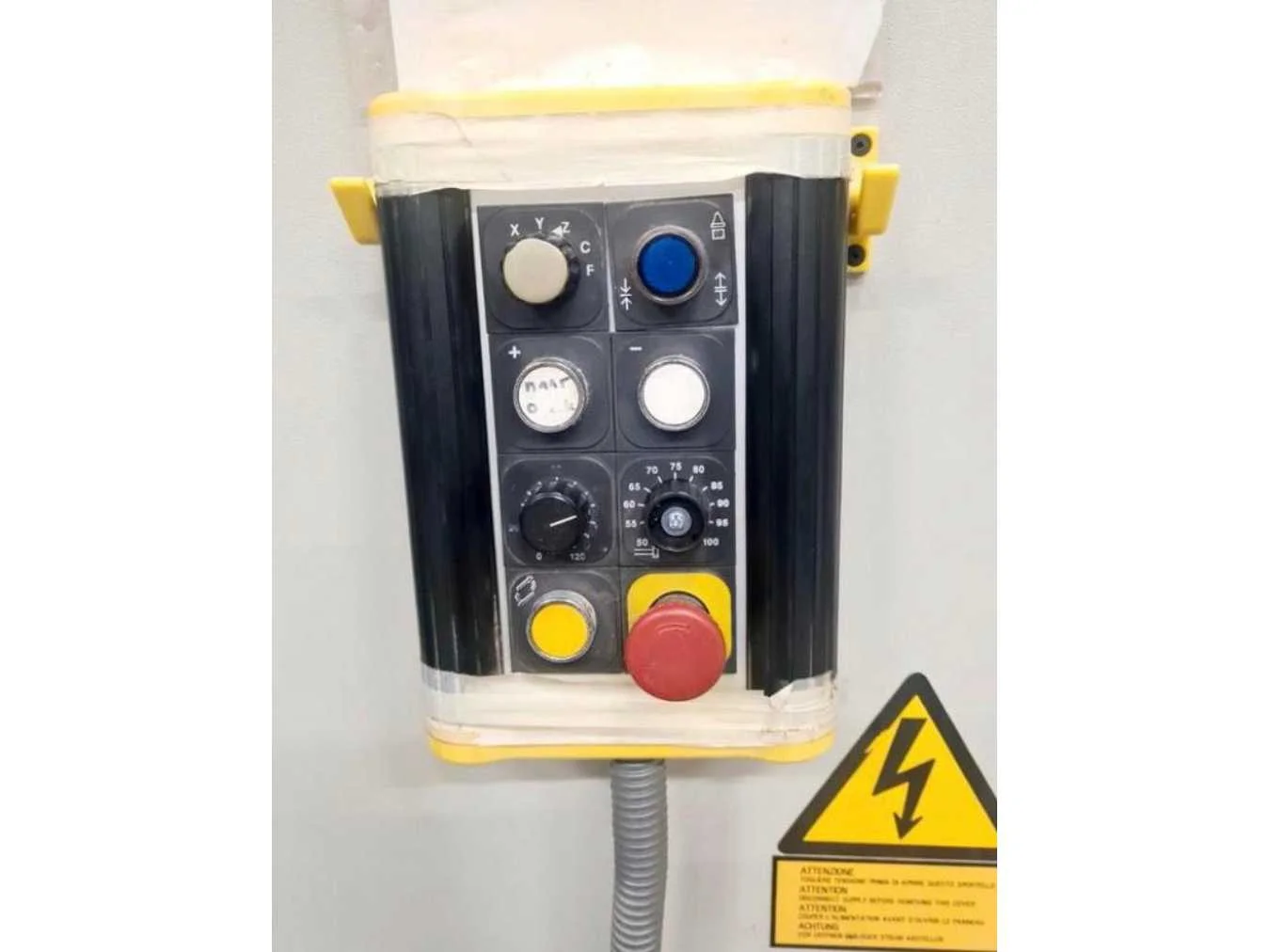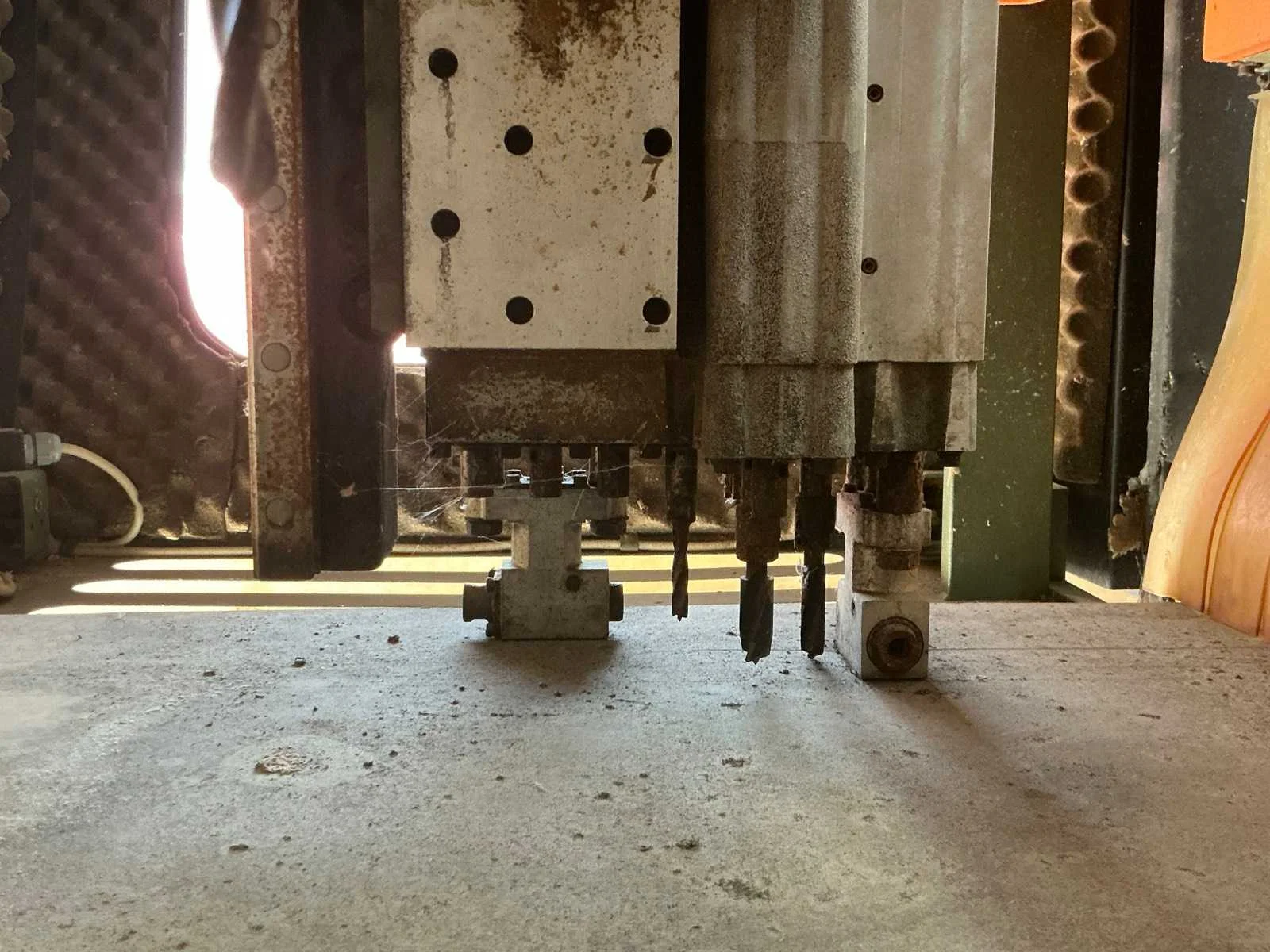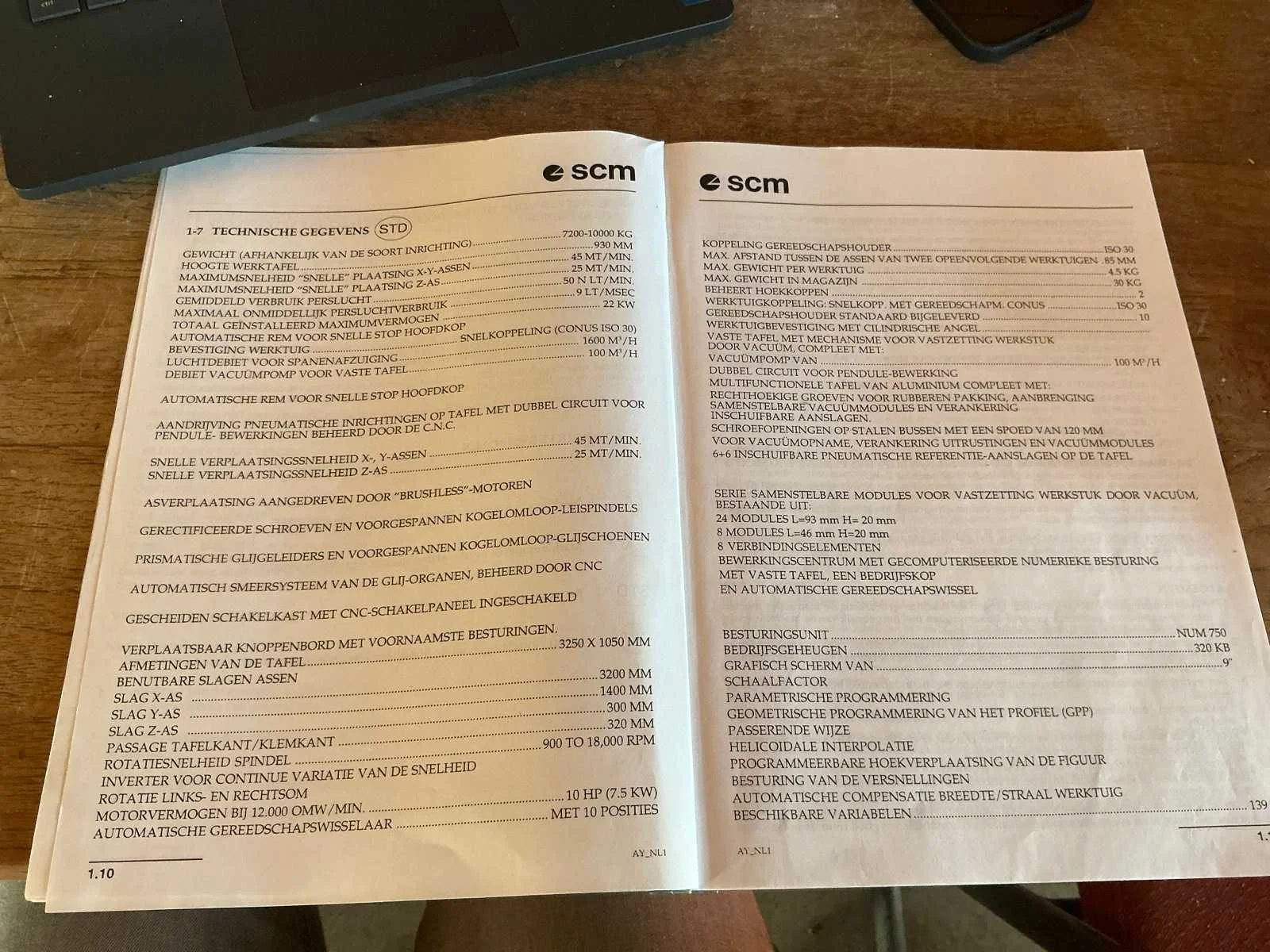 Hoogte werktafel: 930mm, werktruimte circa: 6500x3200 mm, inclusief losse freeskoppen, besturingskast, computer, machine kan geladen worden bij de koper. Nee Merk: SCM Type: Record 2 Bouwjaar: 1996 Serienummer: AA1/009112 Verplaatsing x-as: 3200mm Verplaatsing y-as: 1400mm Verplaatsing z-as: 300mm Snelheid van n =: 0rpm Snelheid tot n =: 18000rpm Tafel afmeting l: 3250mm Tafel afmeting b: 1050mm CNC-besturing, merk, type: NUM 750 Motorvermogen (kW): 22kW Aansluiting: 400V Machinegewicht: 7200kg Afmeting l: 4600mm Afmeting b: 2300mm Afmeting h: 2600mm