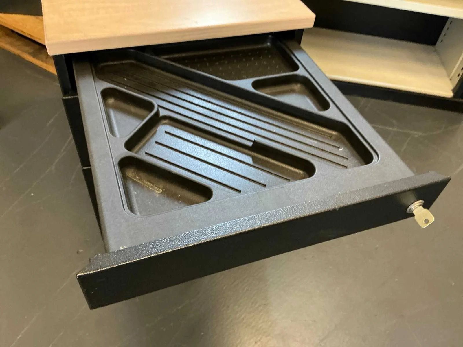 3x kantoorkast (1x 1200x460x1070, 1x 1200x450x1065, 1x 430x780x640mm)4x stoel